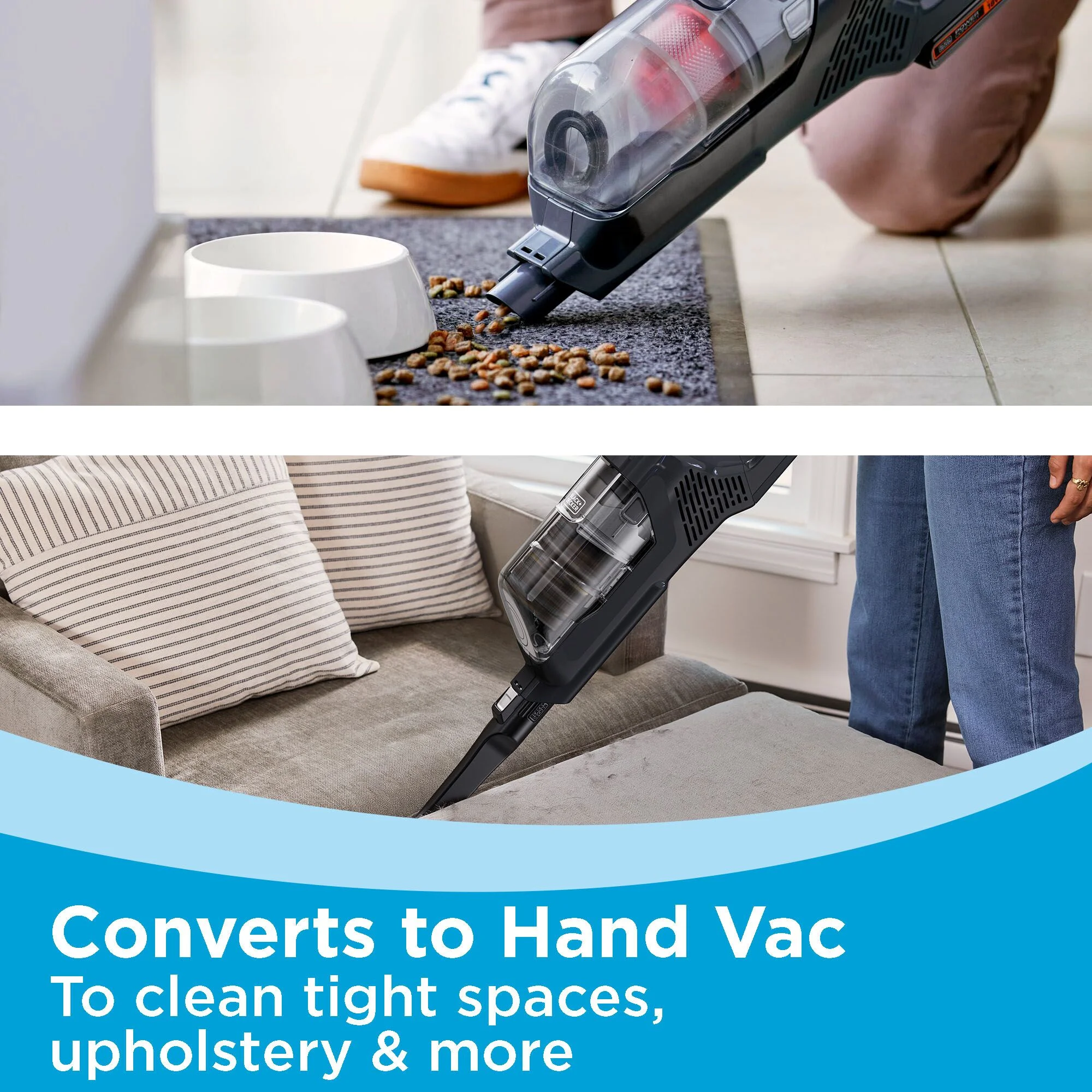 - Quickly converts to A handheld vacuum: with a crevice tool for stairs, furniture, and hard-to-reach spaces