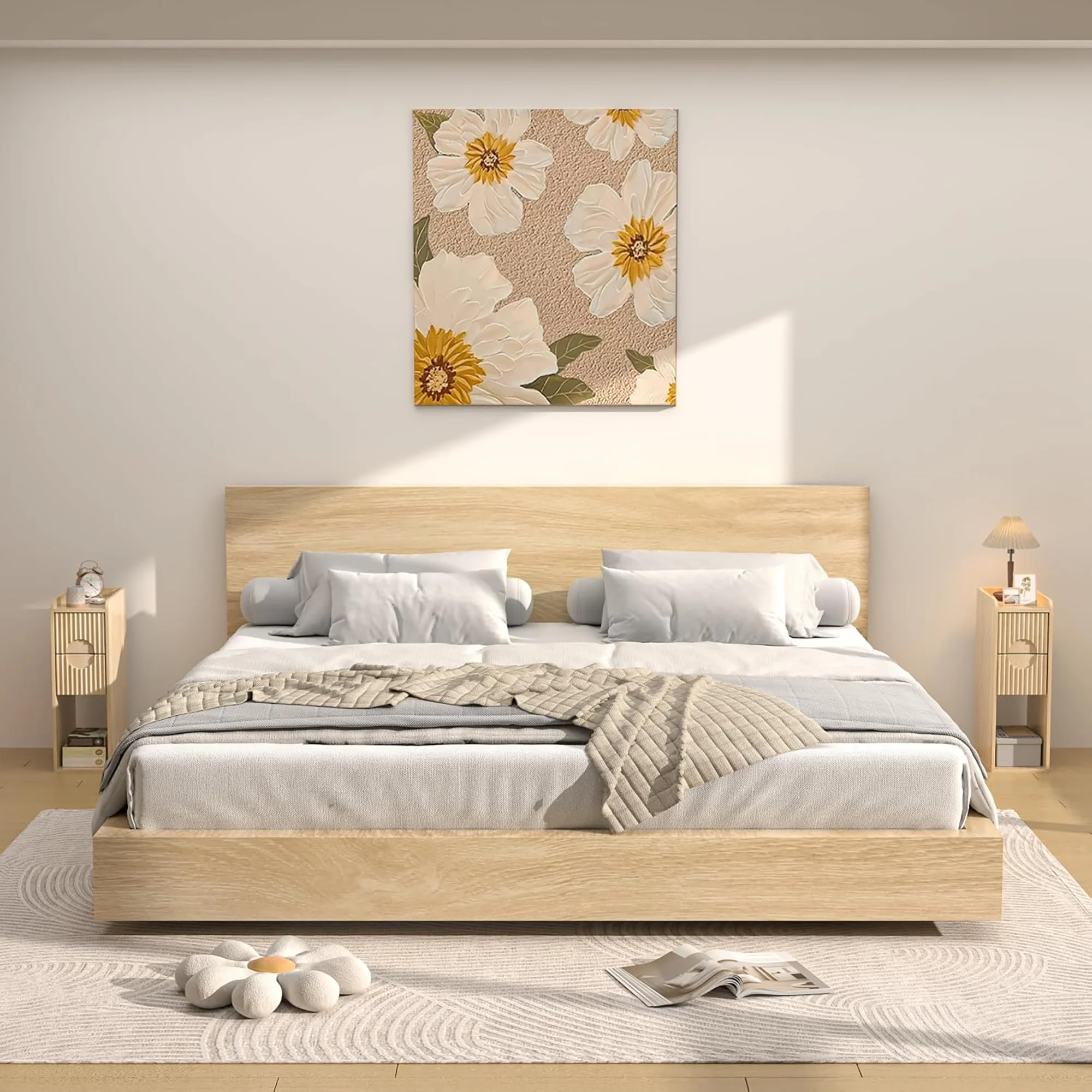 - Nightstand with Drawers: This small nightstand includes two drawers perfect for phones and small items. The smooth drawer slides ensure durability and ease of use. An open shelf at the bottom provides additional storage options, keeping your essentials neatly organized.