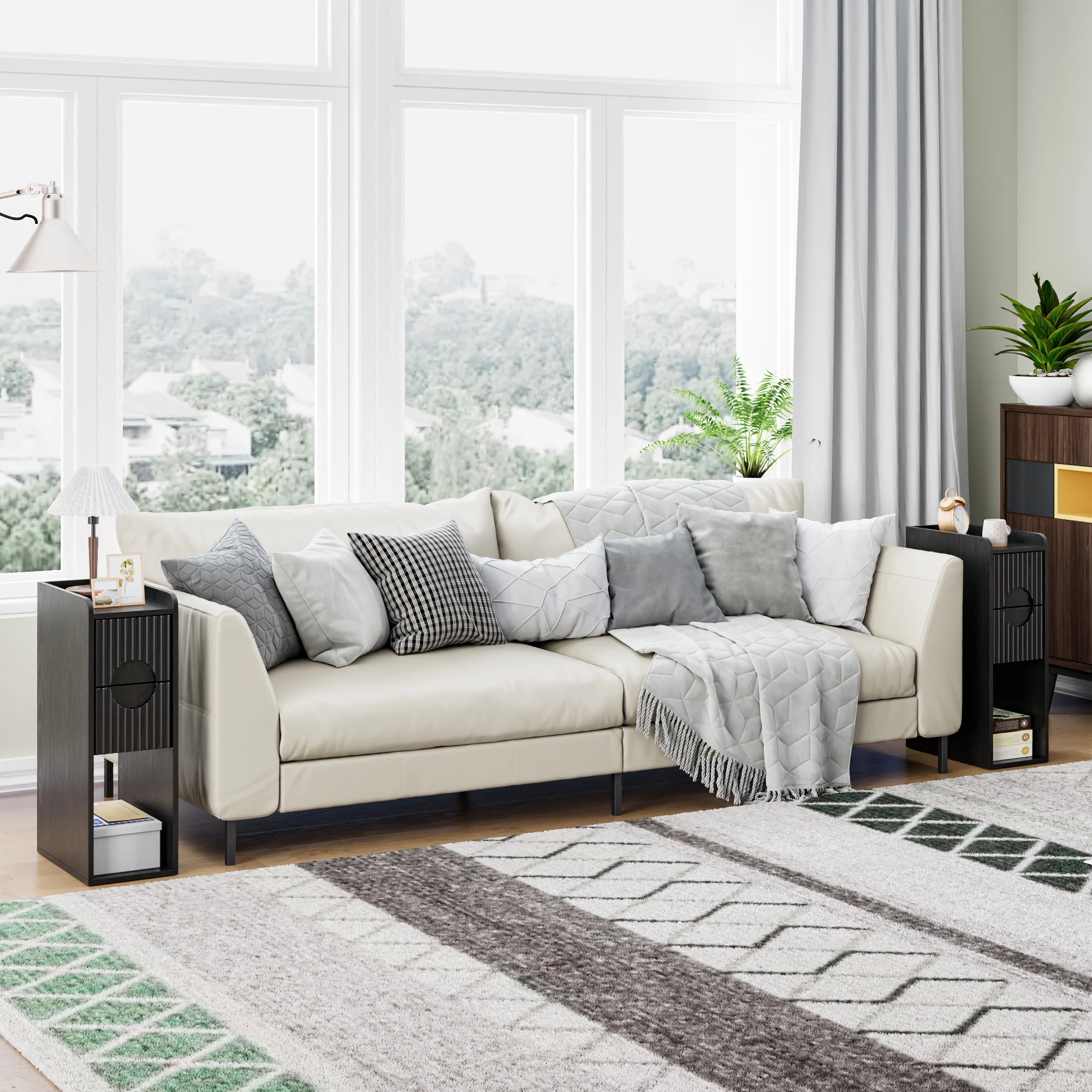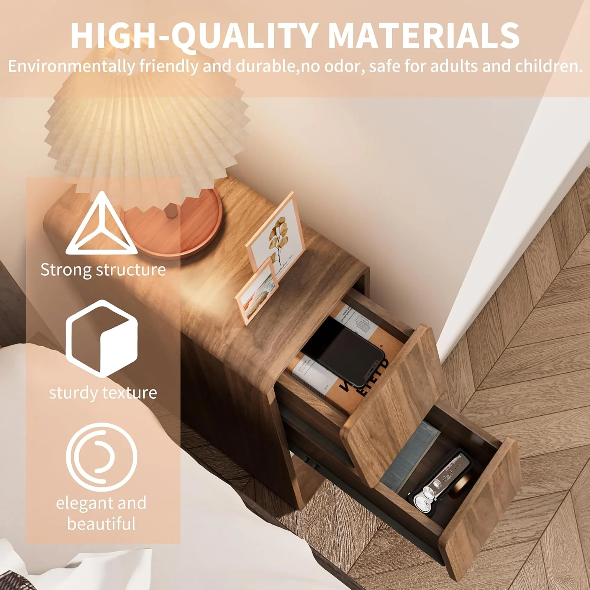 - Modern and Space-Saving Design: With its ultra-narrow profile and modern aesthetic, this slim nightstand fits seamlessly into any room. The recessed grooves and hidden handles add a sleek touch, while smooth drawer slides ensure easy access. Perfect for maximizing space in tight areas.
