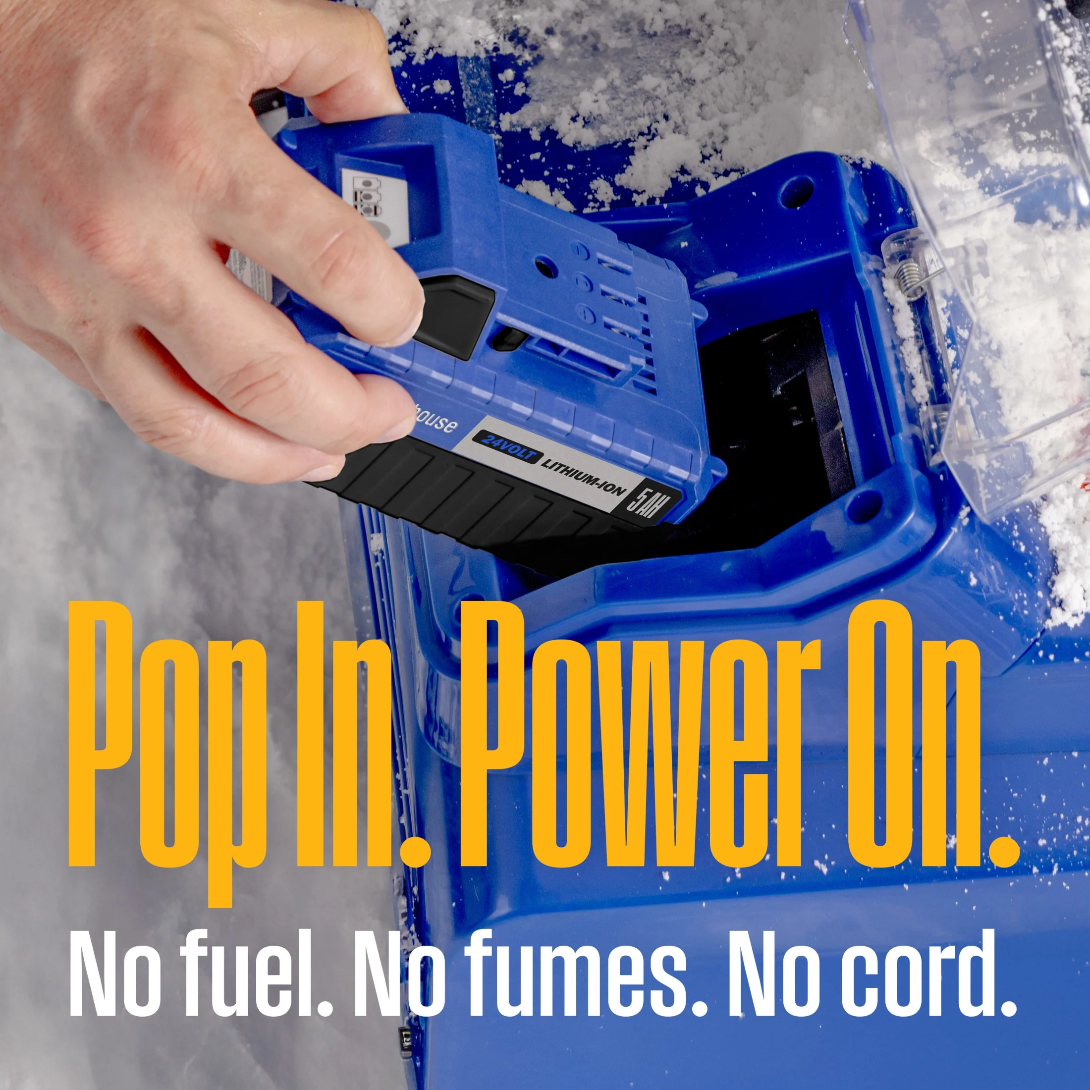 - Battery Powered Freedom: Comes with two 24V 8Ah lithium-ion batteries and dual port 4A fast charger that fully charges in 2 hours for a working time of 15 minutes for 7 inches of snow