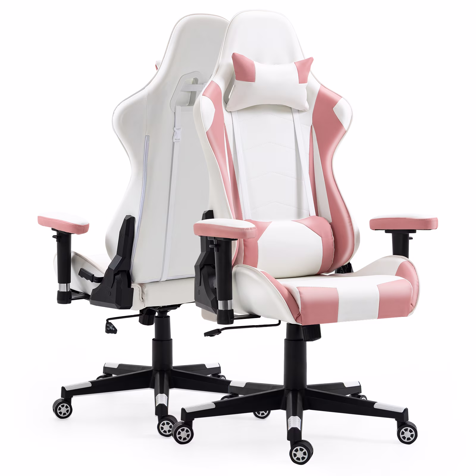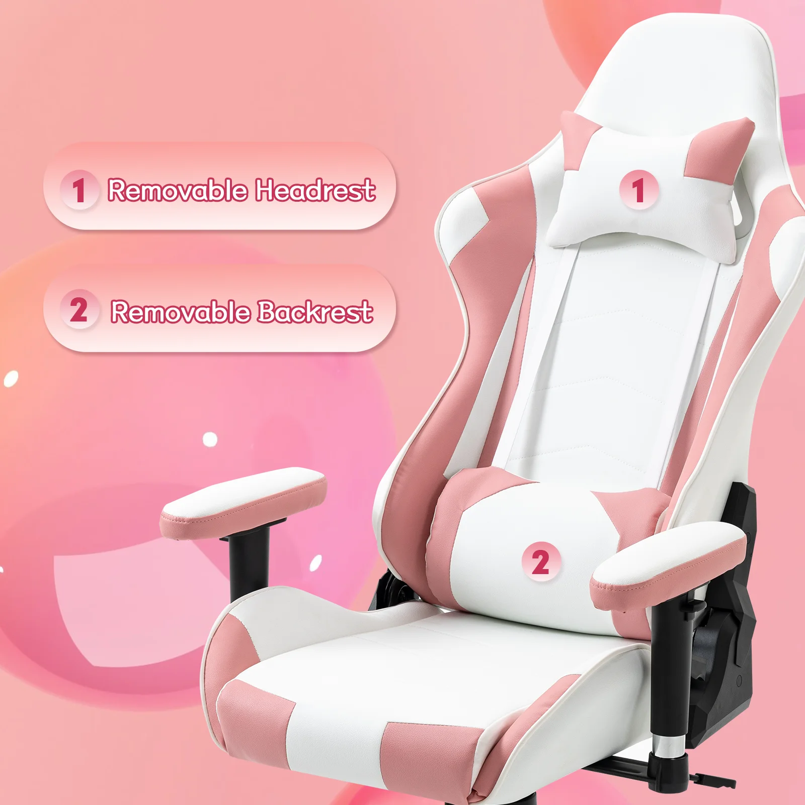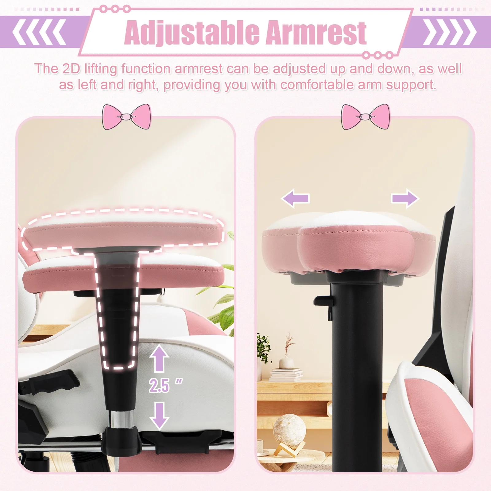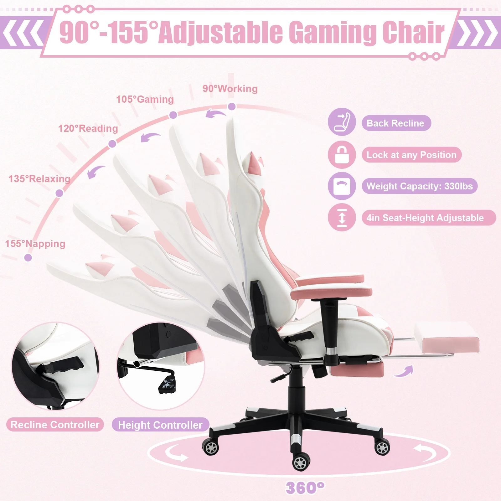 - ��Multifunctional Adjustment��This pink gaming chair has multifunctional adjustment. You can adjust the height of the chair up and down can also be adjusted at will between 90 �� - 155 �� degrees of tilt of the chair. Also with adjustable armrests, press and hold the button to adjust the height of the armrests and left and right movement.