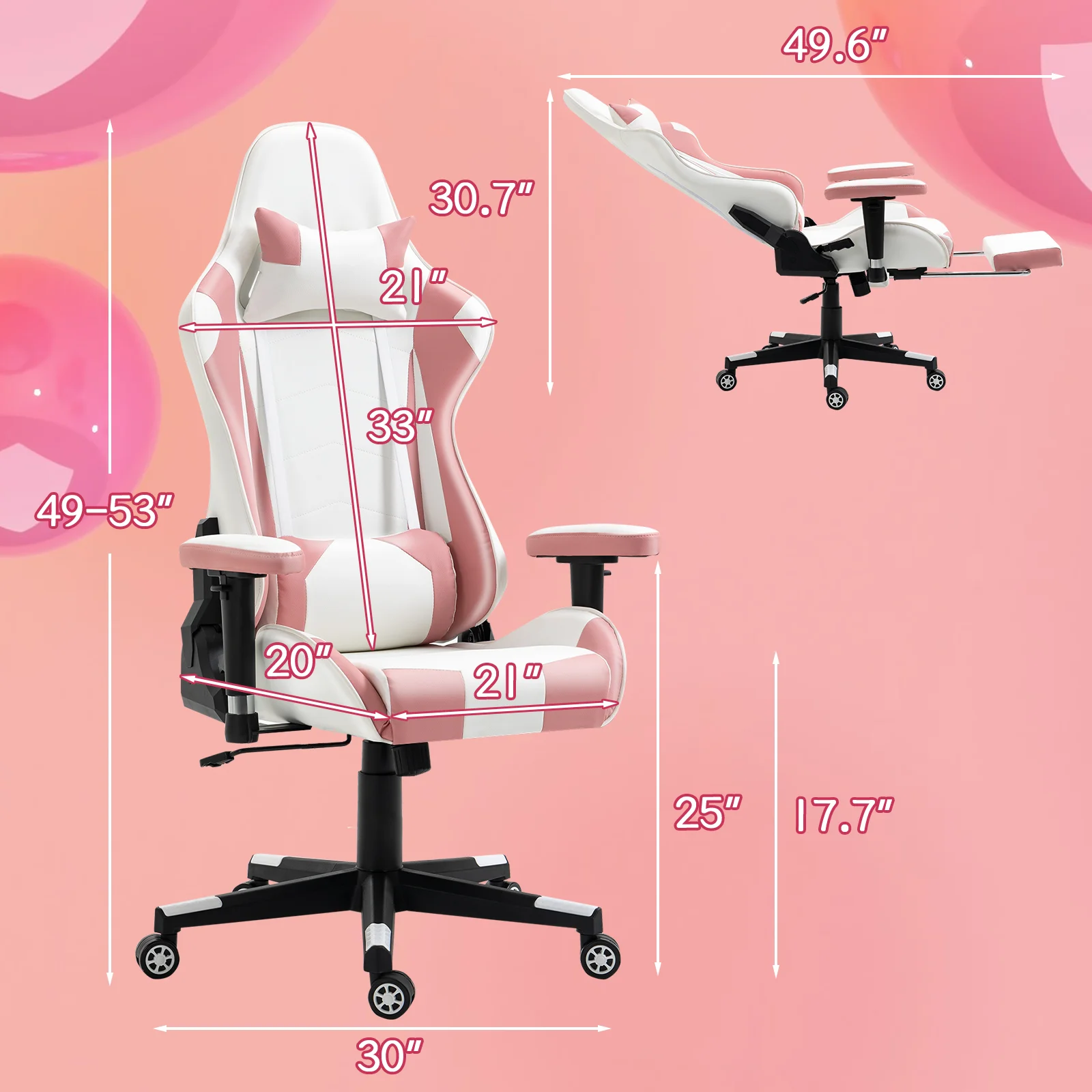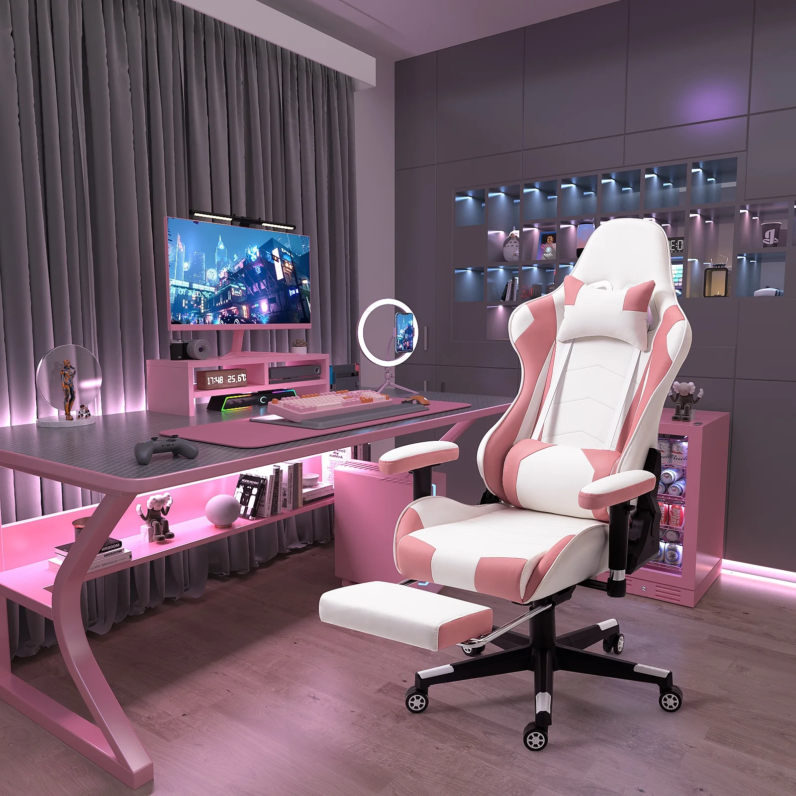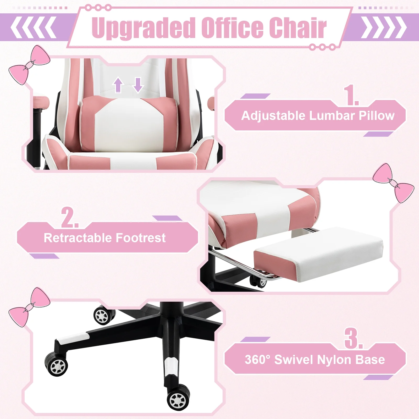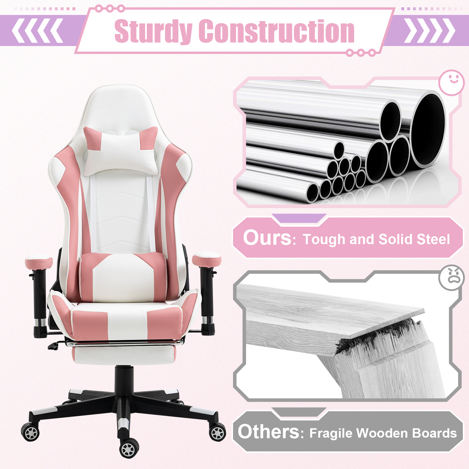- ��With Footstool��The pink gaming chair also comes with a pull-out footstool. You can pull it out when you want to use it, and put it under the seat cushion when not in use, without adding extra space.