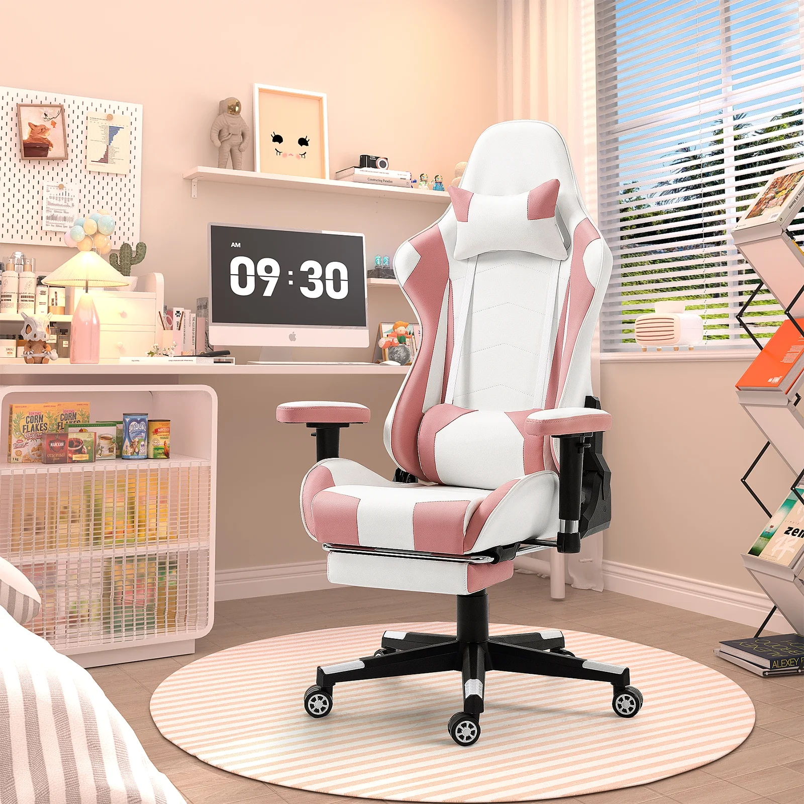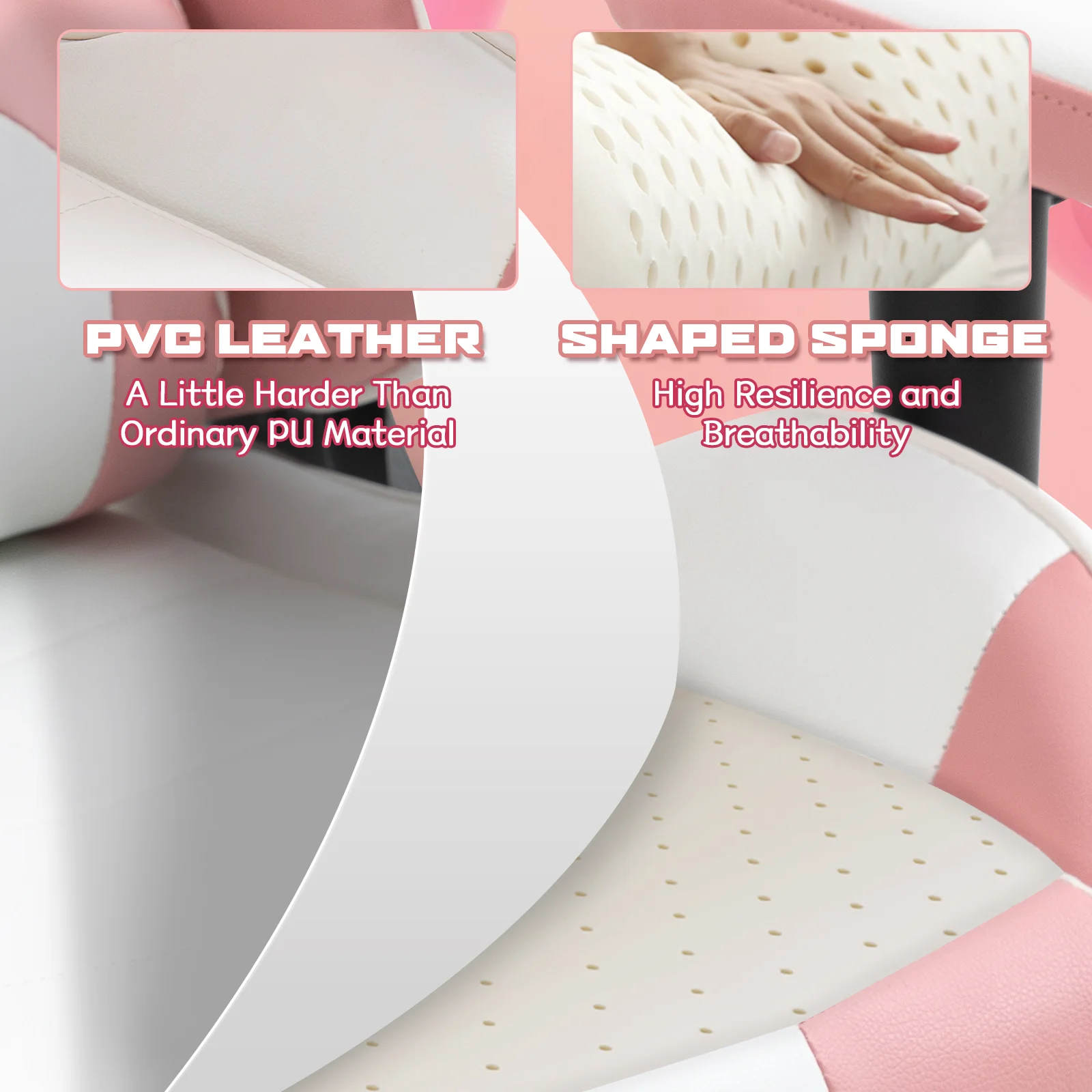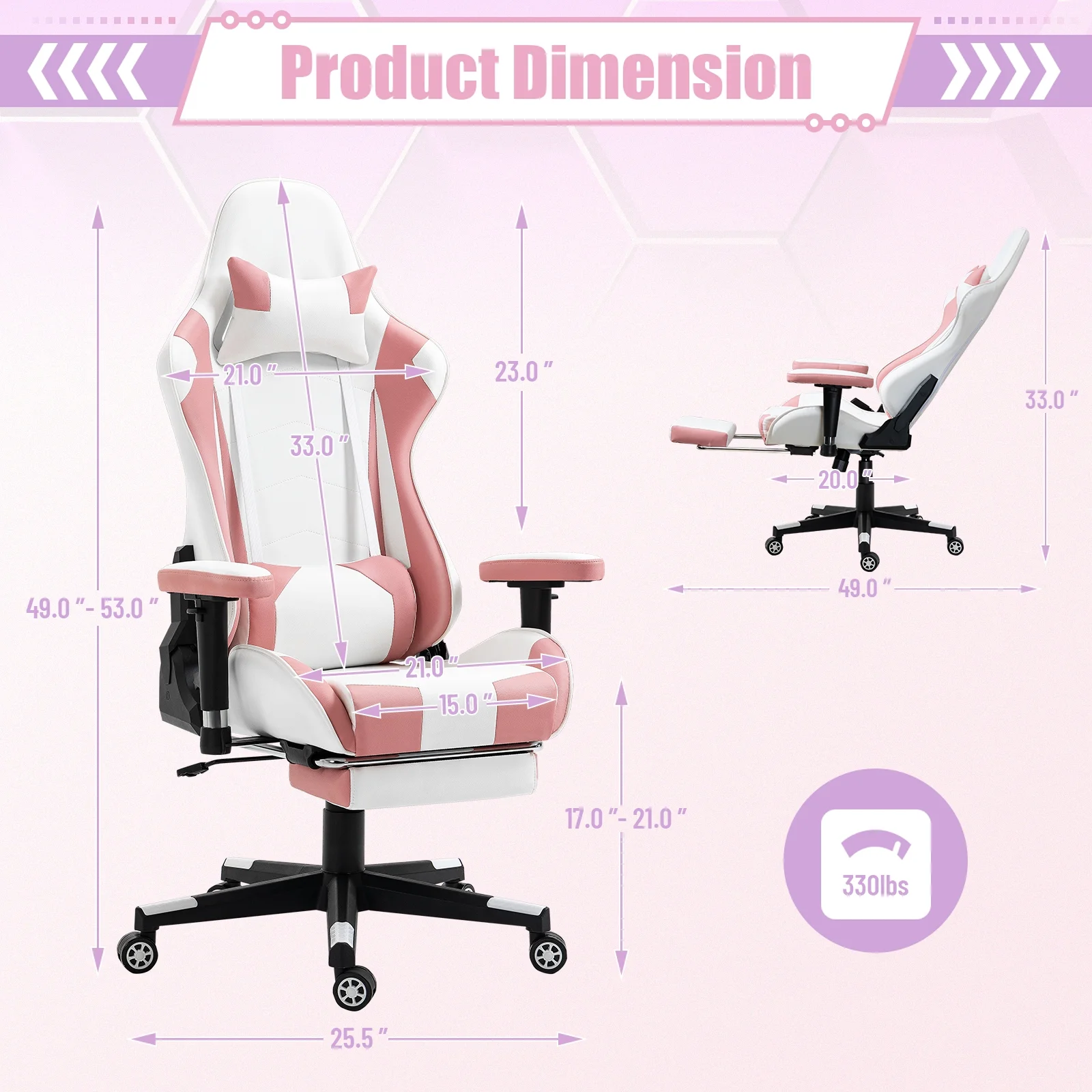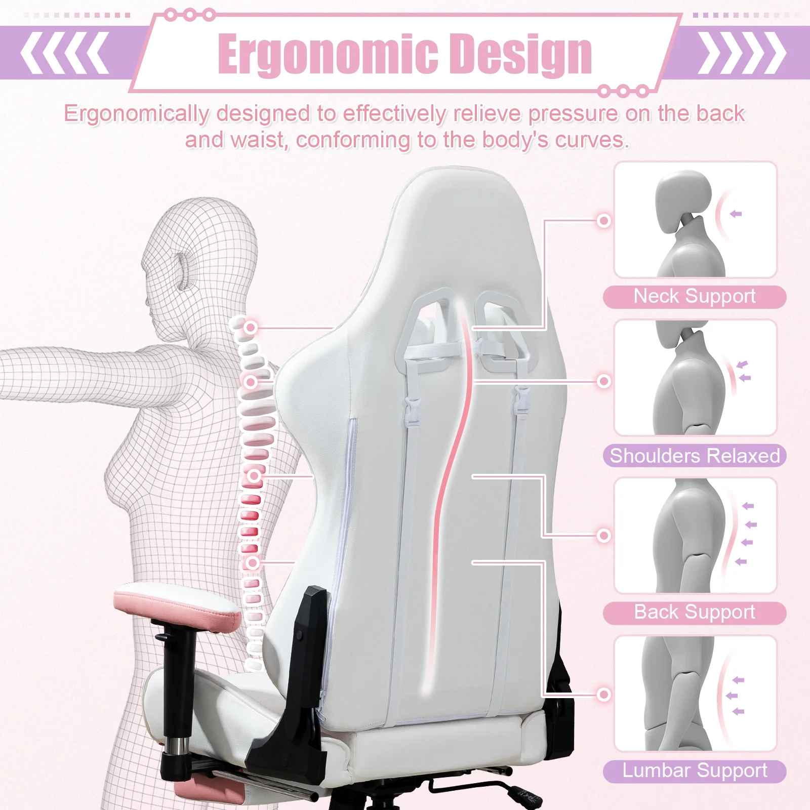 - ��With Footstool��The pink gaming chair also comes with a pull-out footstool. You can pull it out when you want to use it, and put it under the seat cushion when not in use, without adding extra space.