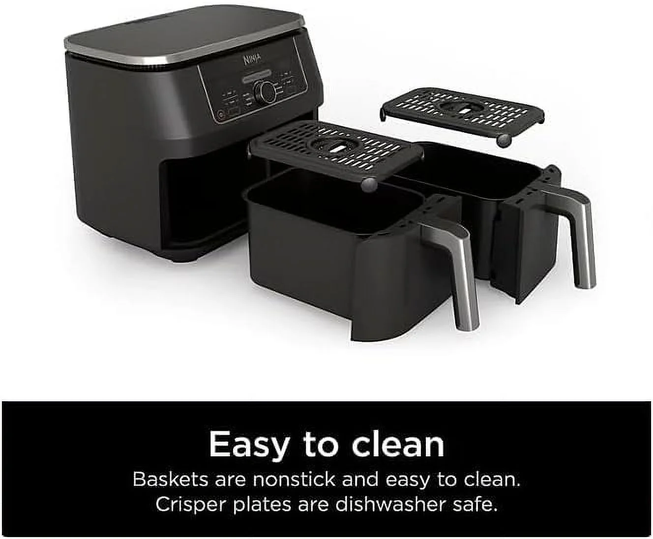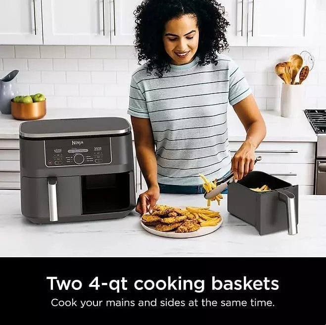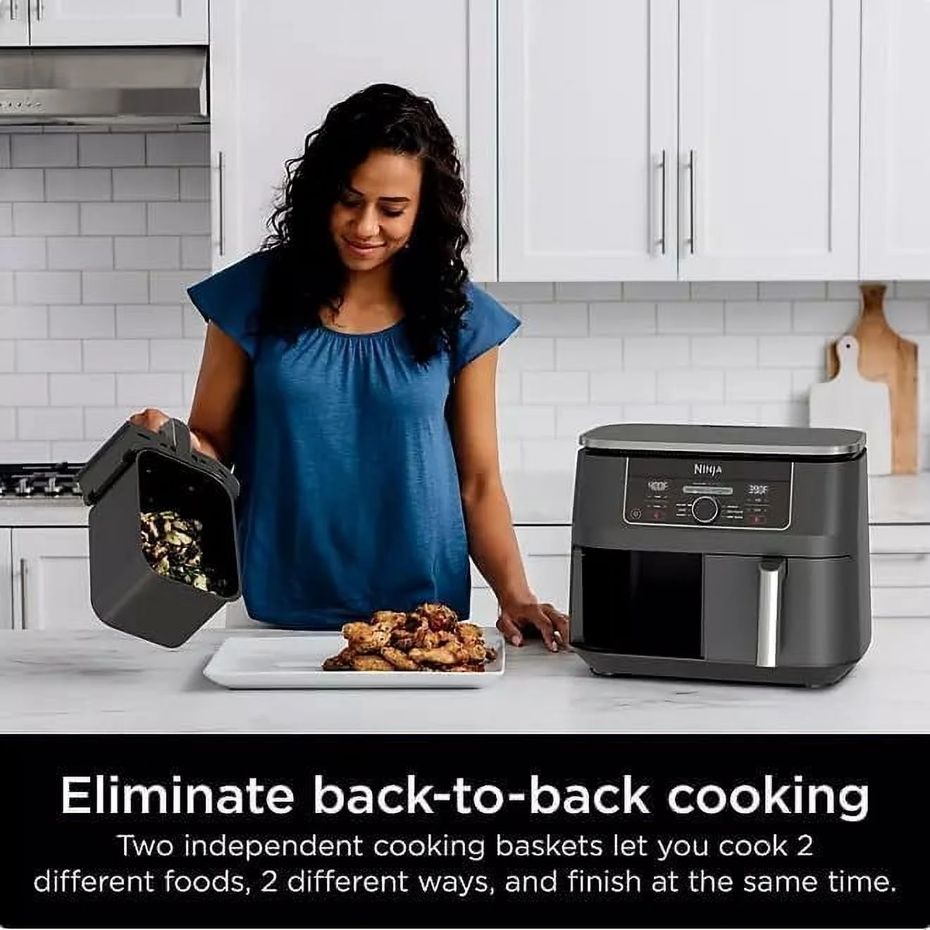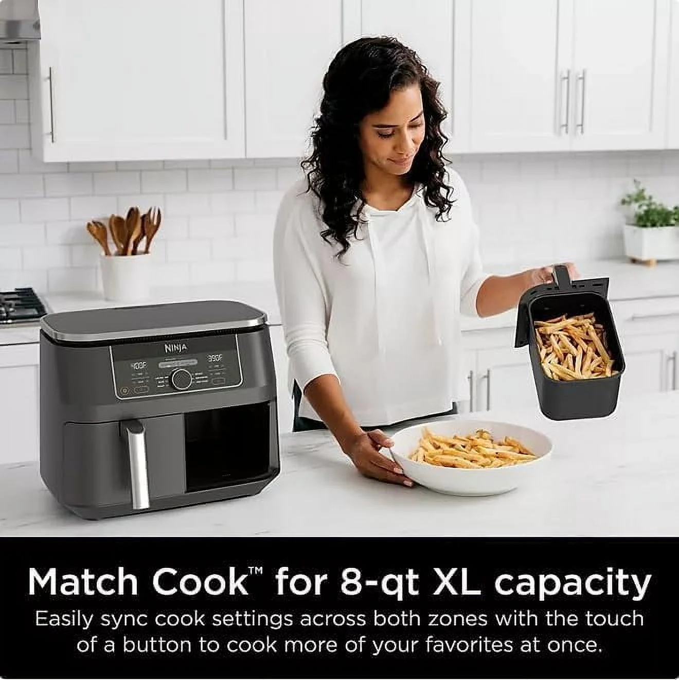 Ninja Foodi 8 qt 2-Basket Air Fryer, Black - DualZone Technology, Smart Finish