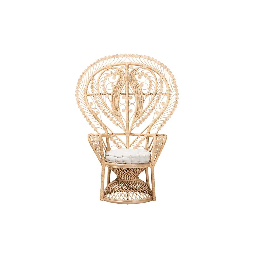 bali & pari Fedra Modern Bohemian Natural Brown Rattan Peacock Accent Chair