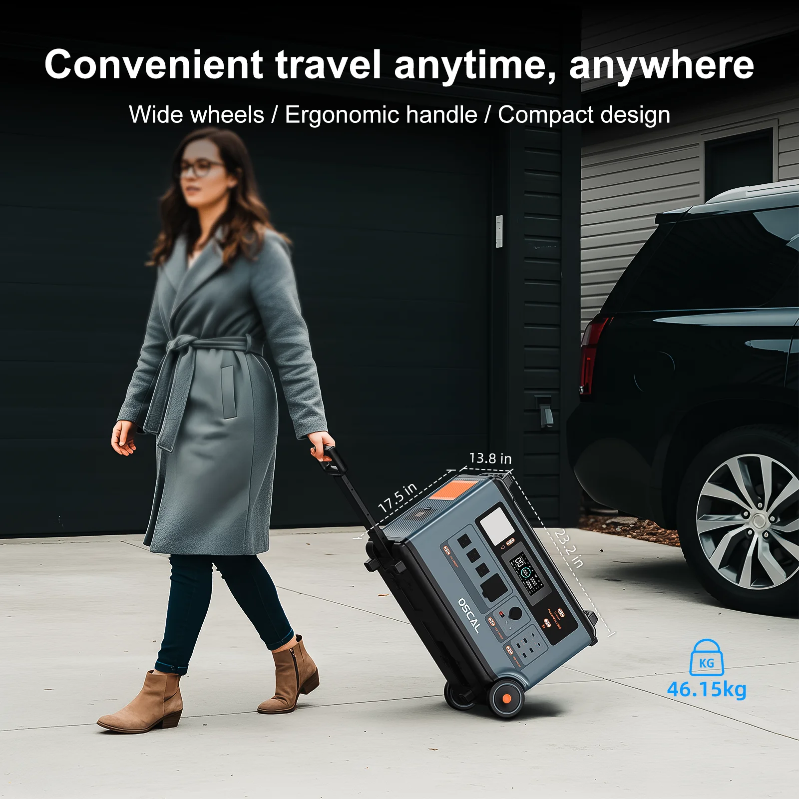 - Dual Voltage & Smart App Control �C Delivers 120V/240V output simultaneously, powering refrigerators, A/C units, EV chargers, and more without compromise. Monitor battery status, runtime, and power flow in real-time via Wi-Fi/Bluetooth OSCAL App.