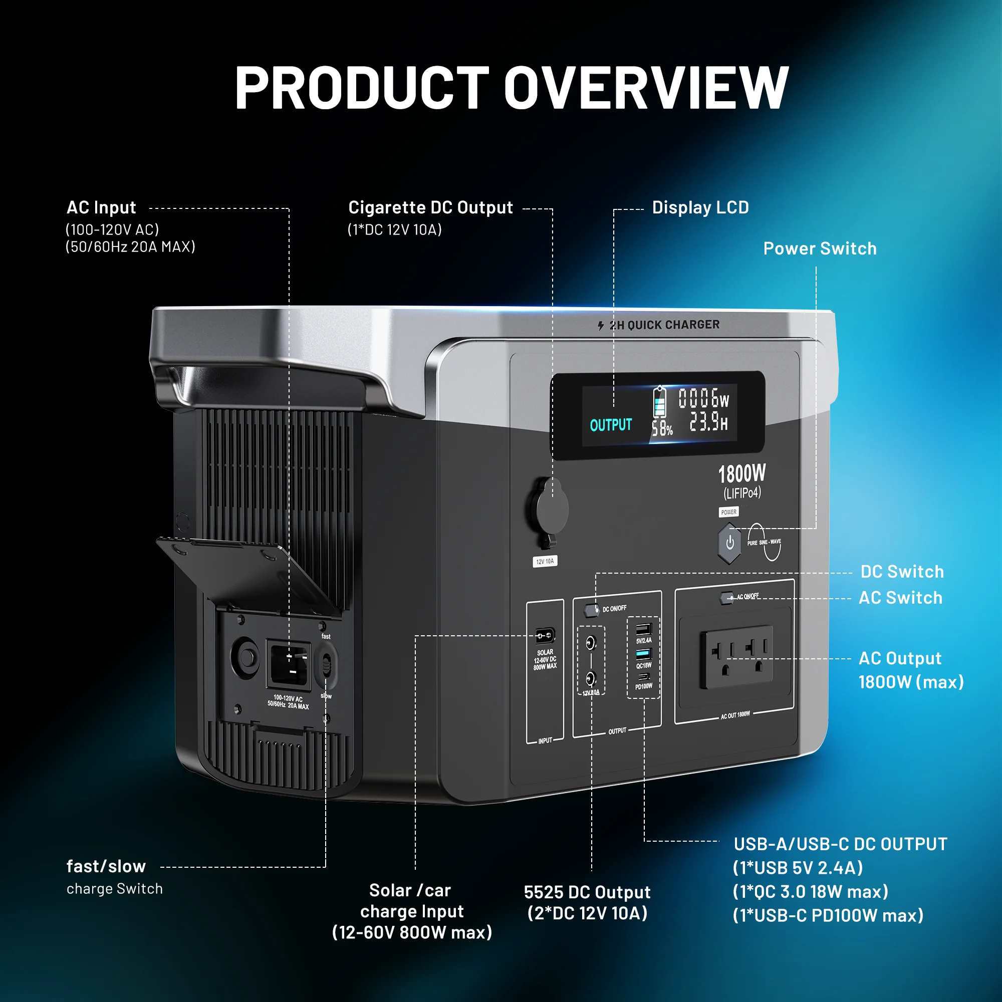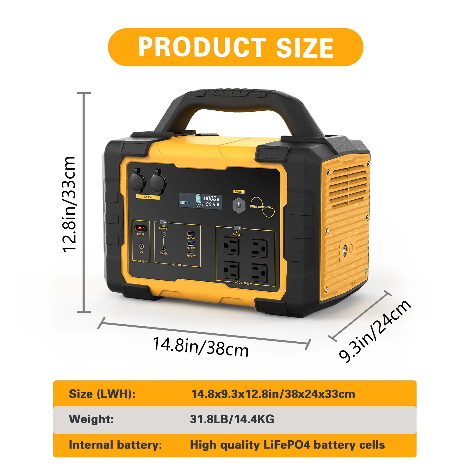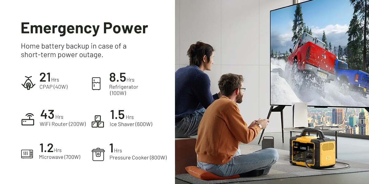 2. Powerful Outputs: Run laptops, lights, microwaves, and more with 1000W AC.