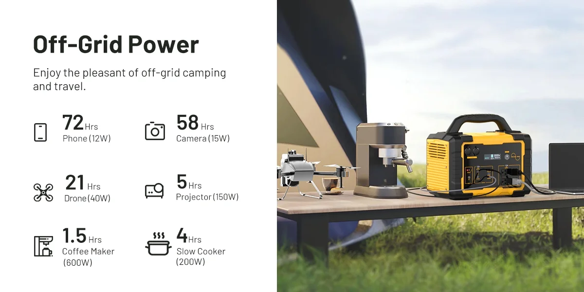 3. ?Long-Lasting Battery: 1000 Wh capacity �C enough to charge smartphones ��800+ or power small appliances for 10+ hours.