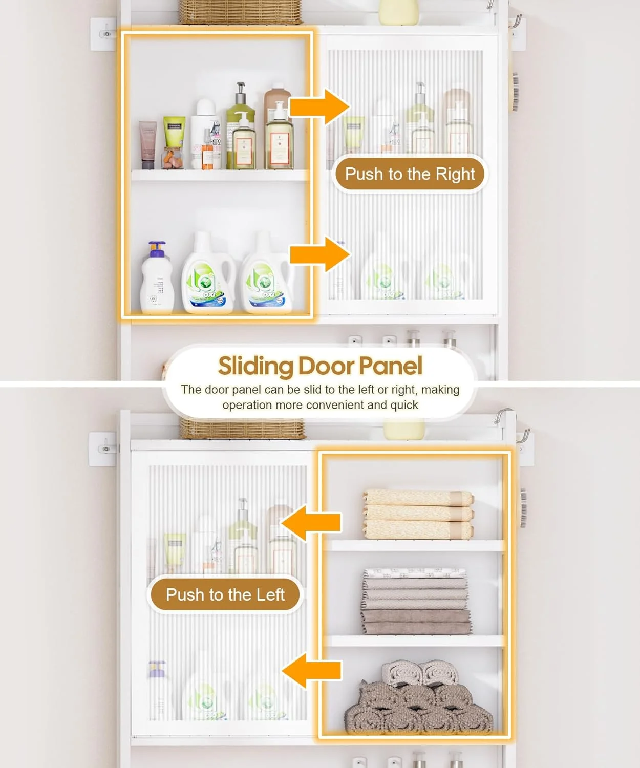 - Transparent Sliding Door: The transparent sliding door of the toilet cabinet allows us to see the stored items inside at a glance, making it convenient and quick to find the needed supplies. It also provides good sealing effects to prevent dust and moisture from entering the cabinet interior
