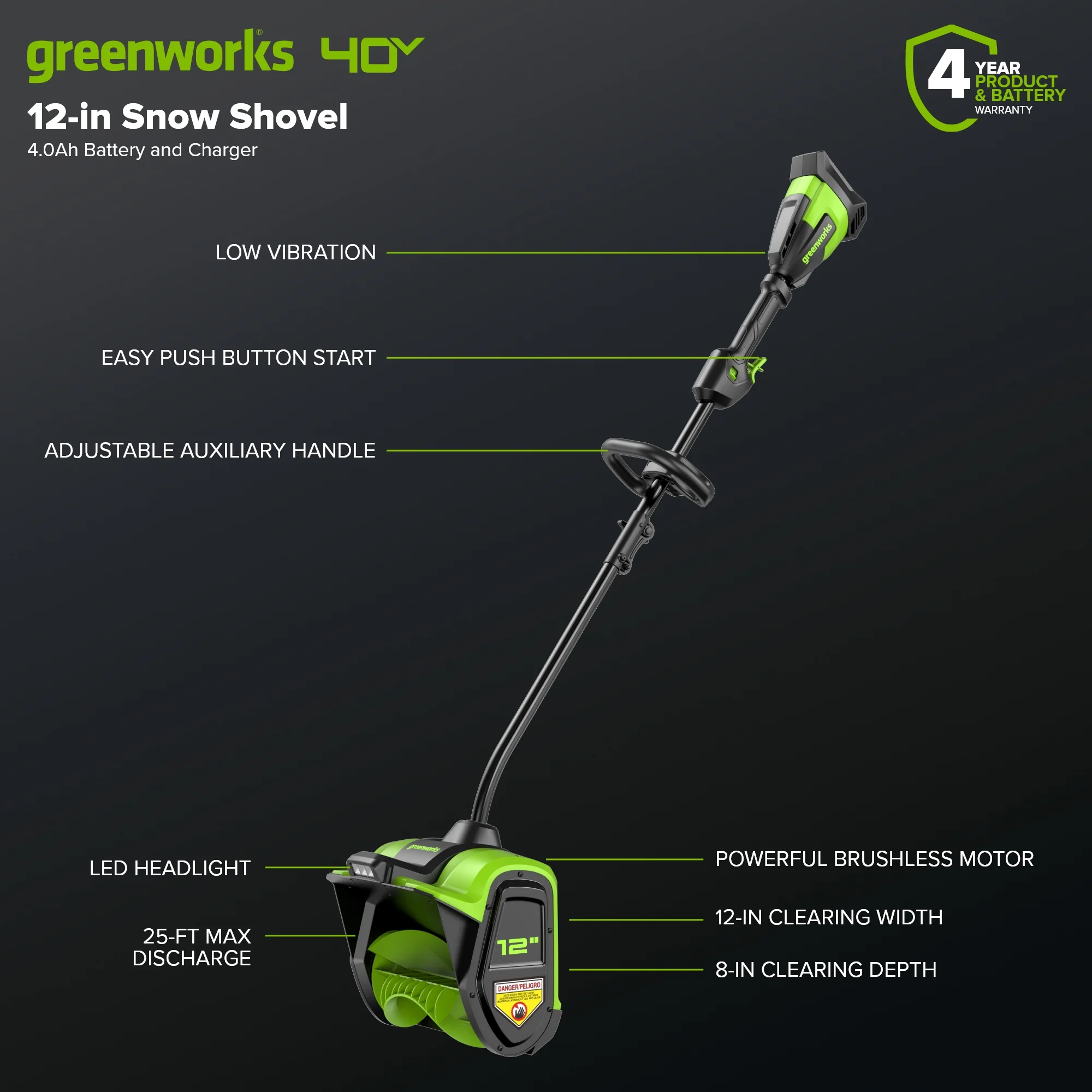 - WIDE SHOVELING WIDTH: 12" shoveling width swiftly moves snow out of your path