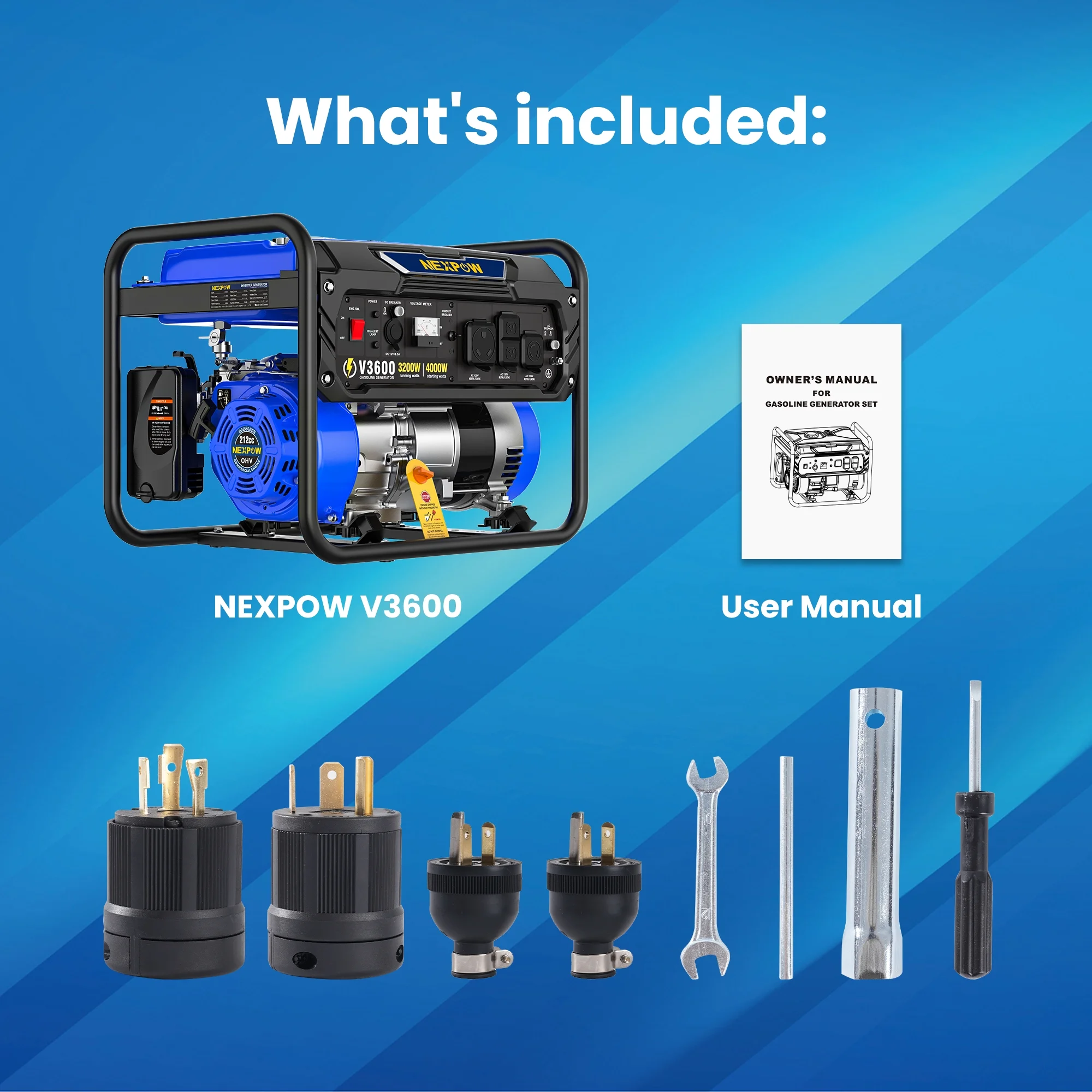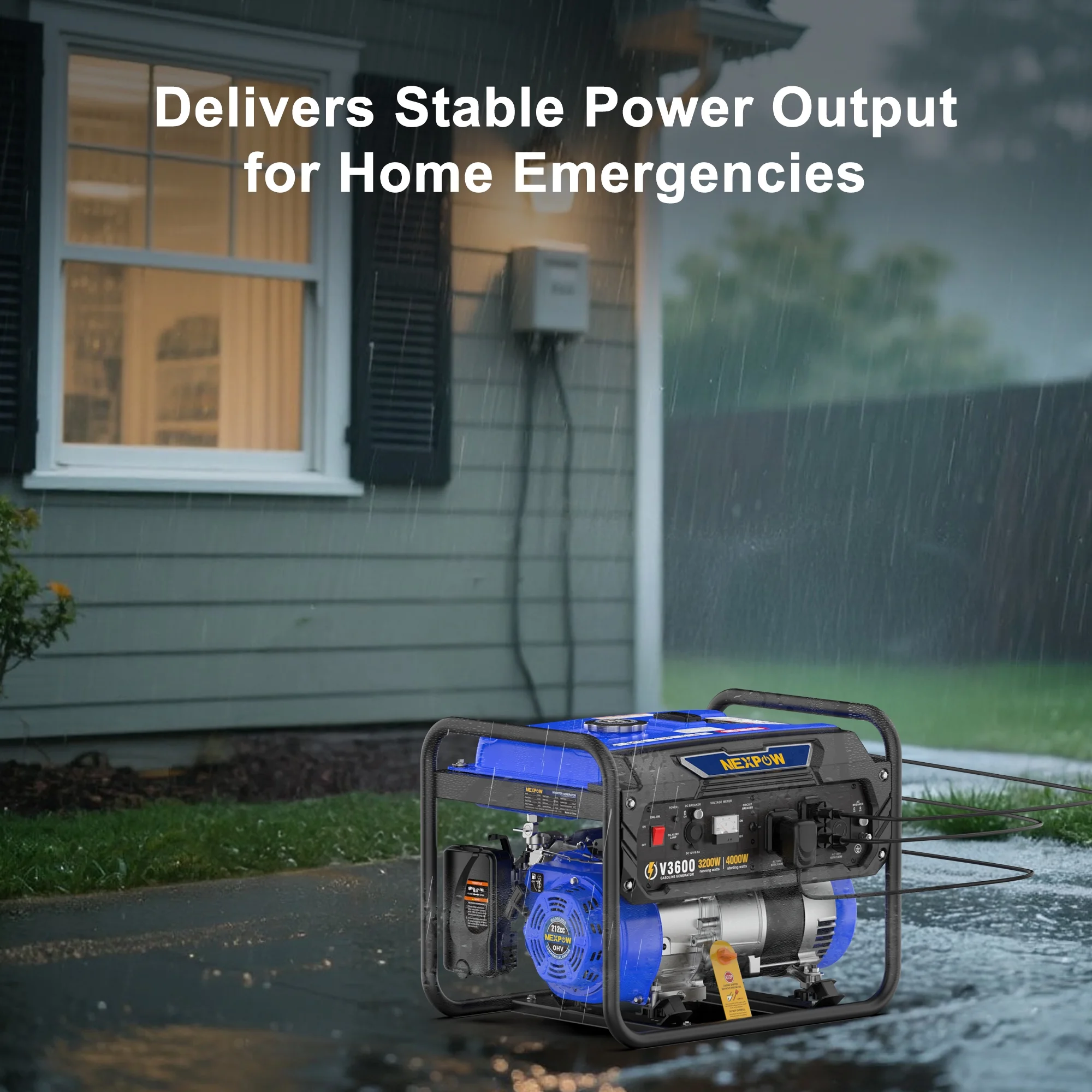 - ��Versatile Portable Generator��Powered by a 212cc 4-stroke OHV single-cylinder engine with recoil start, the NEXPOW Gasoline Generator delivers 4000W surge power and 3200W rated output, featuring circuit breaker protection. Ideal for home emergency backup, light industry projects, or outdoor camping adventures, it ensures safe, stable, and continuous power supply. Its versatile design guarantees reliable performance across all scenarios.