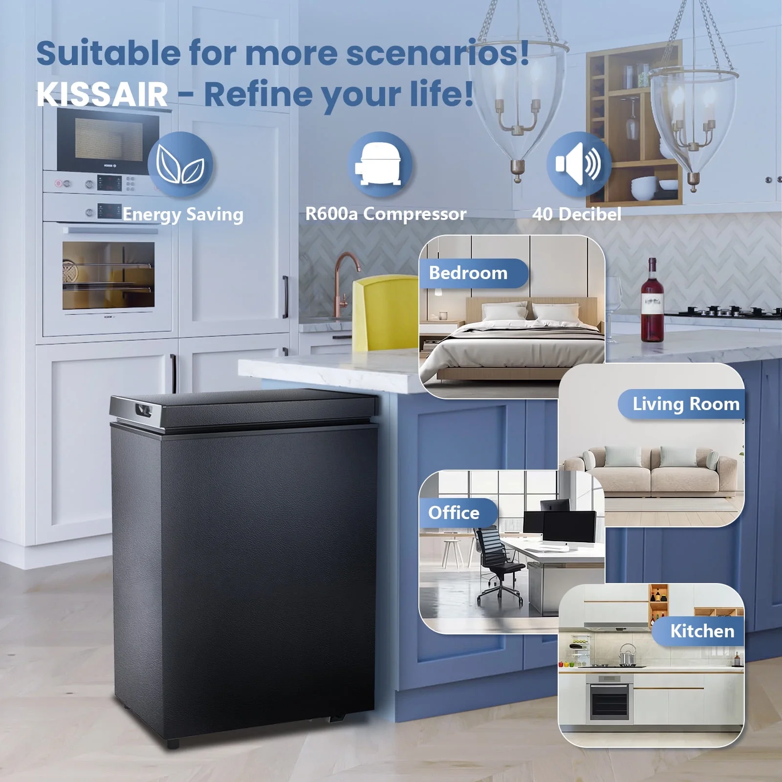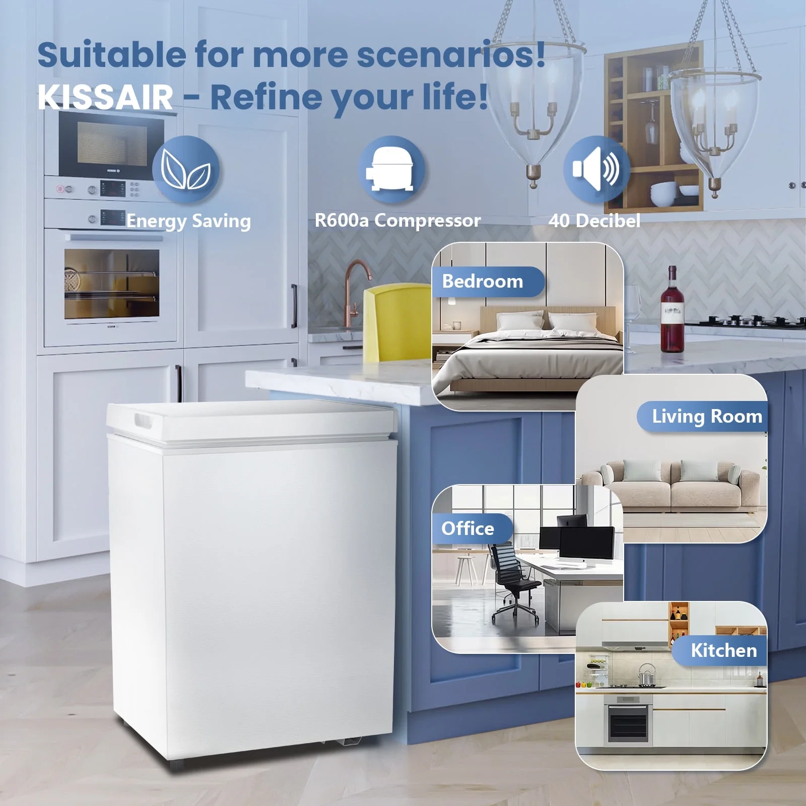 - ��??Energy Efficient & Quiet�� The energy-saving chest freezer is environmentally and budget friendly, with an R600a high-efficiency, low-energy compressor that cools quickly and uses just 0.68 kWh of electricity per day. And with an operating noise level of less than 40 decibels, the freezer ensures you're not disturbed.