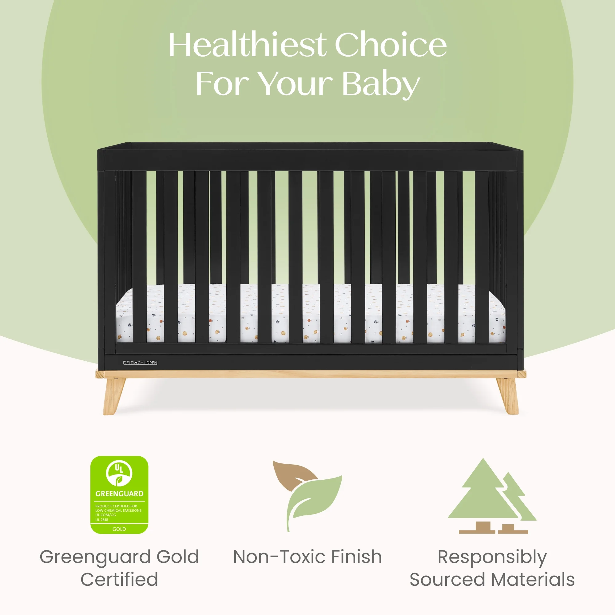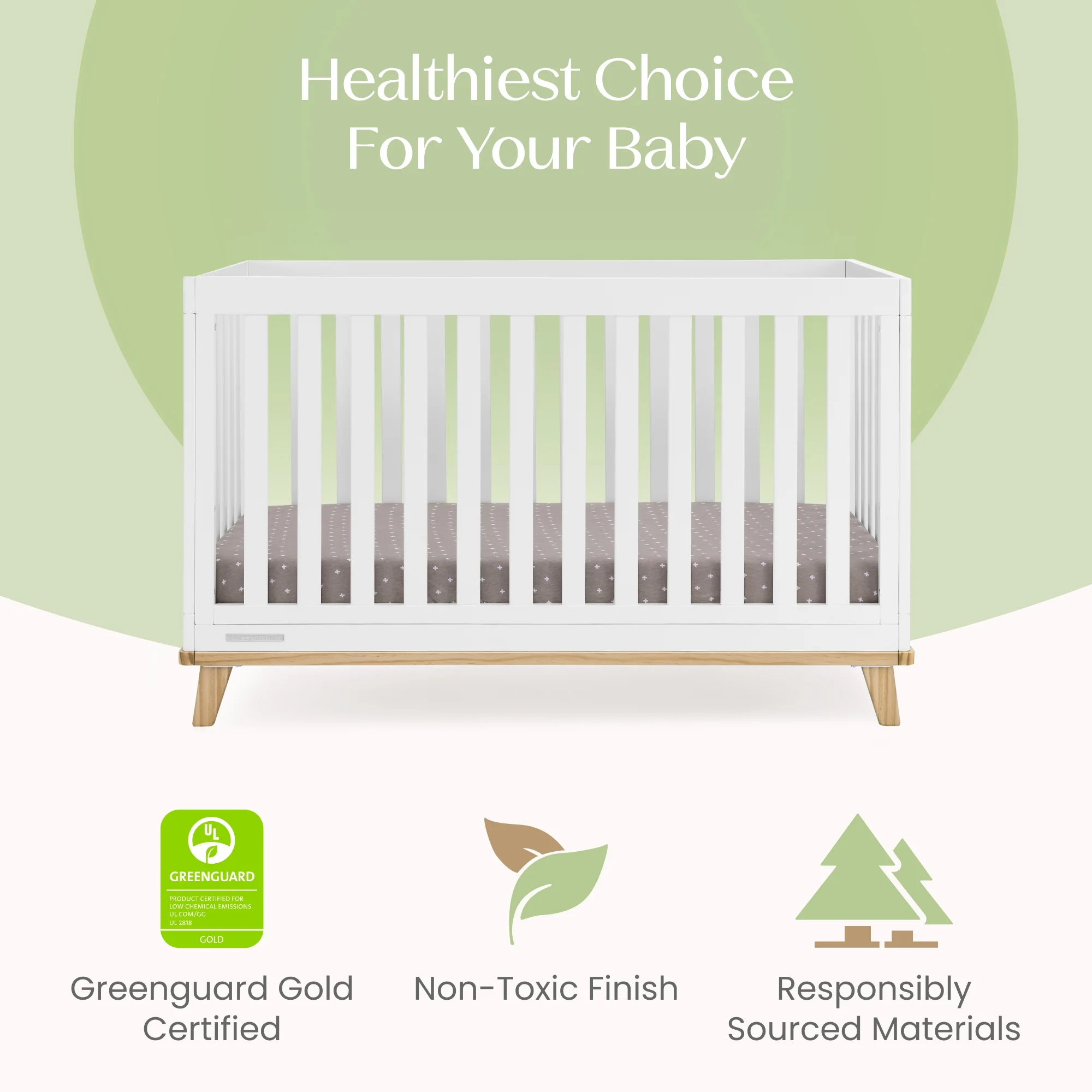 - GREENGUARD GOLD CERTIFIED: This Convertible Crib meets the most stringent chemical emissions standards to create a healthier home for your child. Tested for more than 10,000 chemicals and VOCs, this crib is certified to contribute to cleaner indoor air