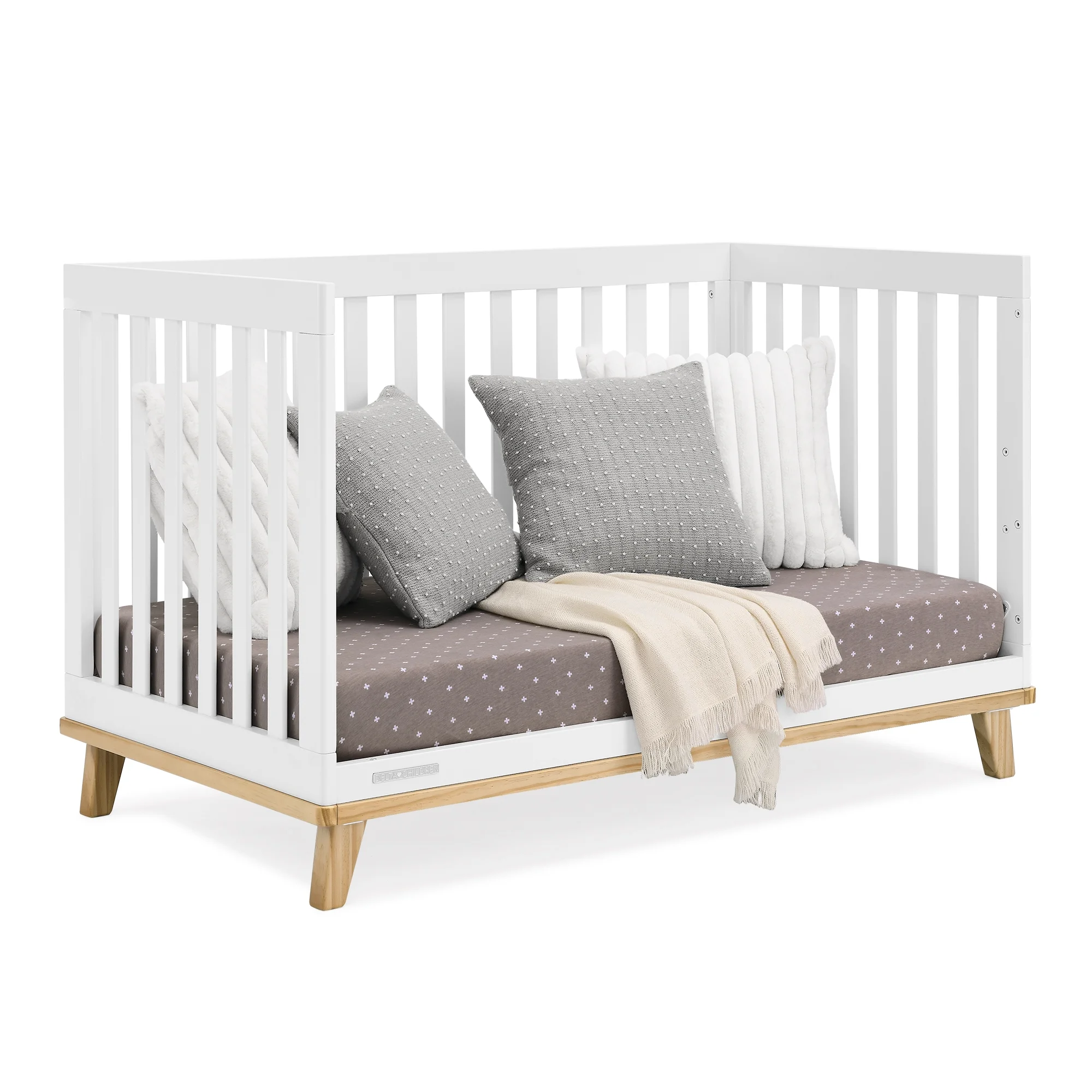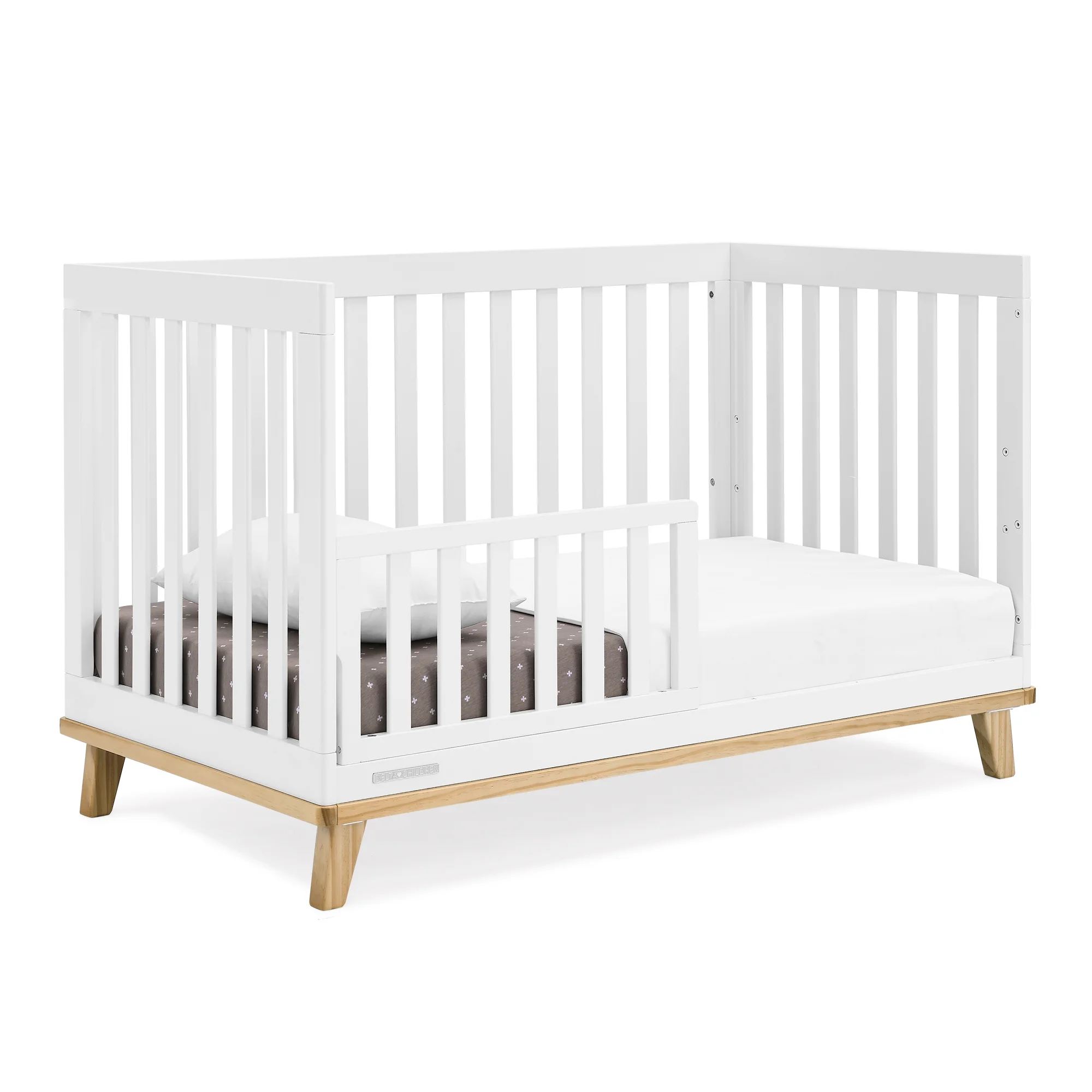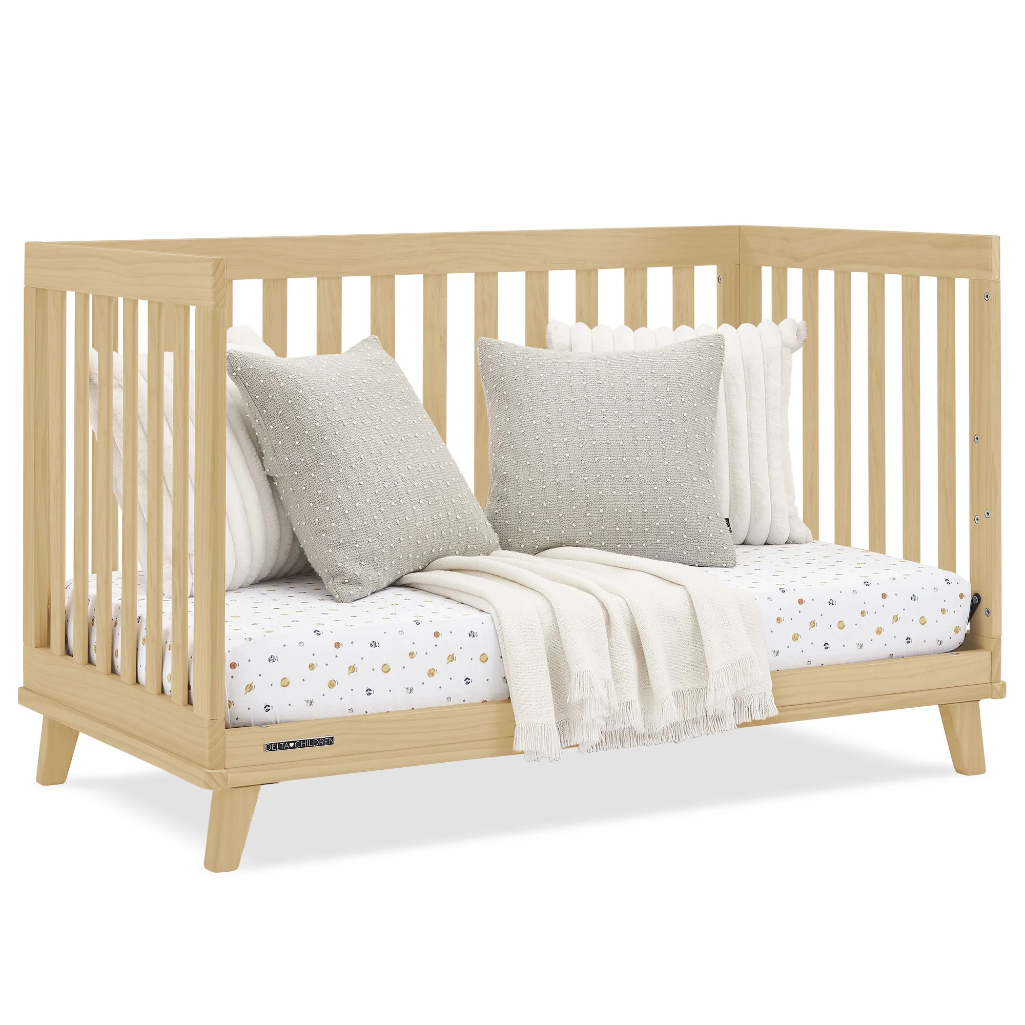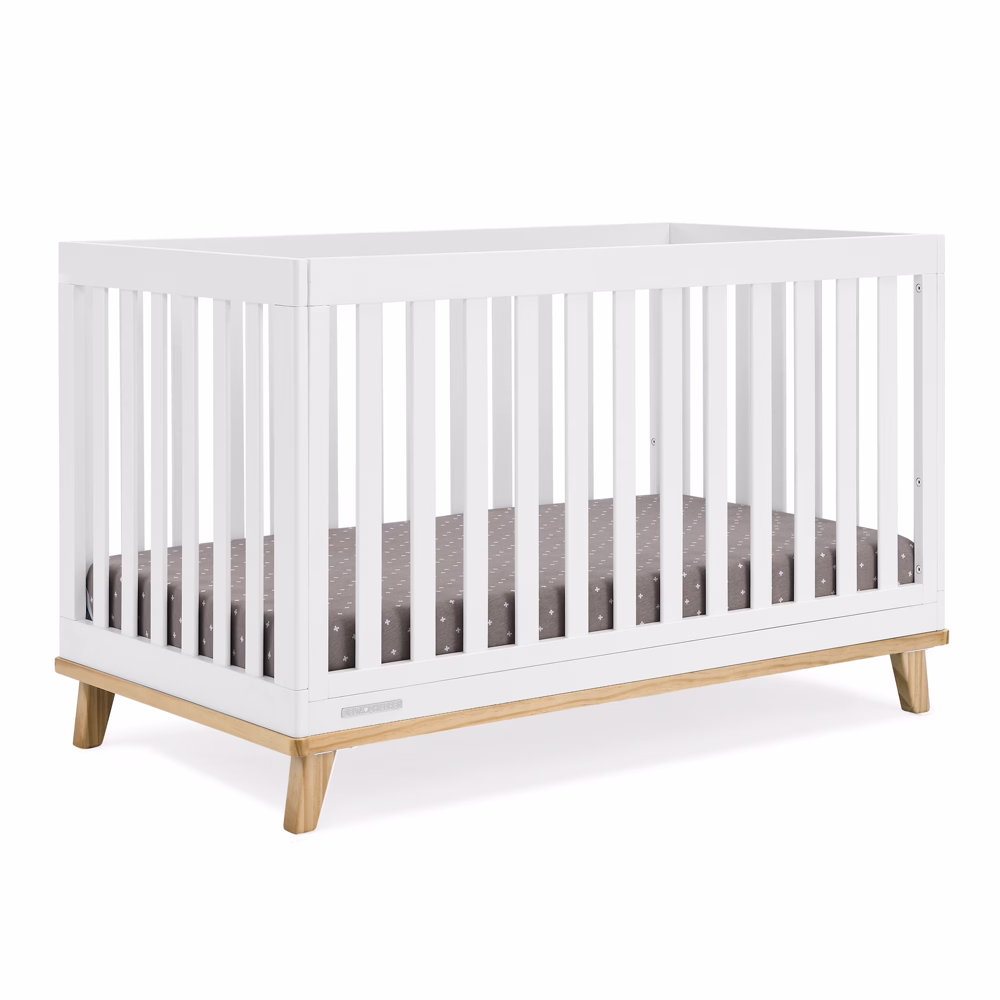 You��ll love the modern mid-century design vibe of Frankie 4-in-1 Convertible Baby Crib by Delta Children��from the clean lines to the angled stance of the legs. Crafted to last, it��s a piece that baby can use from birth and beyond. This crib features three mattress heights, and converts into a toddler bed, daybed and sofa (Daybed/Sofa Rail Included, Toddler Guardrail #W100825 sold separately). Plus, it��s GREENGUARD Gold Certified, which means it��s built to contribute to cleaner air for a healthy home. Crib mattress sold separately.