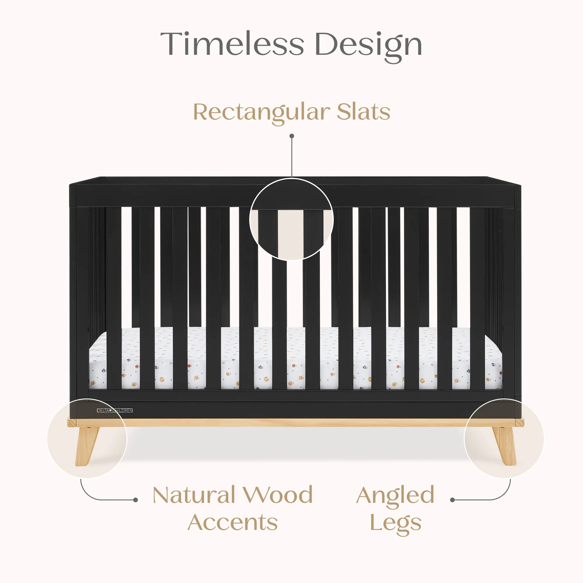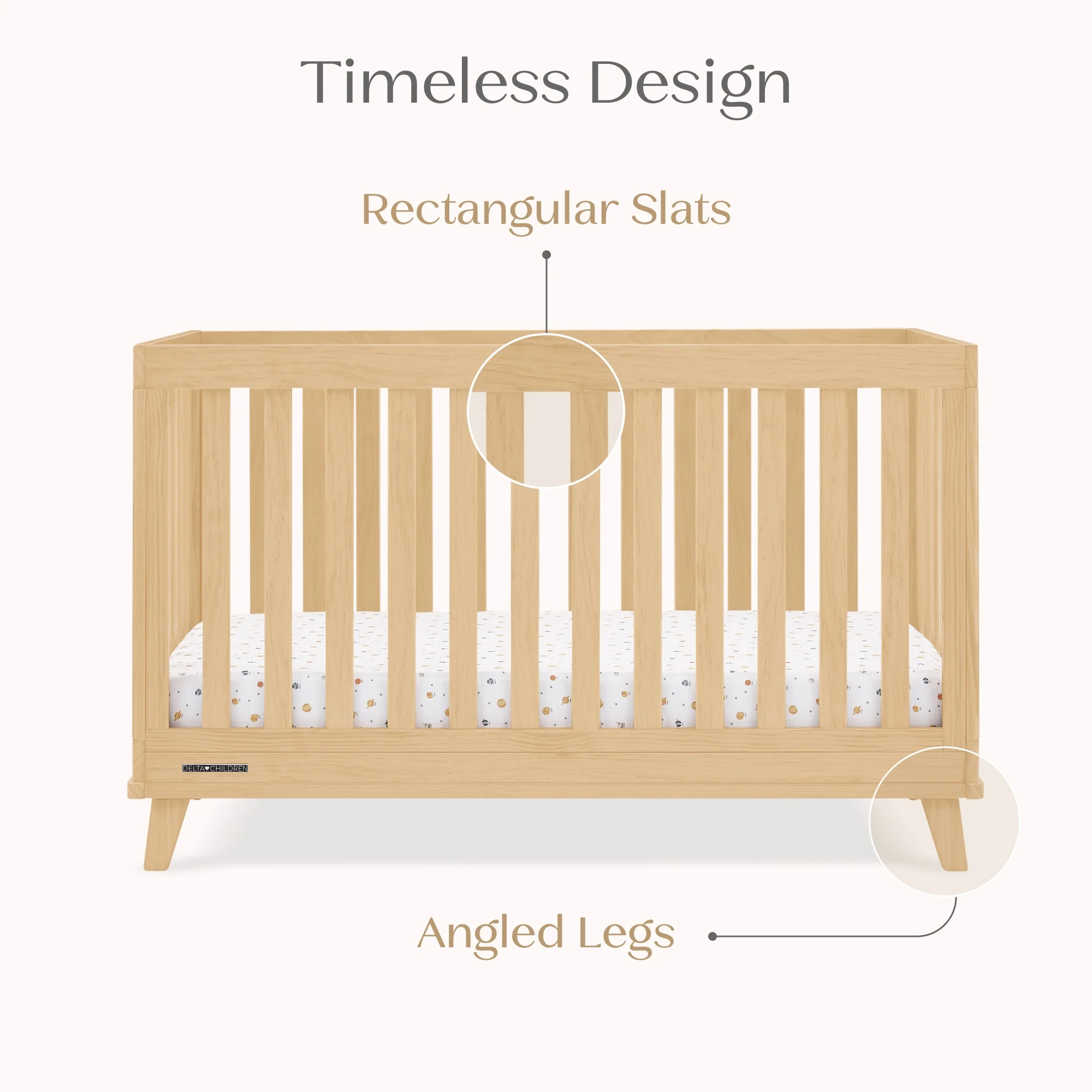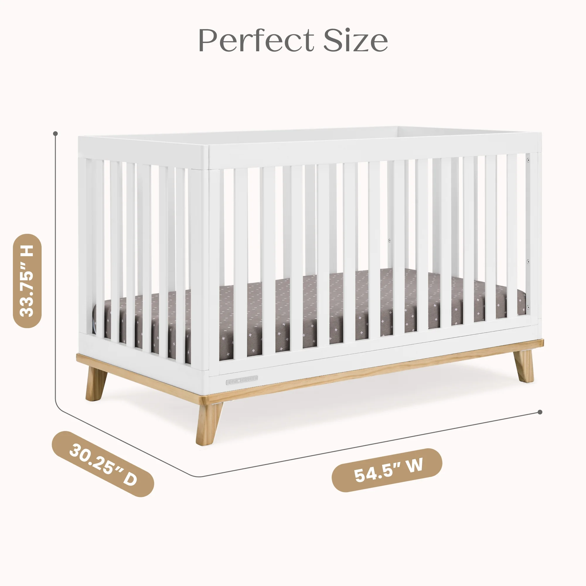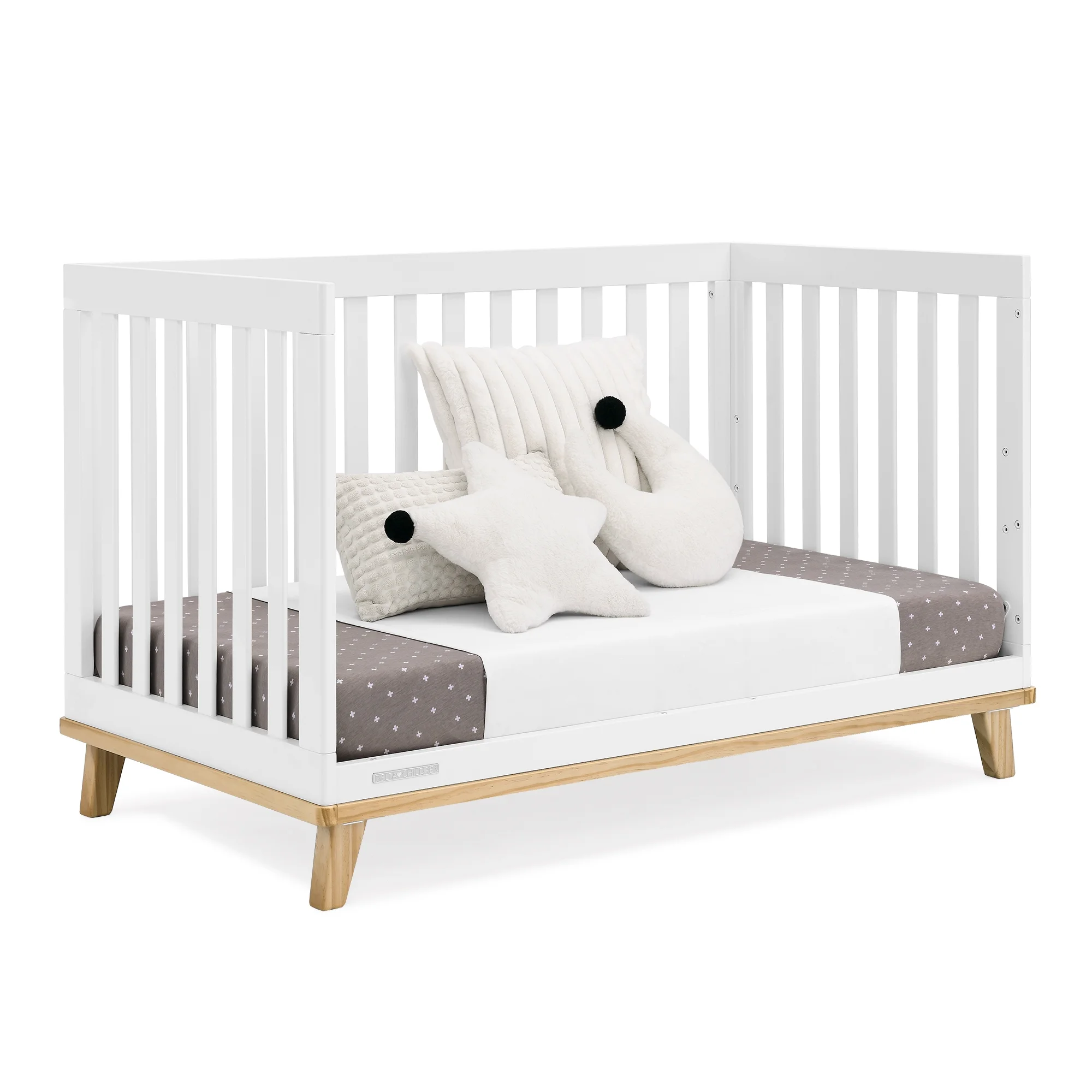 You��ll love the modern mid-century design vibe of Frankie 4-in-1 Convertible Baby Crib by Delta Children��from the clean lines to the angled stance of the legs. Crafted to last, it��s a piece that baby can use from birth and beyond. This crib features three mattress heights, and converts into a toddler bed, daybed and sofa (Daybed/Sofa Rail Included, Toddler Guardrail #W100825 sold separately). Plus, it��s GREENGUARD Gold Certified, which means it��s built to contribute to cleaner air for a healthy home. Crib mattress sold separately.