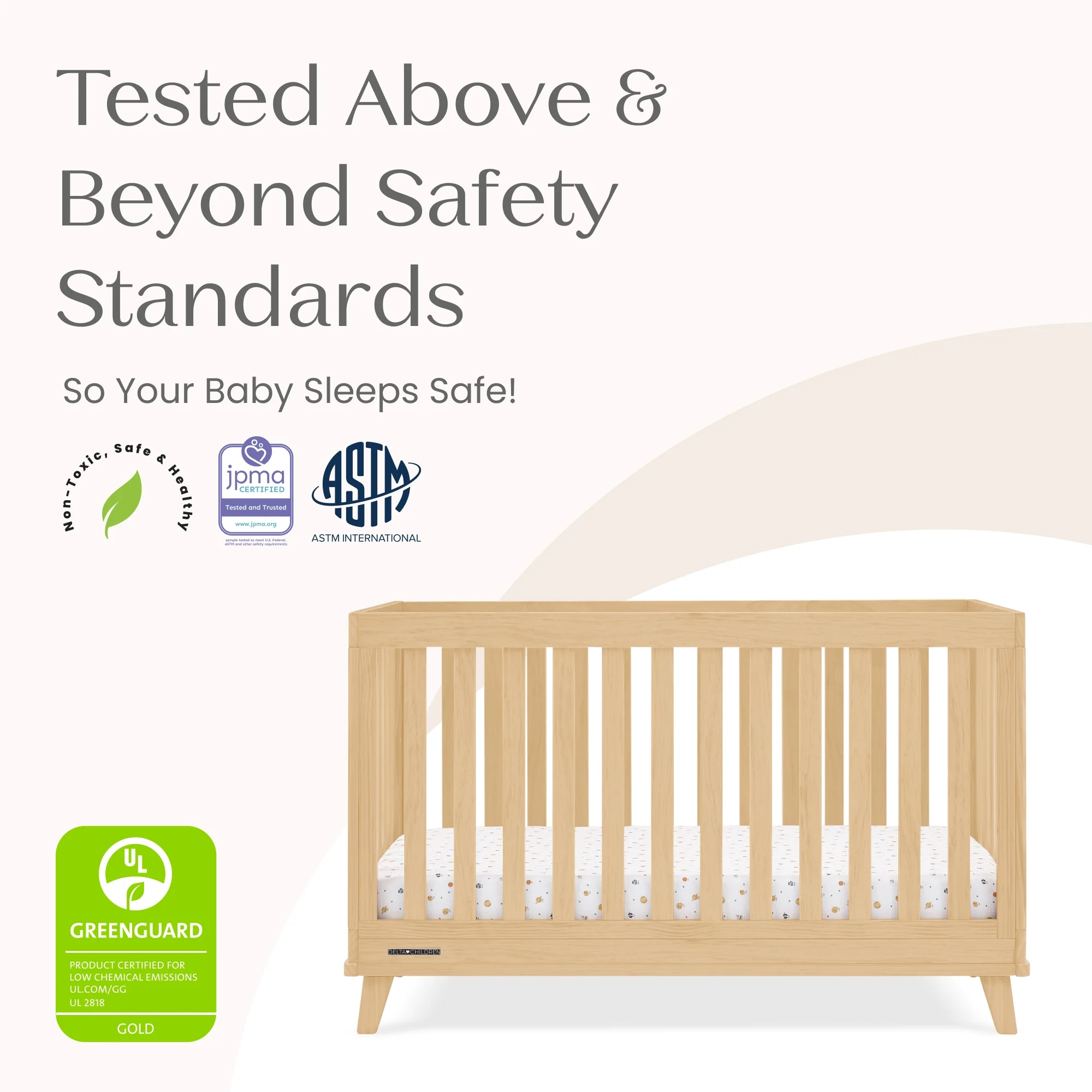 Delta Children was founded around the idea of making safe, high-quality cribs affordable for all families. That's why all Delta Children cribs are JPMA certified, and are tested above and beyond industry standards.