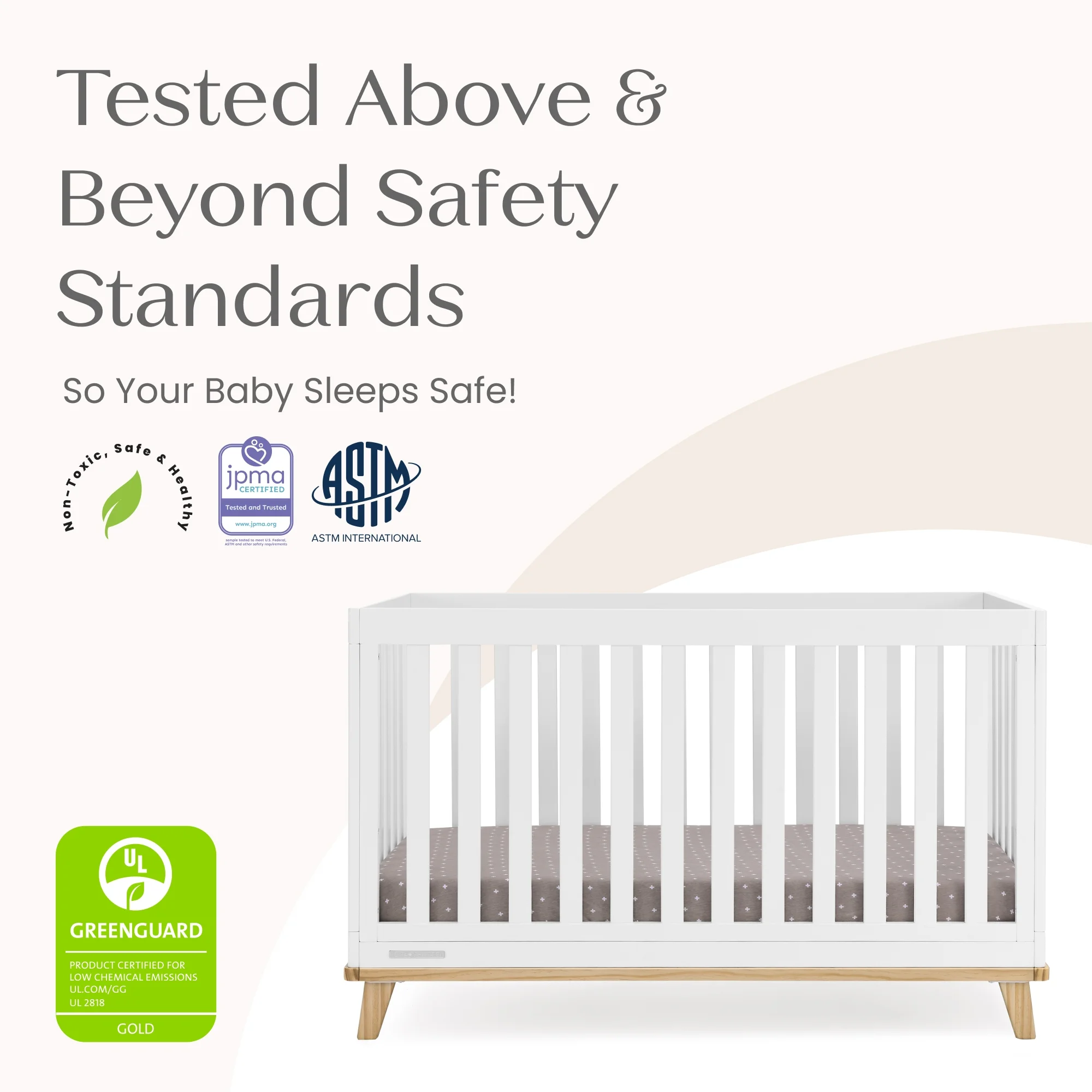 - SAFE OPTION FOR YOUR BABY: This crib is JPMA certified to meet or exceed all safety standards set by the CPSC & ASTM | We know chemicals have no place in your nursery, so we use a non-toxic multi-step painting process that is lead and phthalate safe