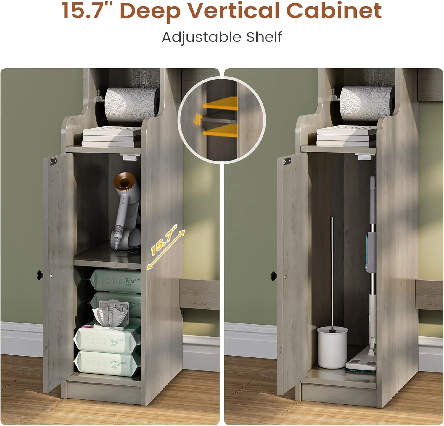 - ��Large Storage Capacity��With its spacious design, the cabinet provides ample storage for a variety of items, including toiletries, towels, and laundry supplies. A built-in tissue hook adds to the functionality of the cabinet, offering a convenient place to hang toilet paper or other items.