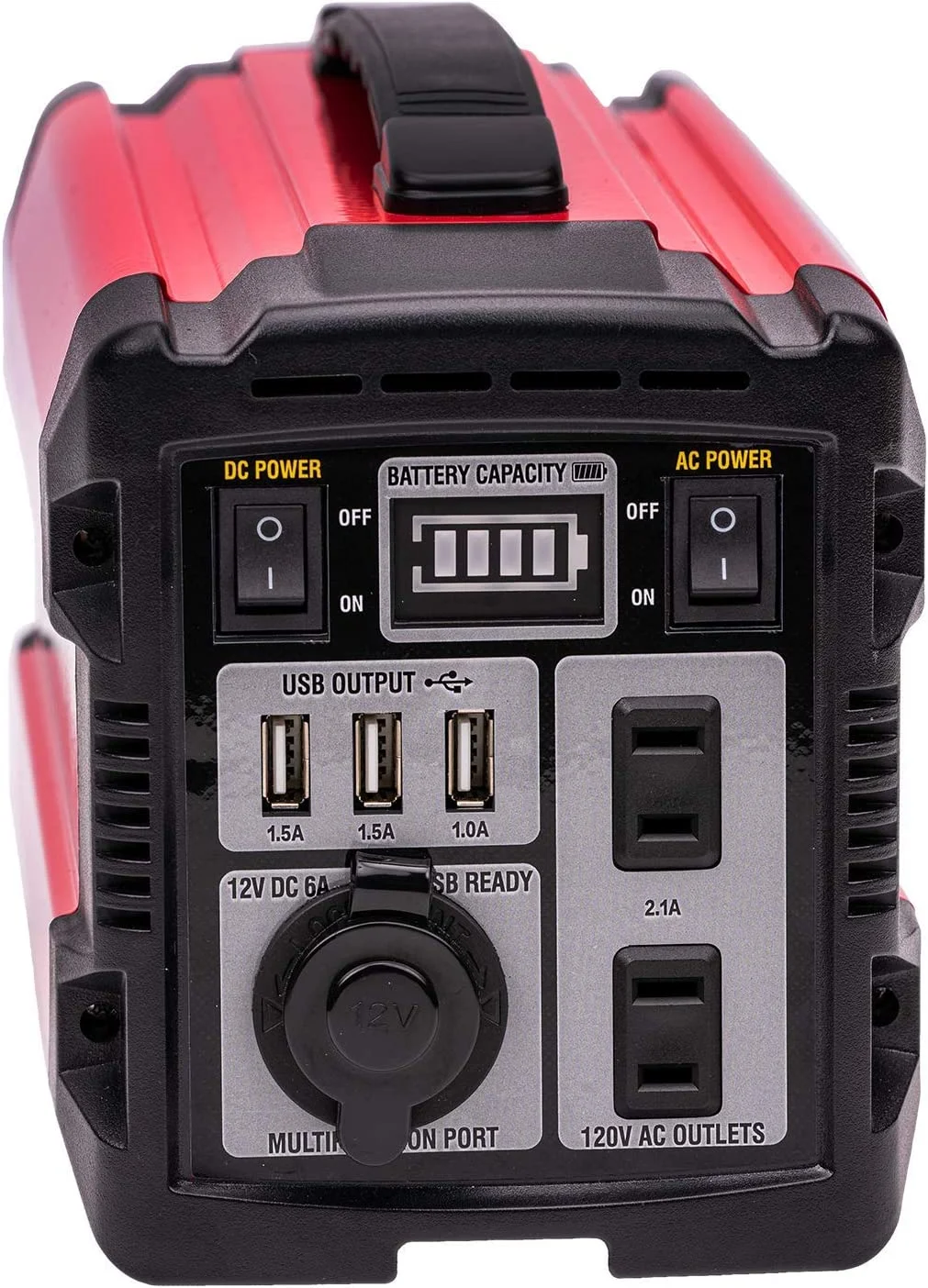 - Control Panel: This portable power station control panel consists of 3 USB ports, one 12-volt DC outlet, and two 120-volt AC outlets, to ensure that you are connected on the go.