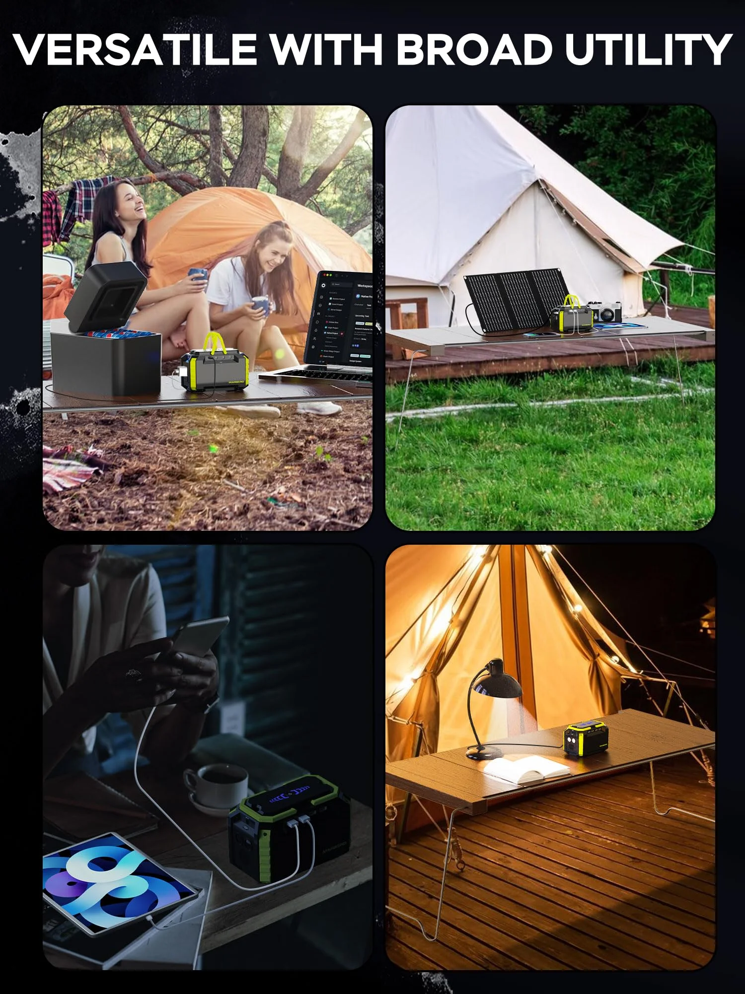 - MULTI-OUTPUT OF POWER STATION: Experience versatile power solutions with our multi-output power station! Featuring a lithium backup battery pack with a robust 155Wh capacity(equivalent to 40,500mAh), this device offers a range of charging options to meet your needs. With 4 USB ports supporting fast charging at 5V/3A, 9V/2A, and 12V/1.5A(QC18W), 2 AC ports providing 110V/60Hz output at 100W (with a peak of 150W), and 4 DC ports delivering 12-16.8V/10A(total 150W MAX), you'll have the flexibility to power various devices simultaneously. Whether you're charging smartphones, laptops, lights, or other electronics, our power station has you covered!
