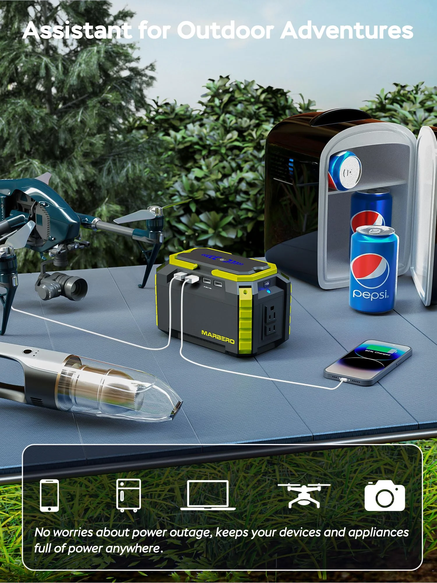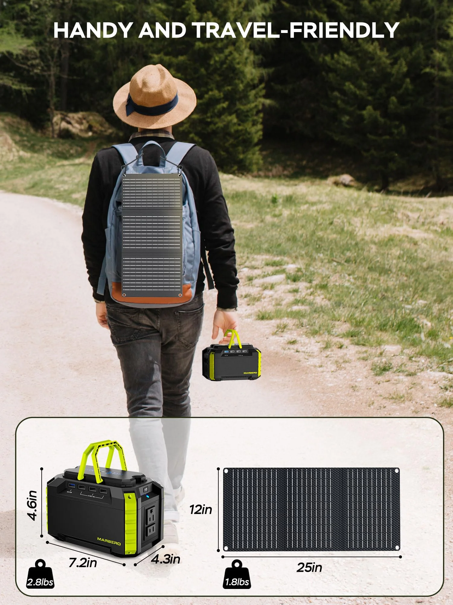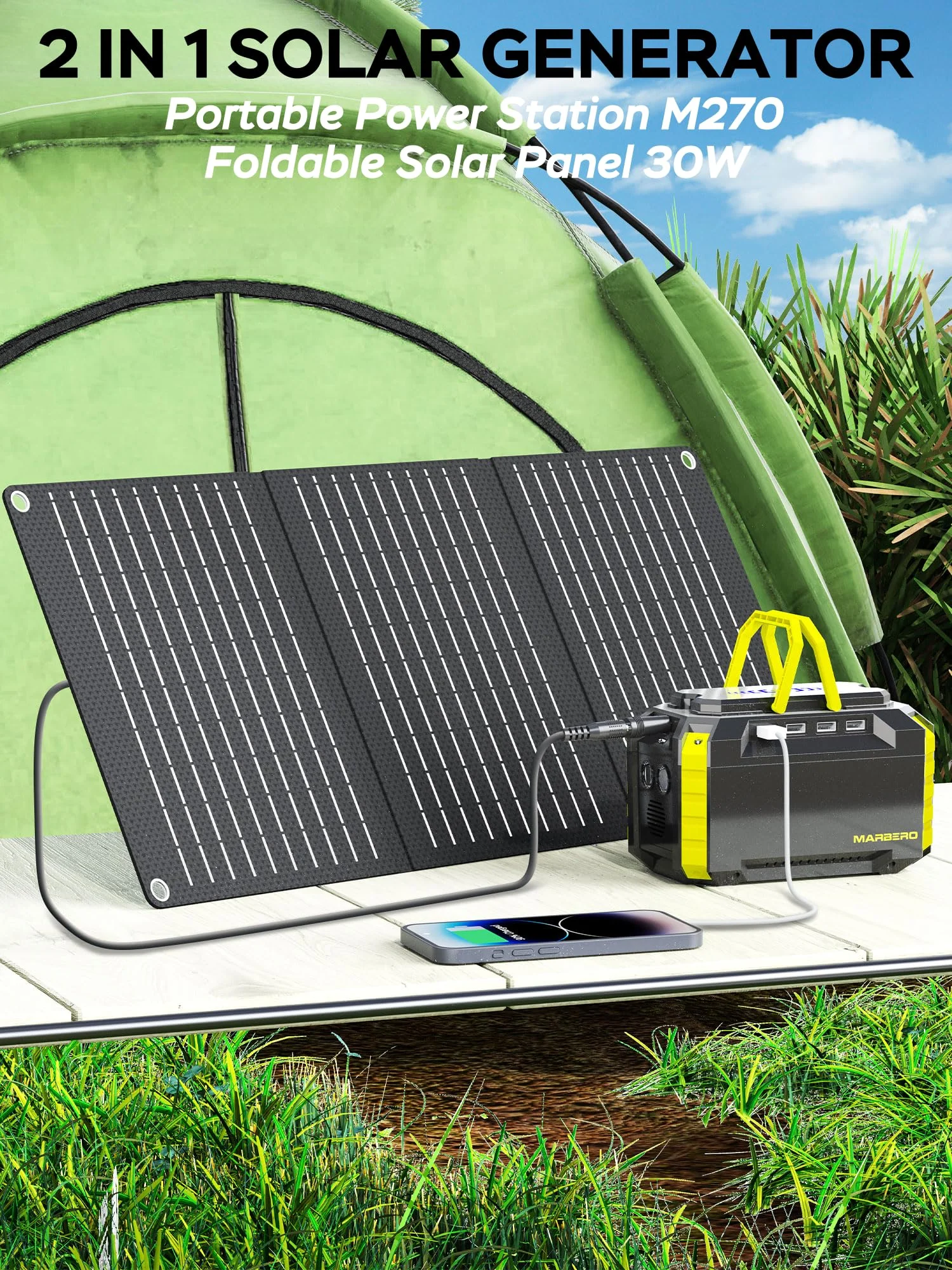 - SOLAR GENERATOR WITH SOLAR PANEL: Looking for a reliable power solution for your outdoor adventures? Look no further than the MARBERO Solar Generator paired with the MARBERO 30W Solar Panel. Whether you're camping in the wilderness or embarking on a road trip, this powerful duo ensures you have access to electricity wherever you go. With its large capacity, this portable power kit is perfect for overnight stays or extended periods off the grid. Say goodbye to worrying about charging your devices and hello to uninterrupted outdoor fun!