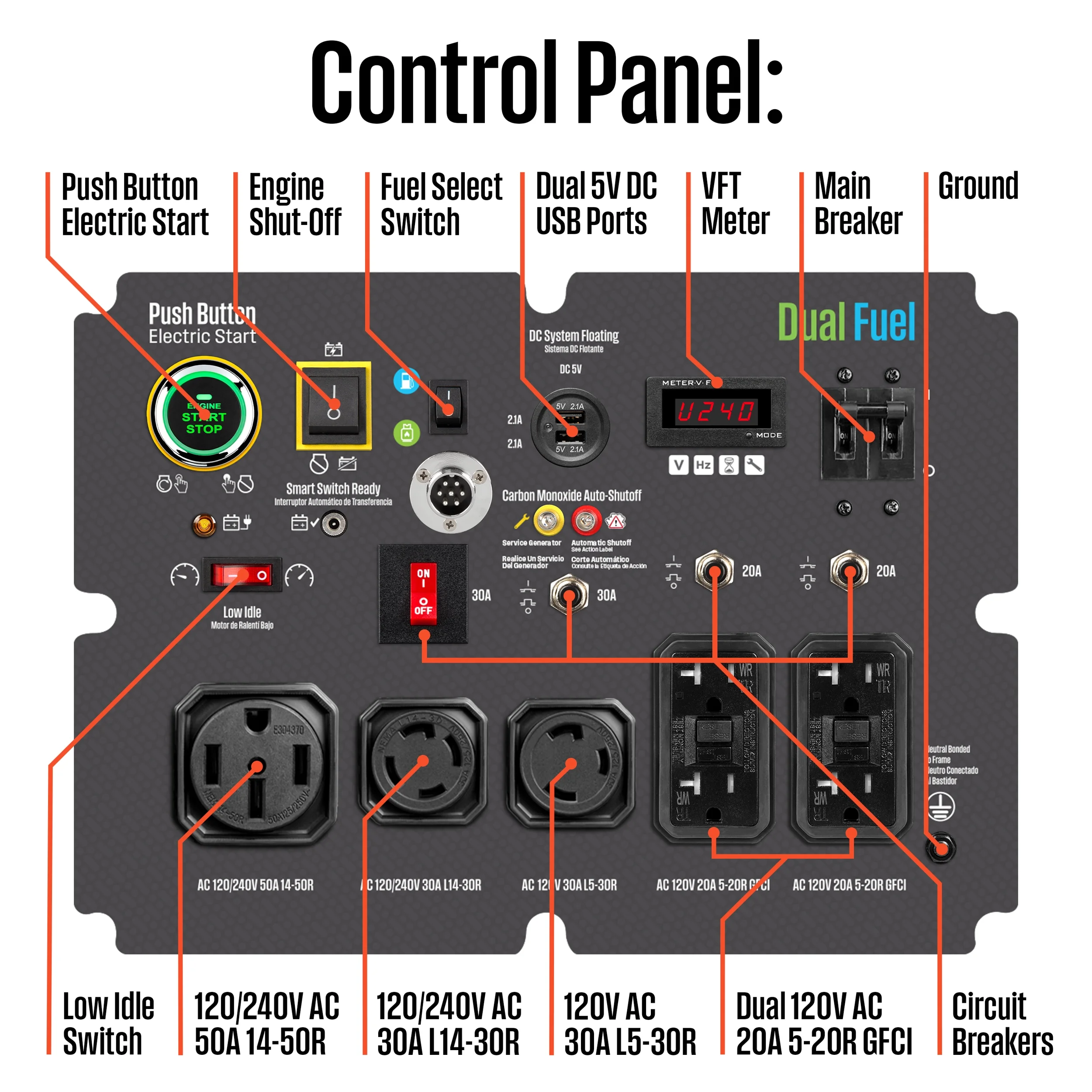 - Delivers 12,000 running watts and 15,000 peak watts (gasoline); 10,800 running watts and 13,500 peak watts (propane)