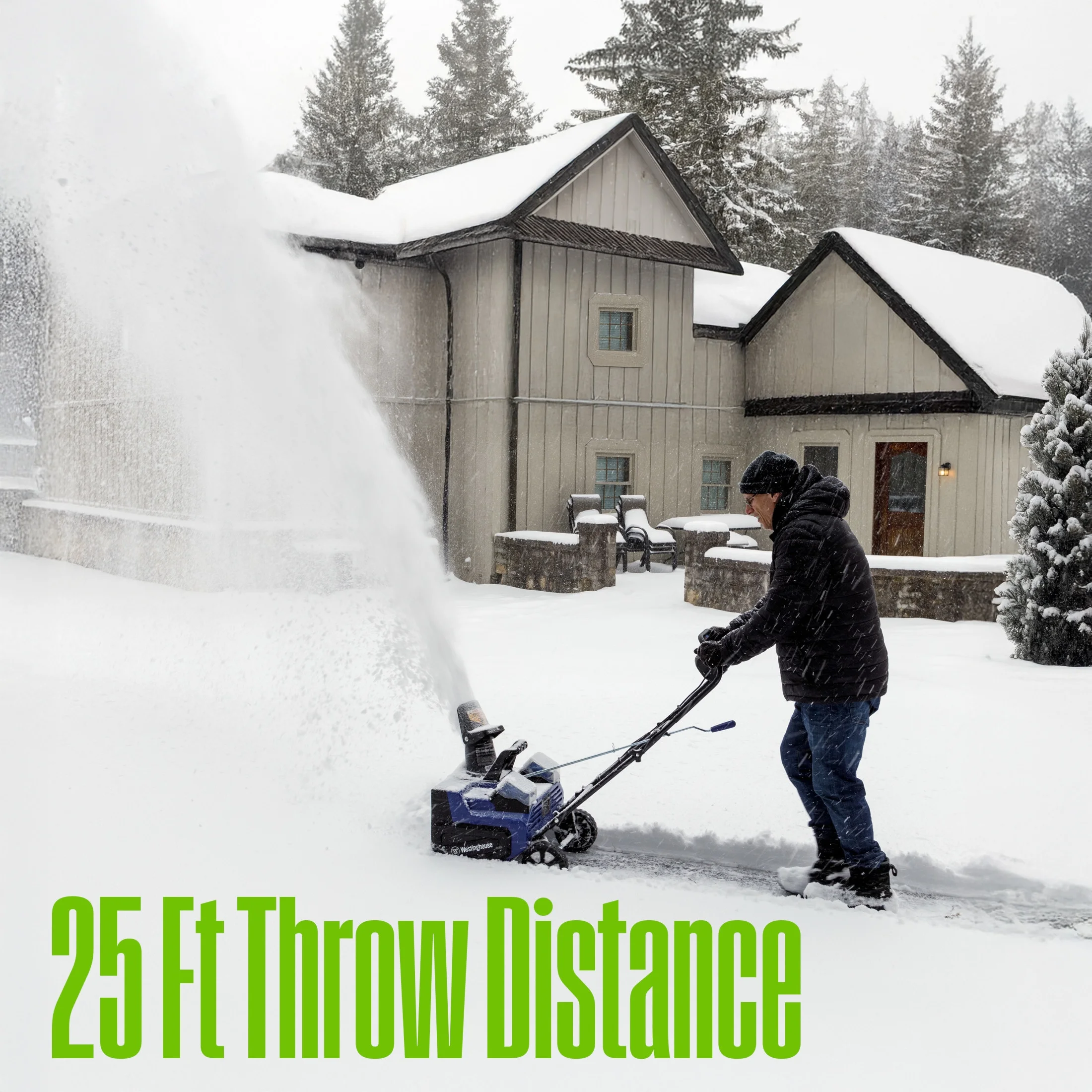 - Easy & Effective: Low-maintenance battery powered motor, cord-free and easily maneuverable, yet powerful enough to throw snow 25 feet; dual LED lights for winter nights; 180 degree adjustable snow thrower chute