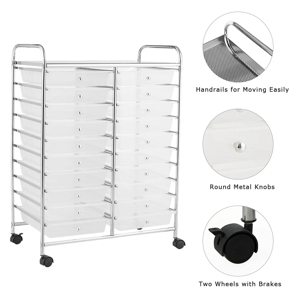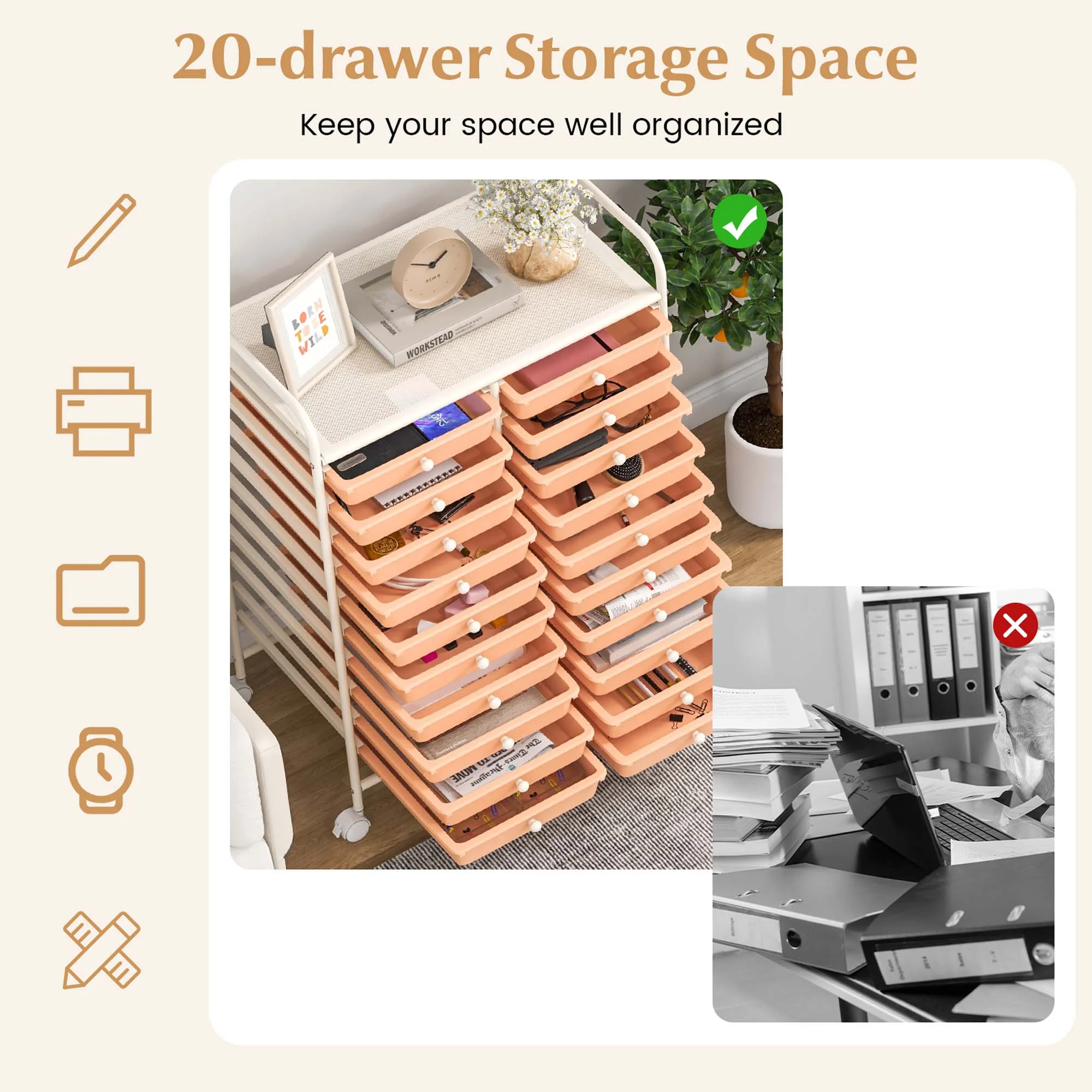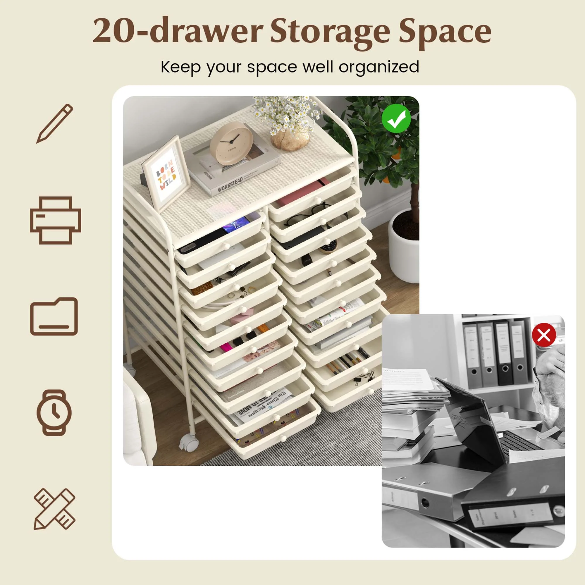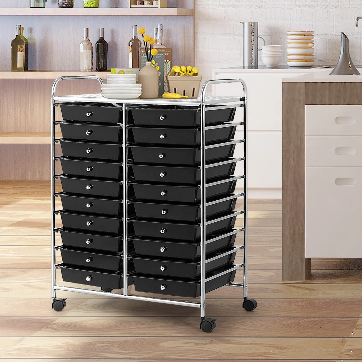- 20 Drawers for Storing & Organizing: Equipped with 20 drawers, the cart will provide plenty of space for keeping your home office supplies tidy and close, organizing makeup and cosmetics, storing arts and crafts supplies, and arranging tools for use in the garage. It is easy to find something after you keep them in order.