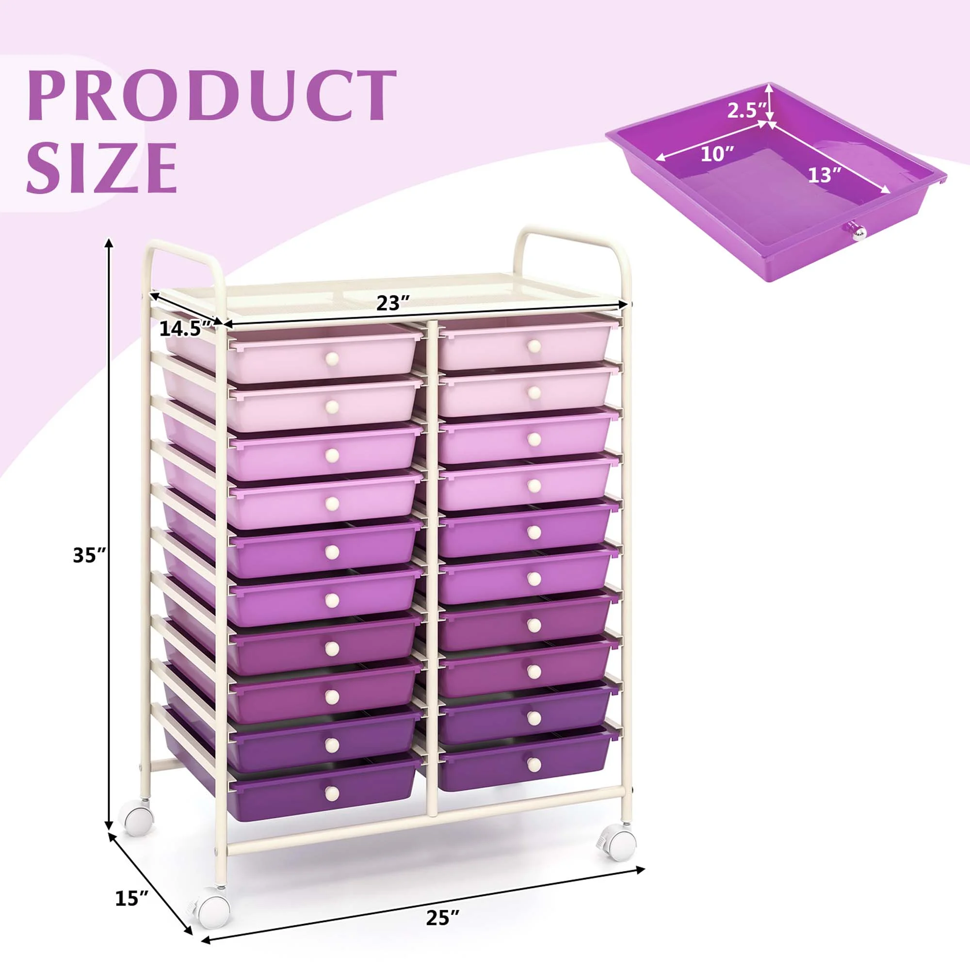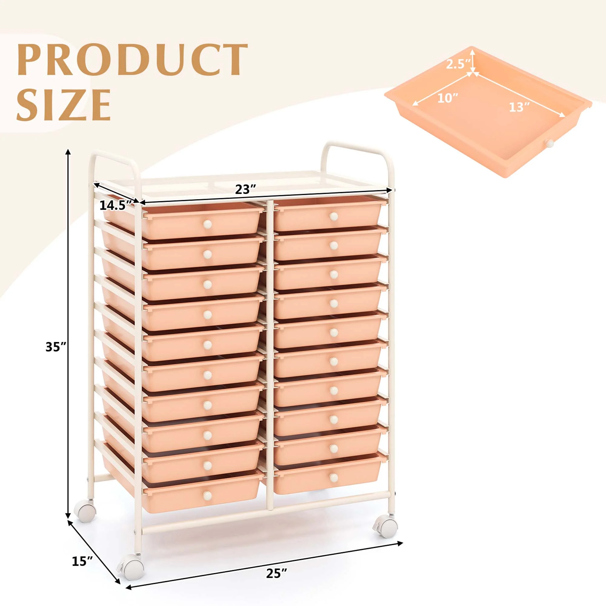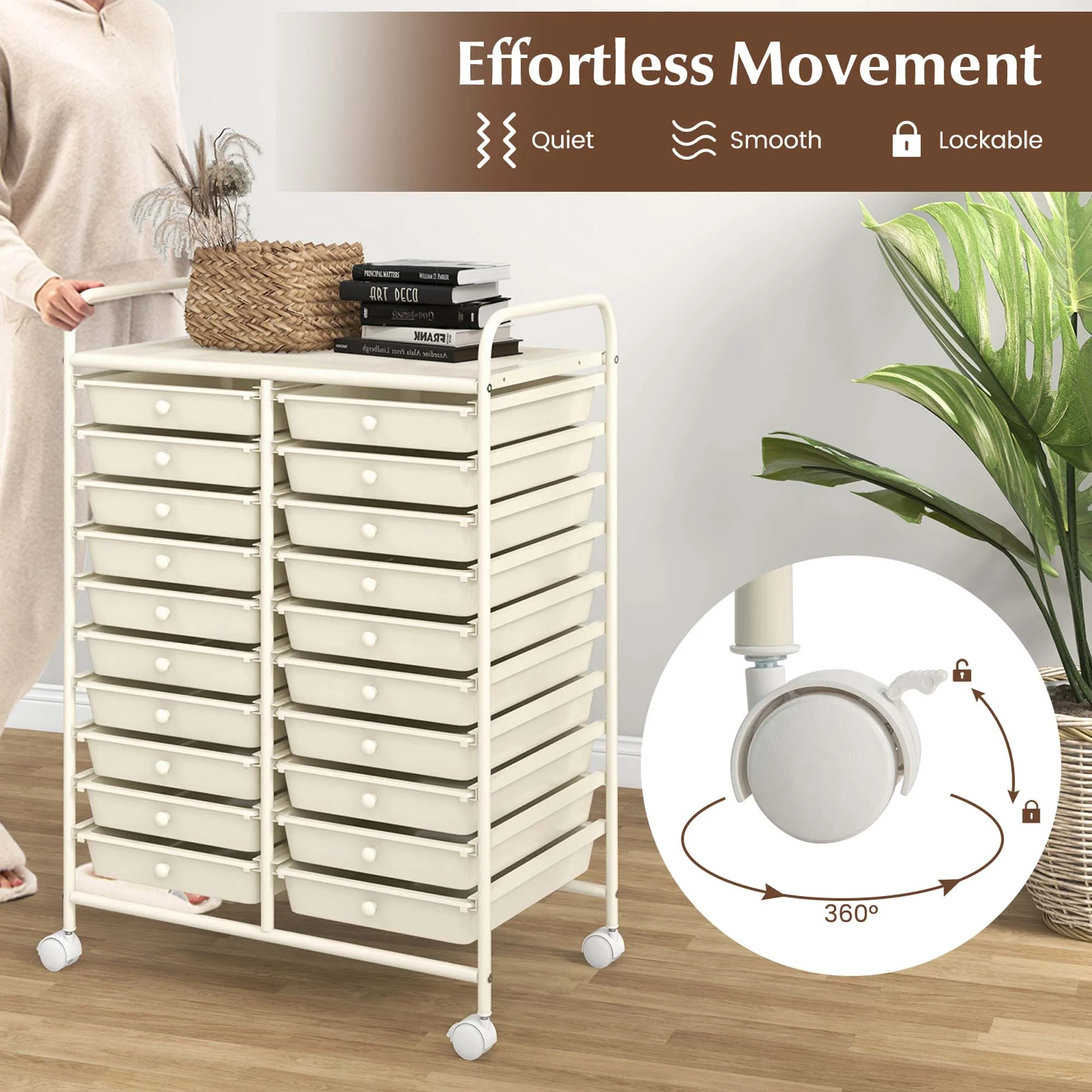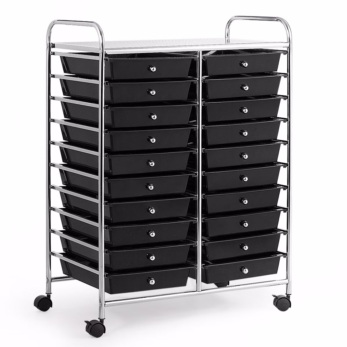 - 20 Drawers for Storing & Organizing: Equipped with 20 drawers, the cart will provide plenty of space for keeping your home office supplies tidy and close, organizing makeup and cosmetics, storing arts and crafts supplies, and arranging tools for use in the garage. It is easy to find something after you keep them in order.