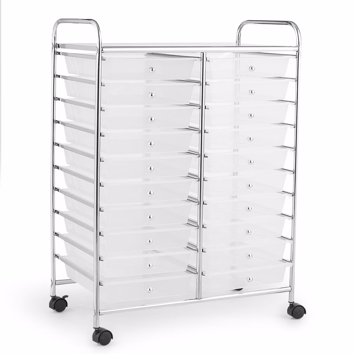 - sturdy & Lightweight Materials: The frame of this drawer storage cart is constructed of premium metal and processed with smooth chrome finish. And 20 drawers are made of high-quality plastic. The cart is sturdy and can provide long time service.