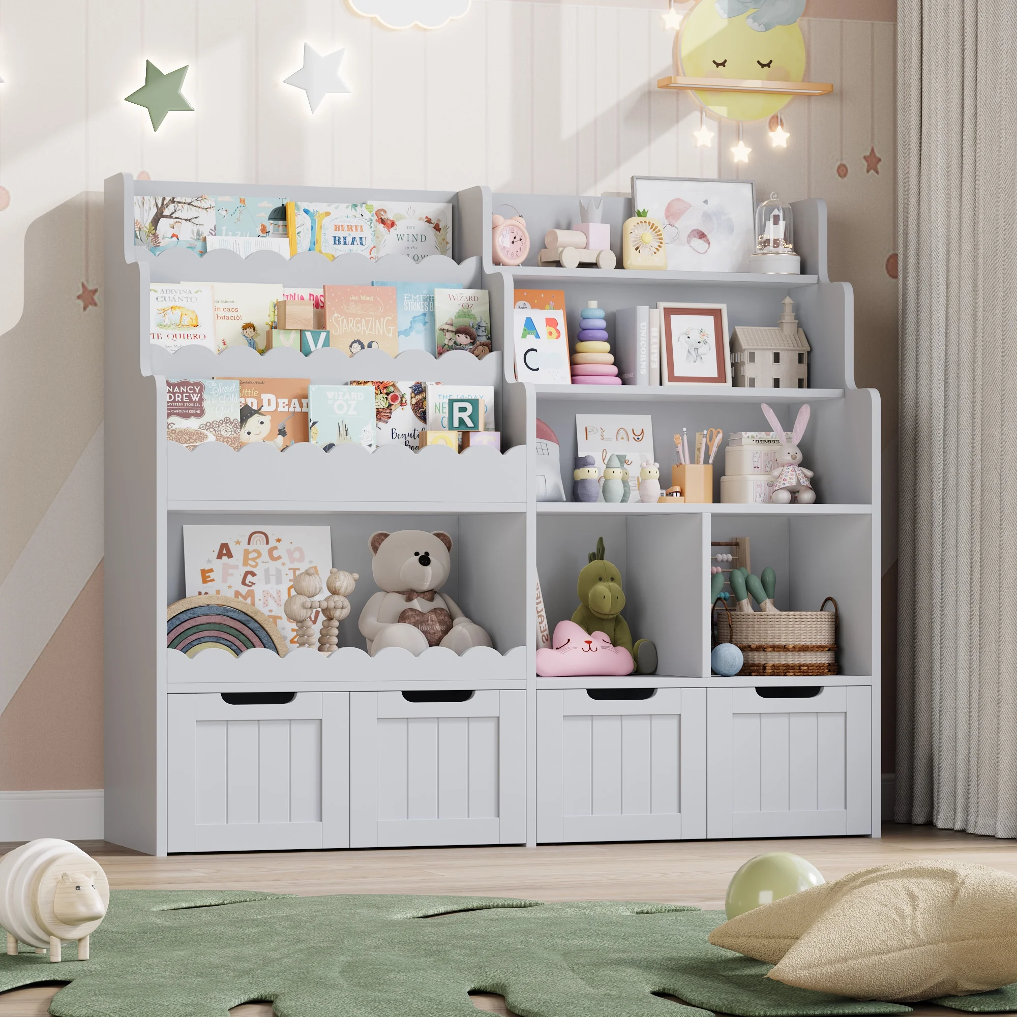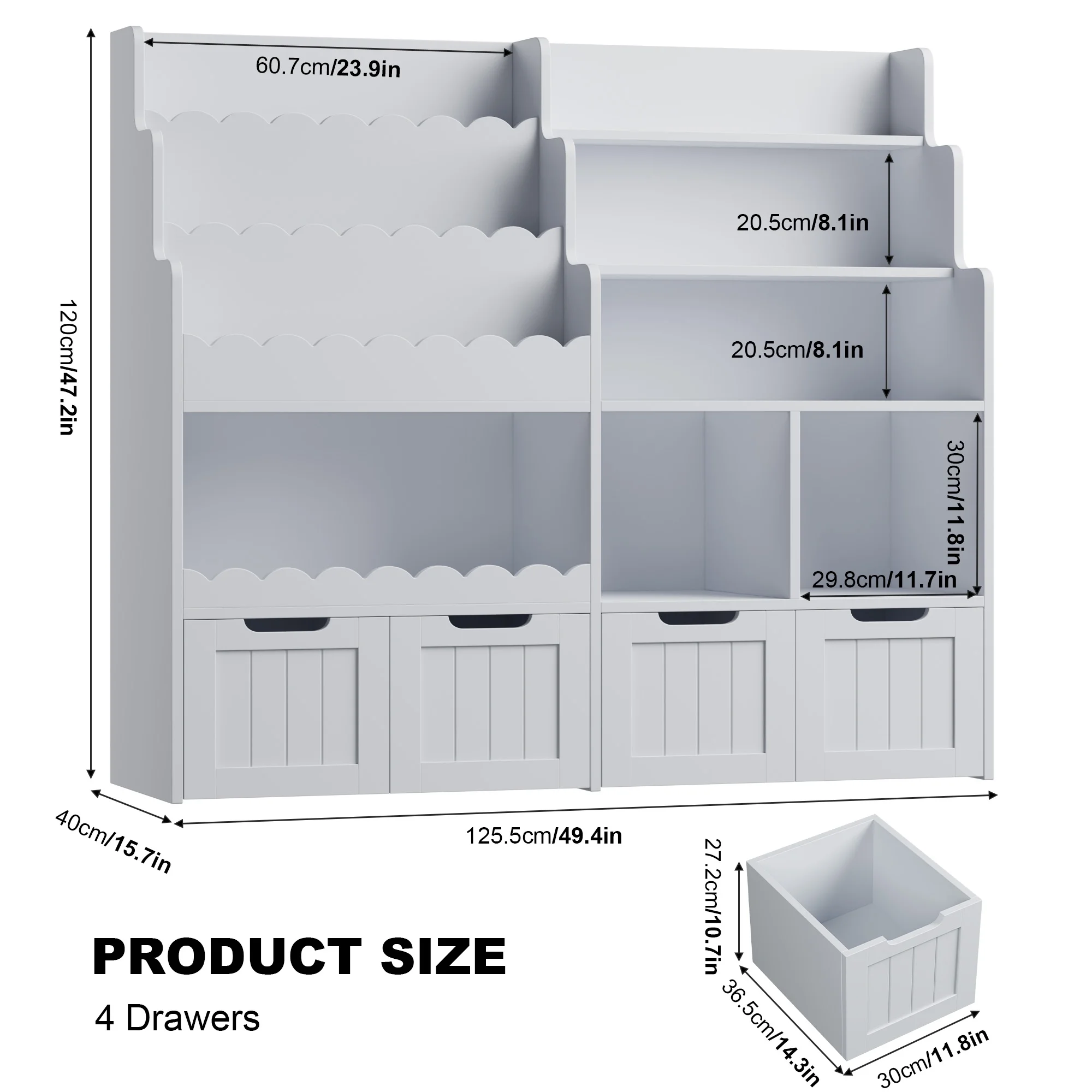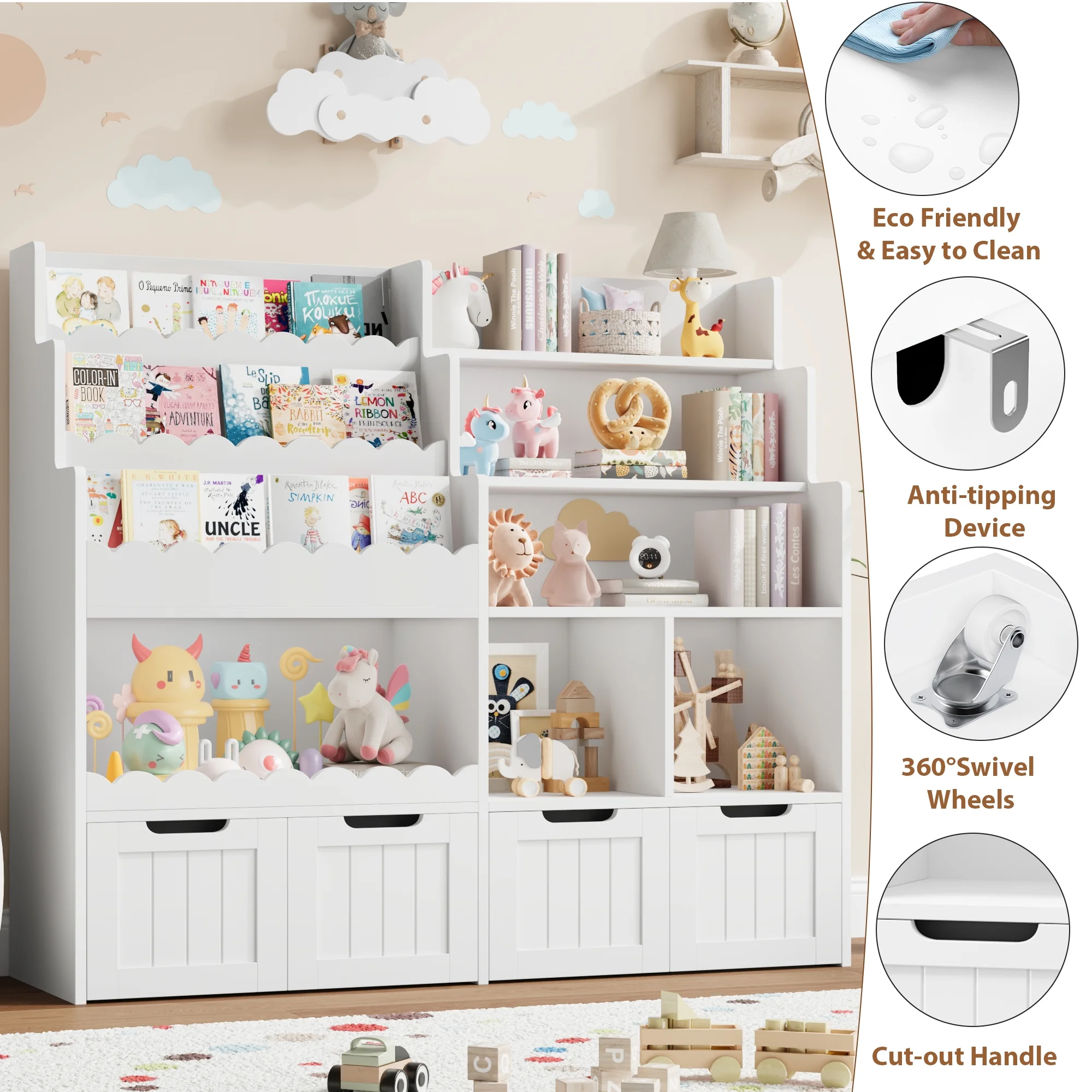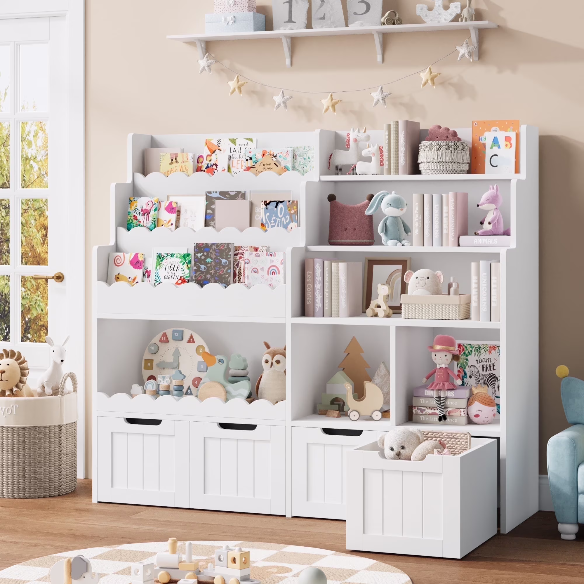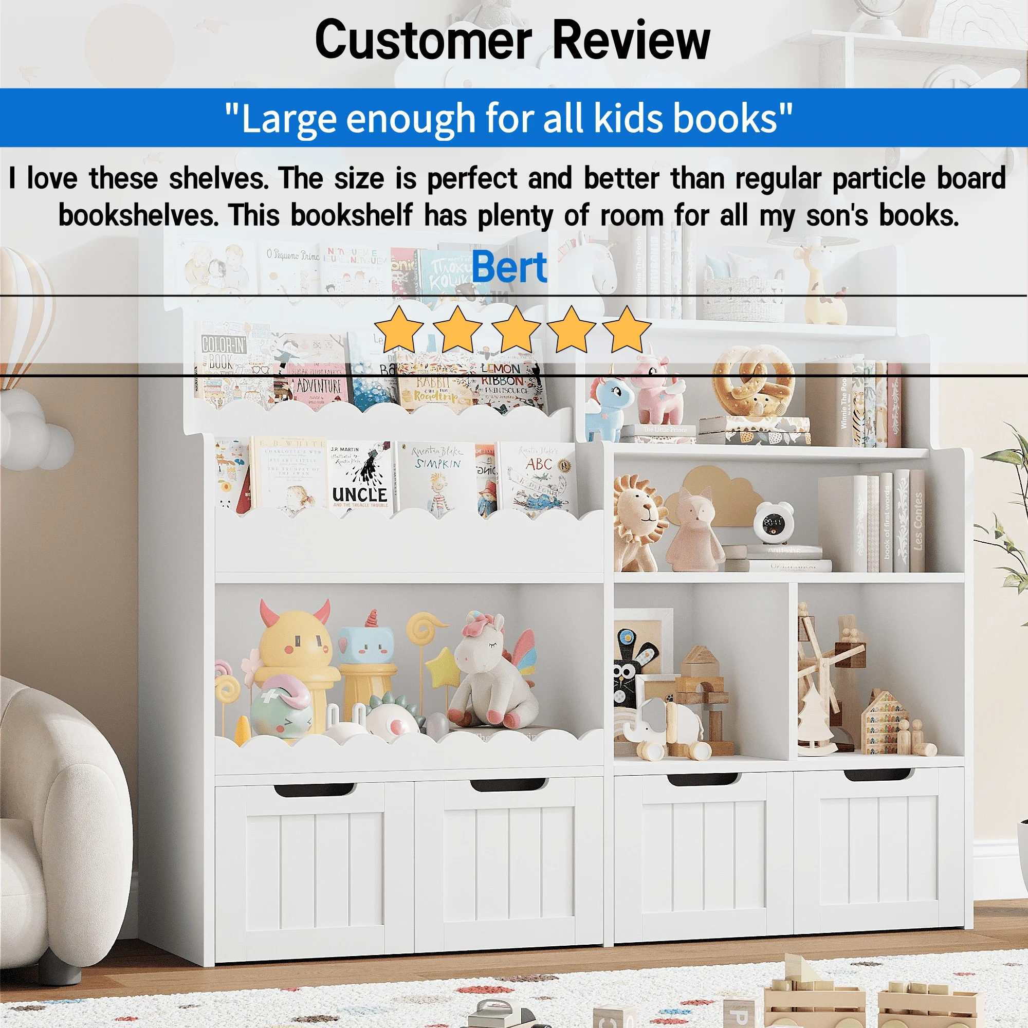 Style That Speaks: Hiphuta kids large bookshelf for kids with white finish blends with any decor. A tangible homage to craftsmanship, it helps craft a warm home that speaks volumes about style. It fits kid's bedroom, living room, playroom, family room, classroom, mudroom and more.
