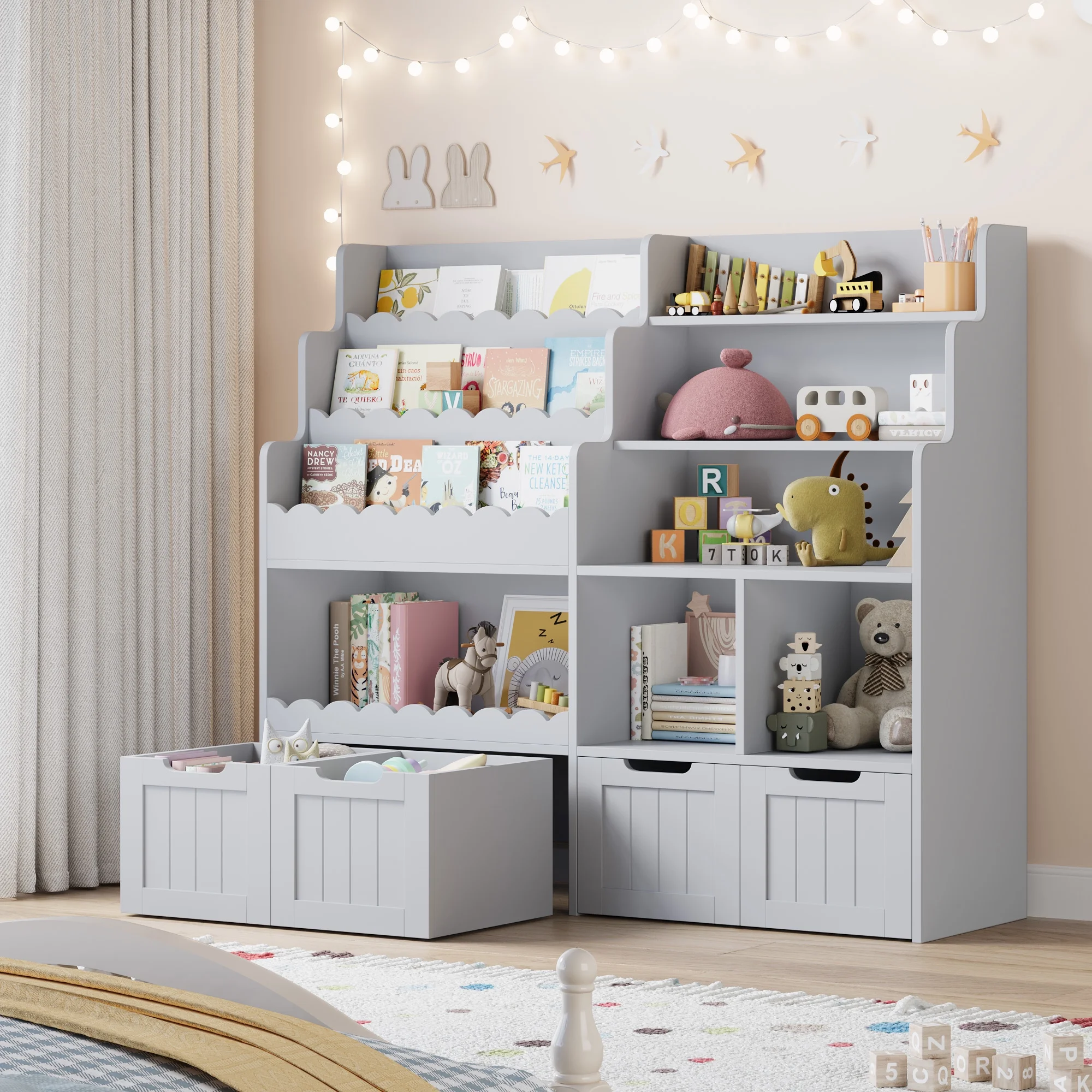 Wavy Cute Style: The edge of the kids bookshelf has a wavy design, which adds childishness and conforms to children's aesthetics. It can attract children's attention and make them more willing to use it. This wooden bookshelf is a perfect gift for birthdays, Christmas, or even a surprise.