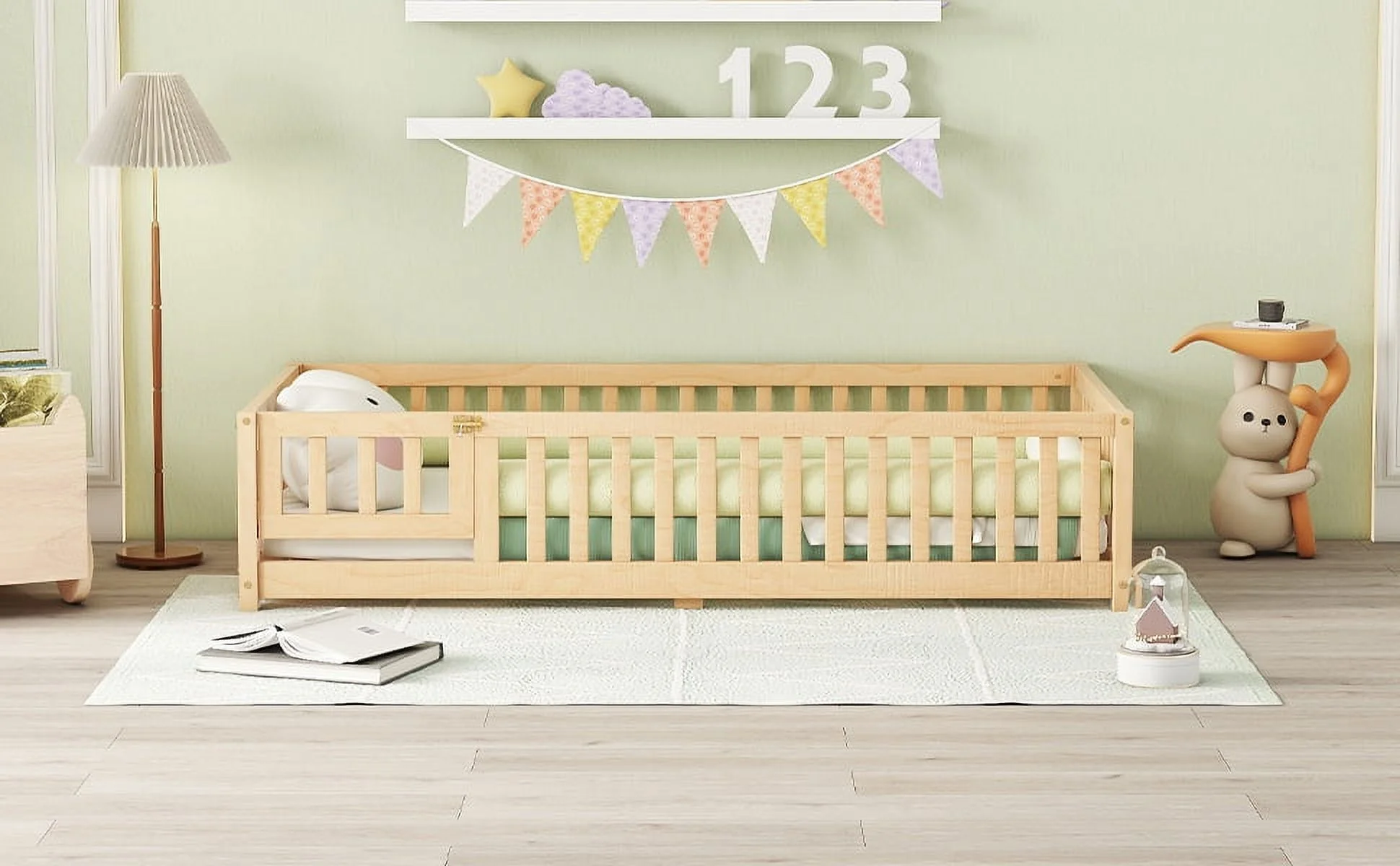 - [Low Profile Design]-The kids twin floor bed with rails around and low profile design closed to the ground keeps the sleeping space safer for kids and explore freely.