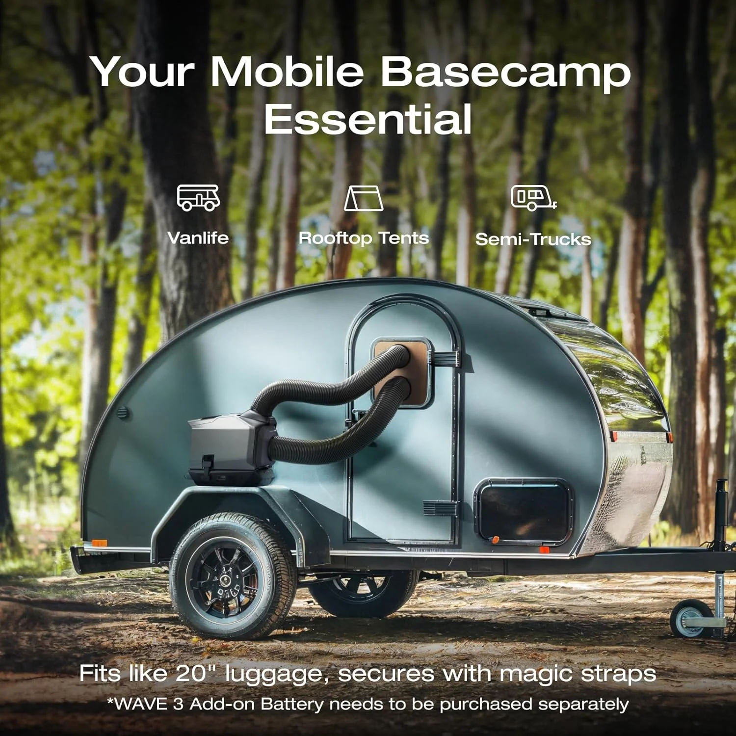 Like previous generations, the WAVE 3 is mainly built for outdoor comfort while you��re camping, off-roading, or setting up in an RV. It��s easy to move, battery-powered, and doesn��t require permanent installation. For tents, rooftop campers, or small trailers, it��s a two-hose system that offers much better efficiency than typical single-hose portables, allowing you to direct intake and exhaust airflow exactly where needed. The WAVE 3 adapts easily to different environments and mounting setups, thanks to accessories like magnetic vent seals and insulated ducting.
