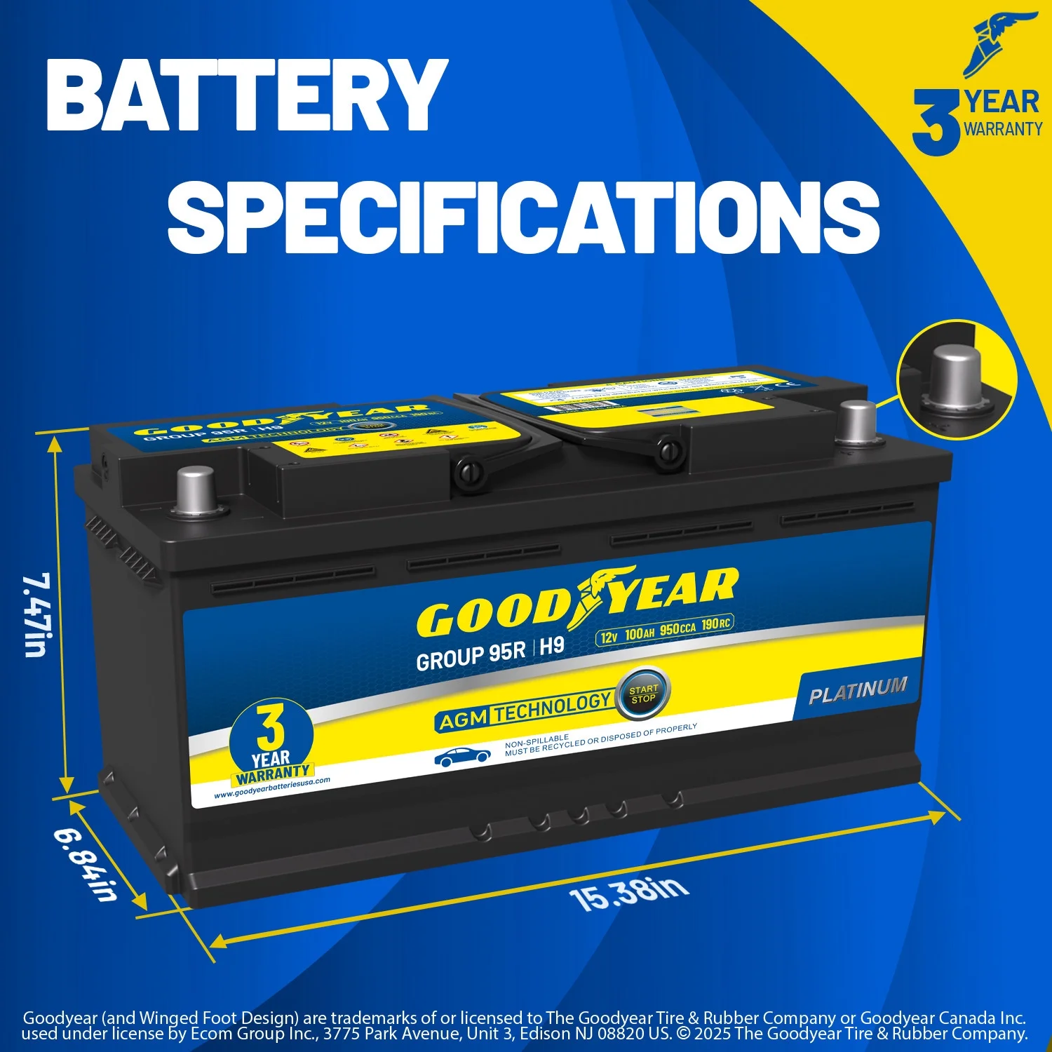 - Extended Performance That Lasts: Engineered for longevity with a 190-minute reserve capacity (RC), providing extended power and up to twice the cycle life of conventional batteries.