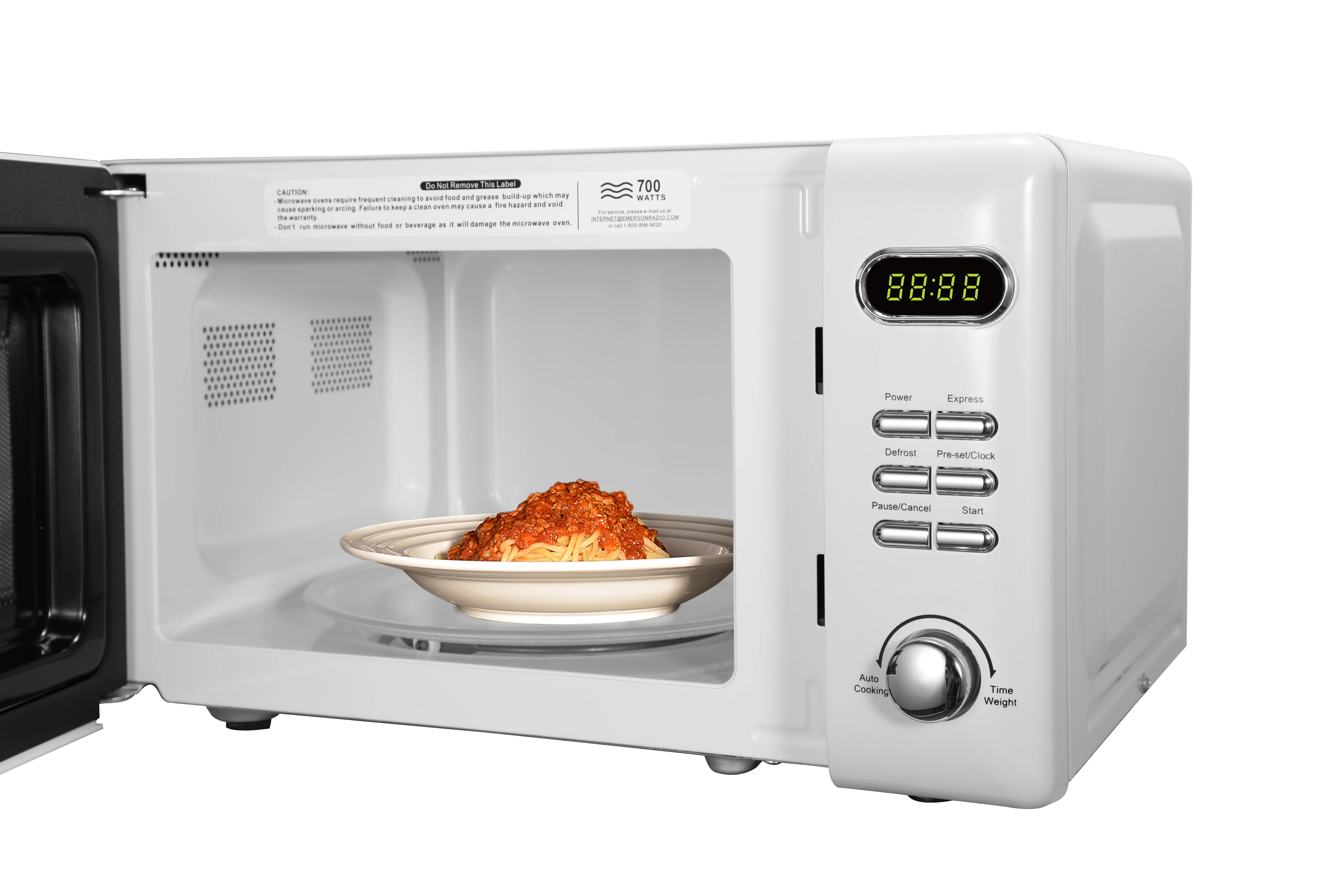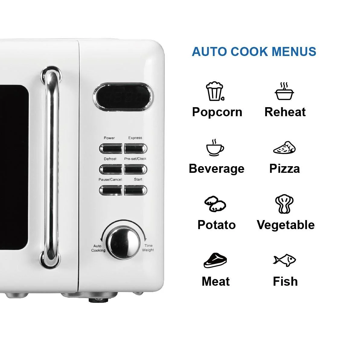 - Pre-programmed Settings for Popcorn, Reheat, Beverage, Pizza, Potato, Vegetable, Meat, and Fish