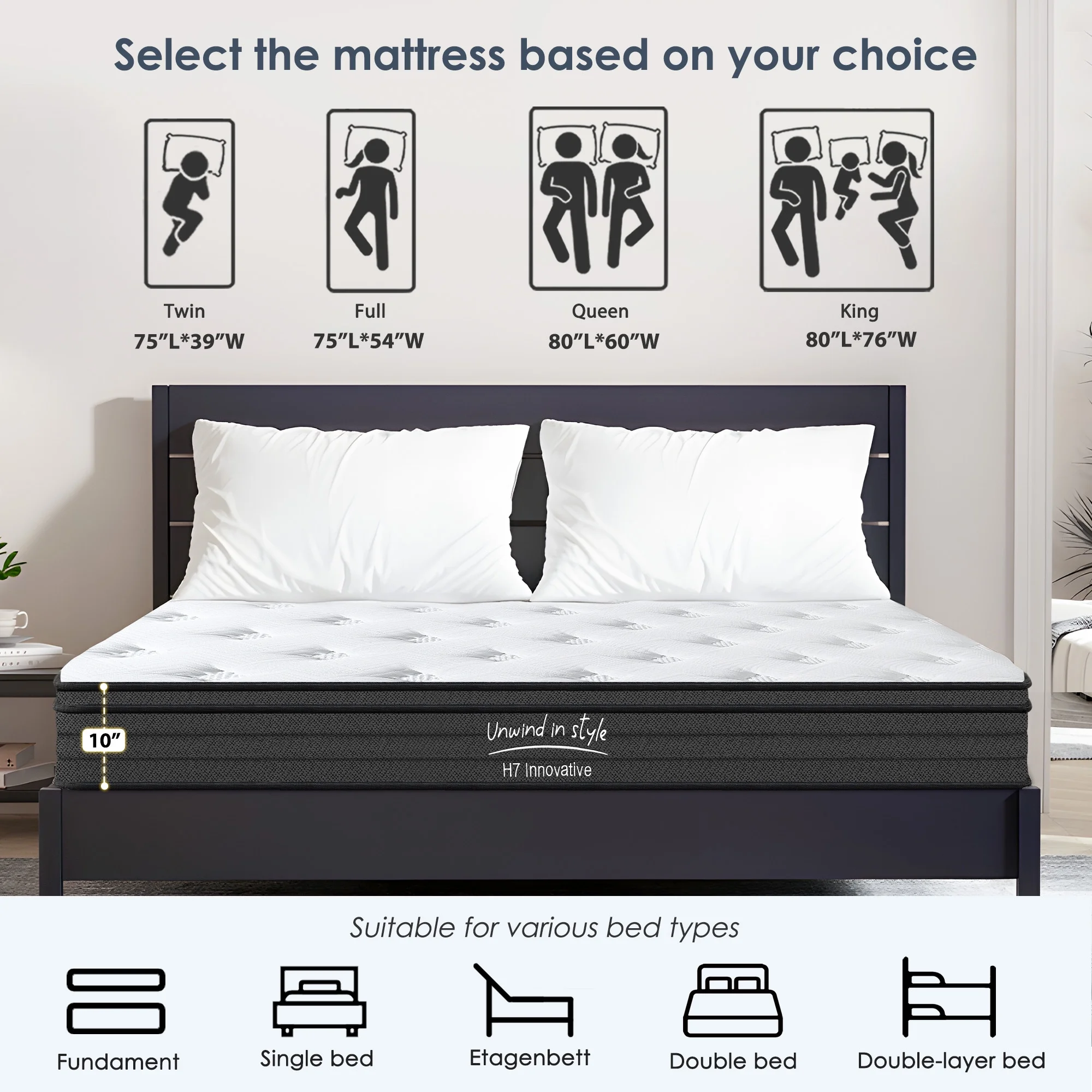 - Medium Firmness: This 10 inch mediumfirm hybrid mattress combines gel memory foam and highdensity support foam for even support from head to toe, accommodating a variety of sleep preferences