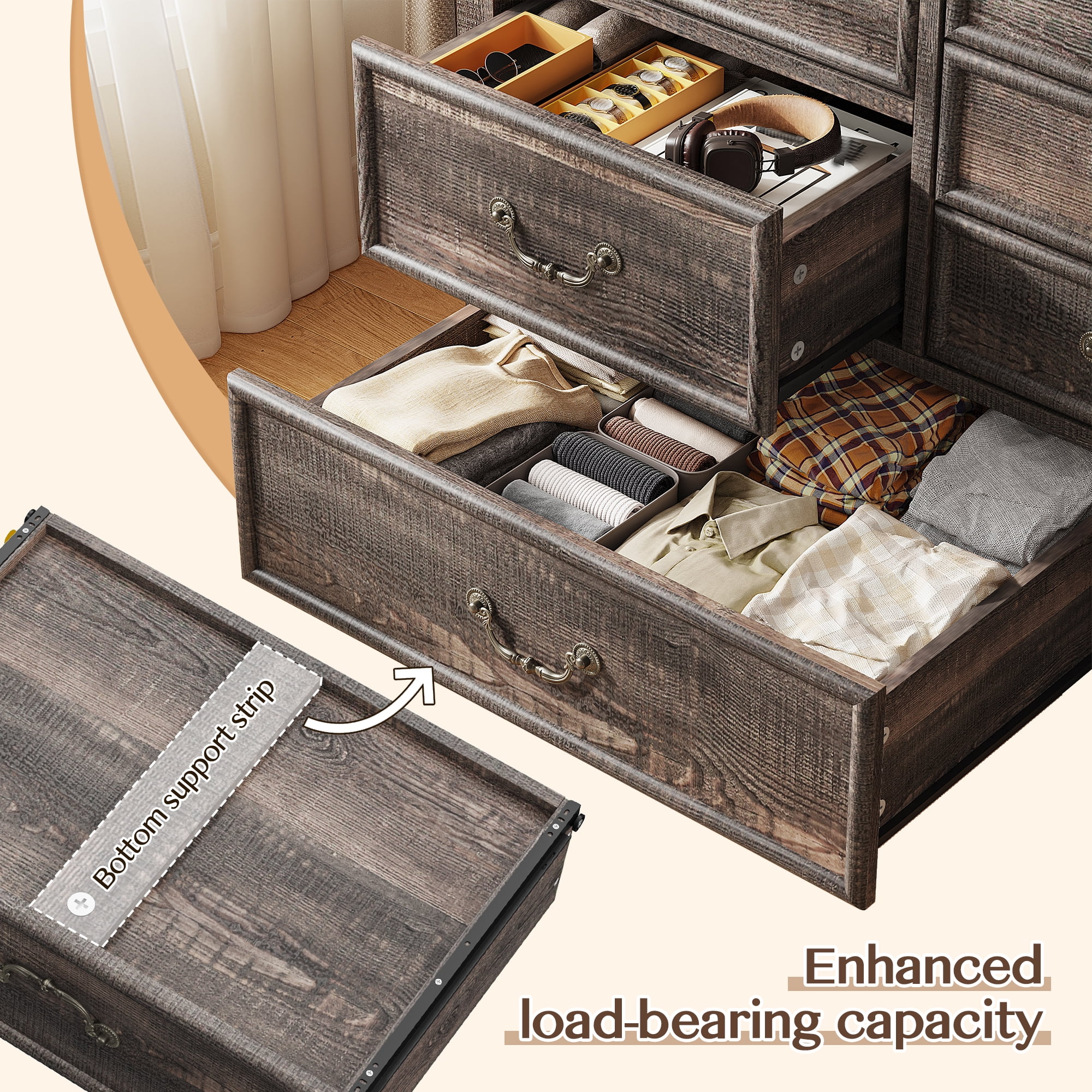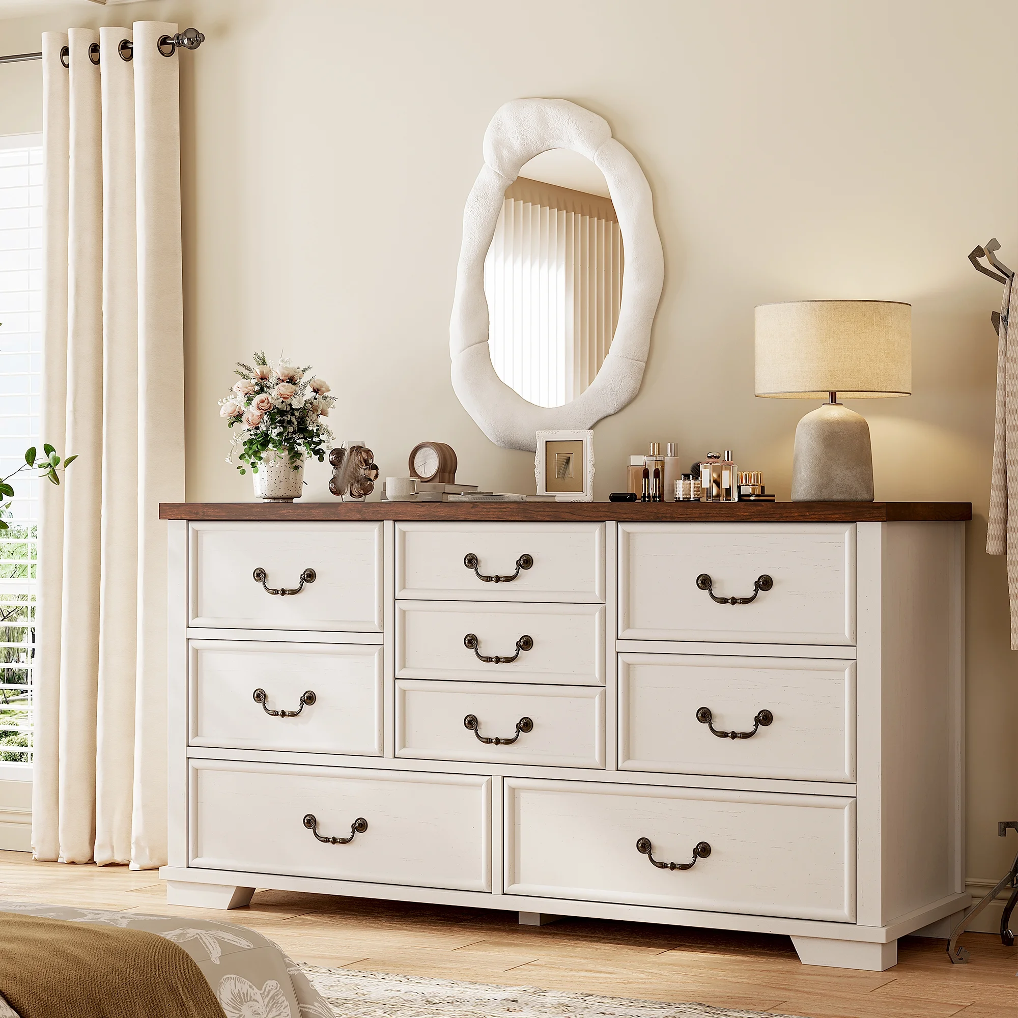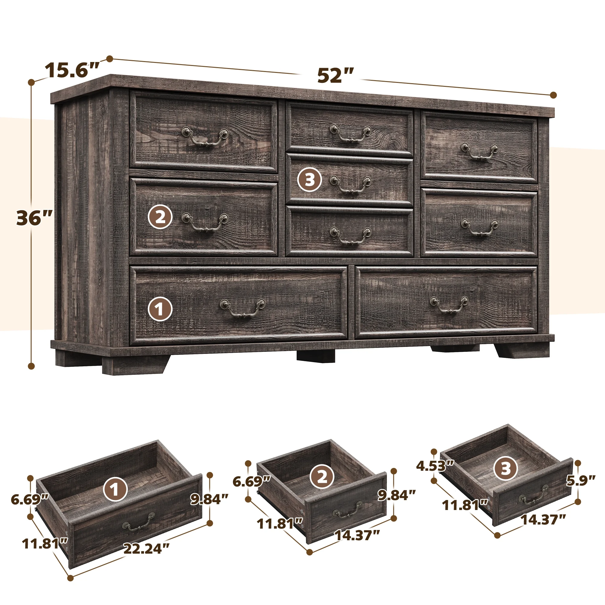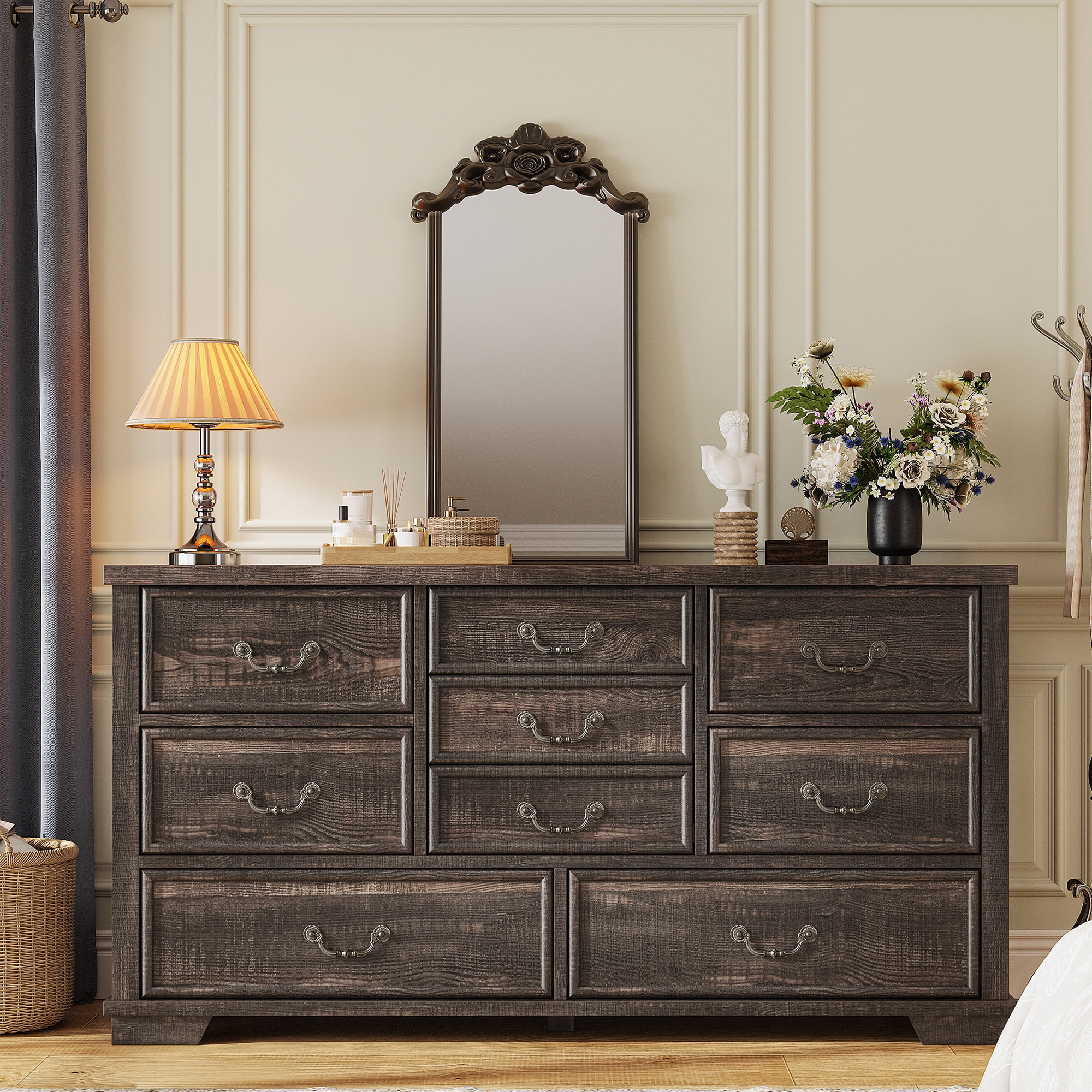- ???Wooden 9 Drawers Dresser???Differently sized drawers offer the flexibility to neatly store objects of various sizes, from small accessories to larger items, ensuring that everything has a perfect place.