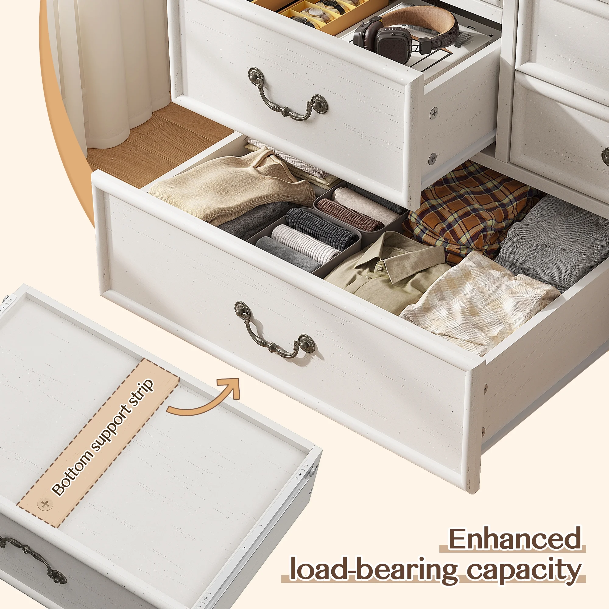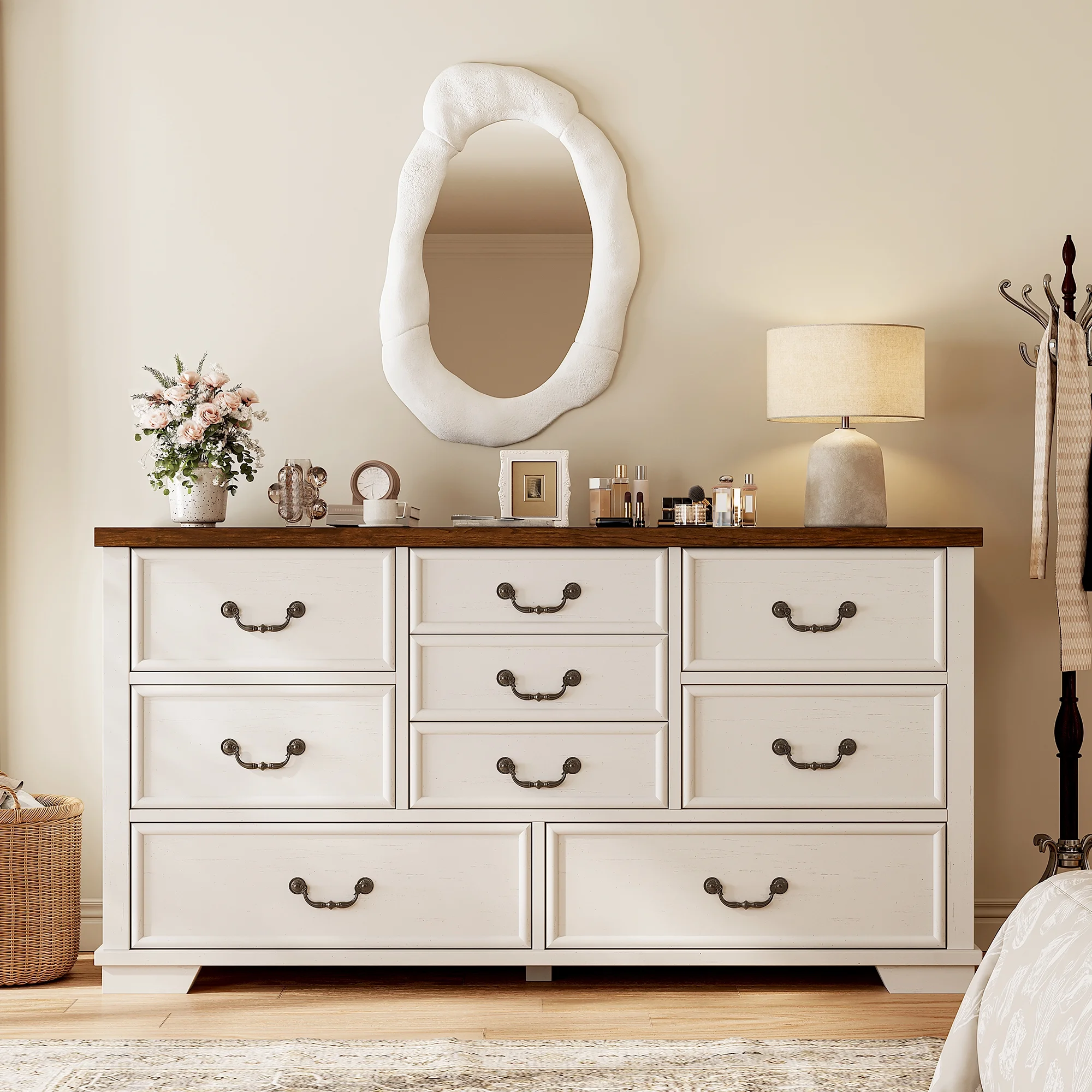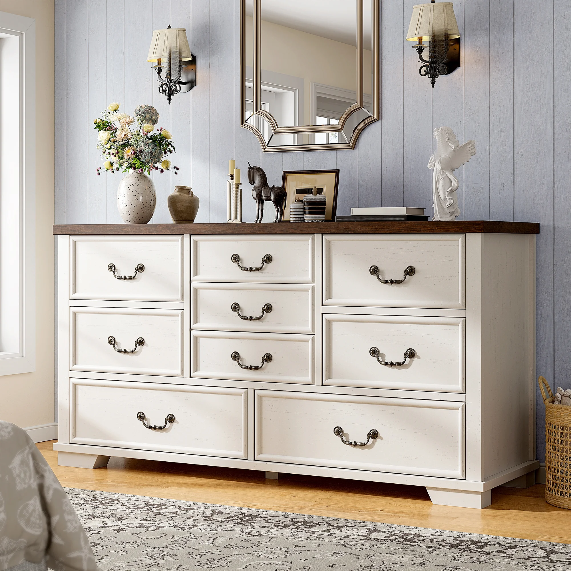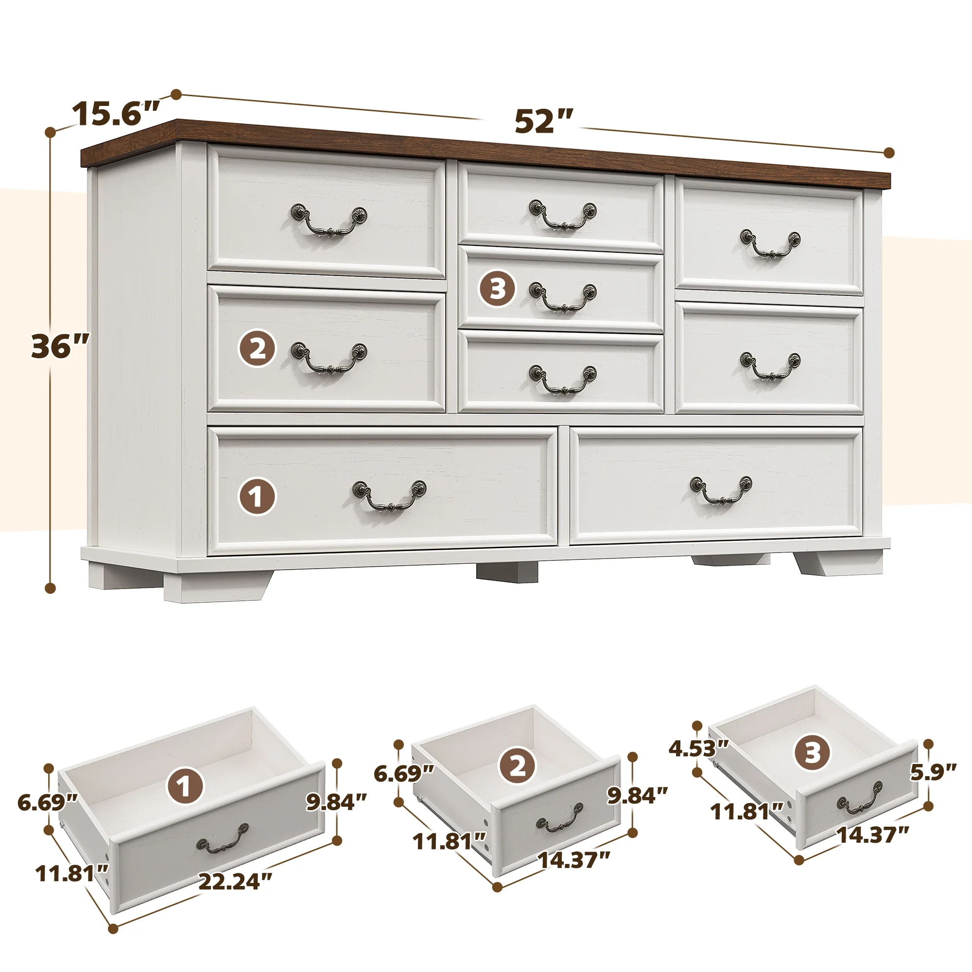 - ???Wooden 9 Drawers Dresser???Differently sized drawers offer the flexibility to neatly store objects of various sizes, from small accessories to larger items, ensuring that everything has a perfect place.