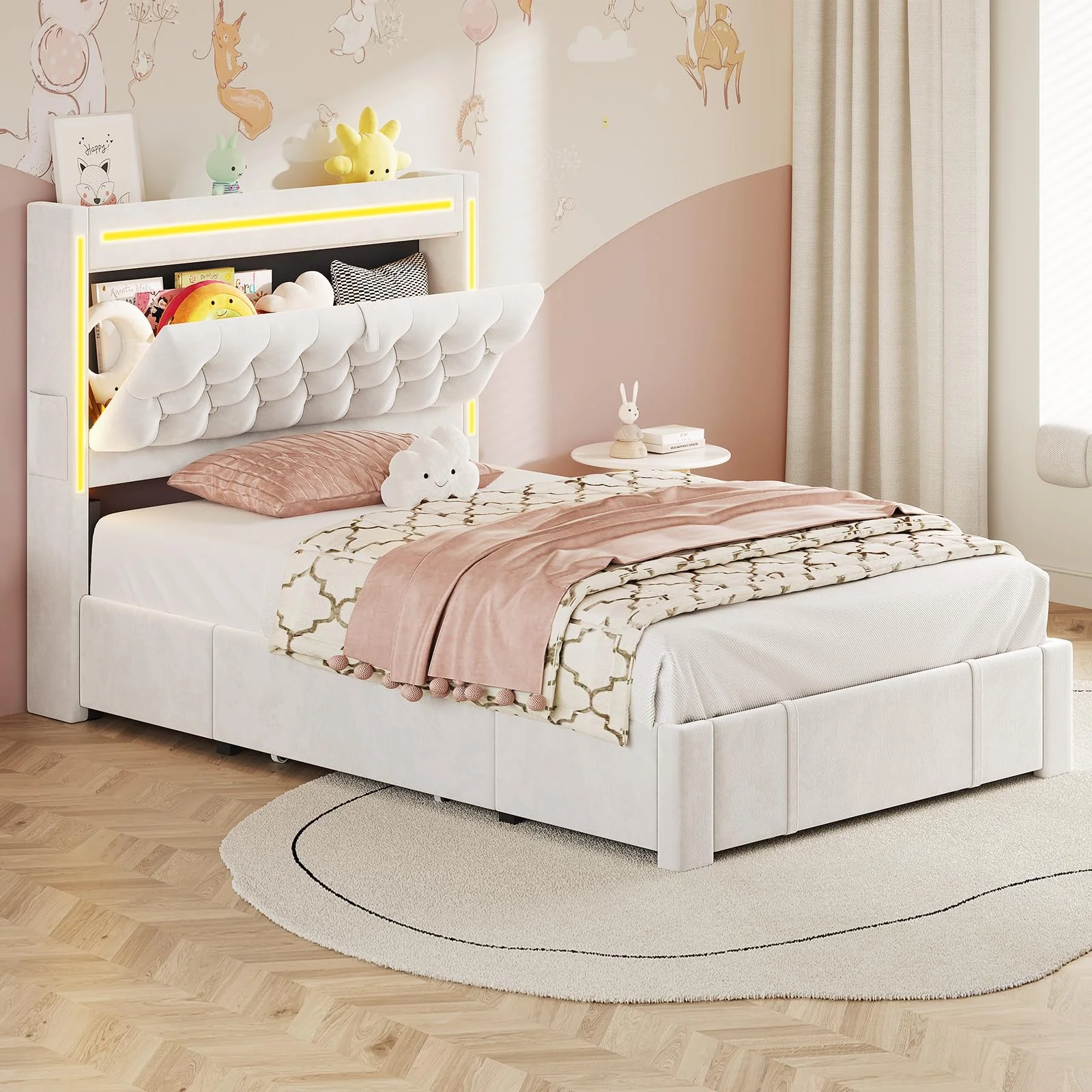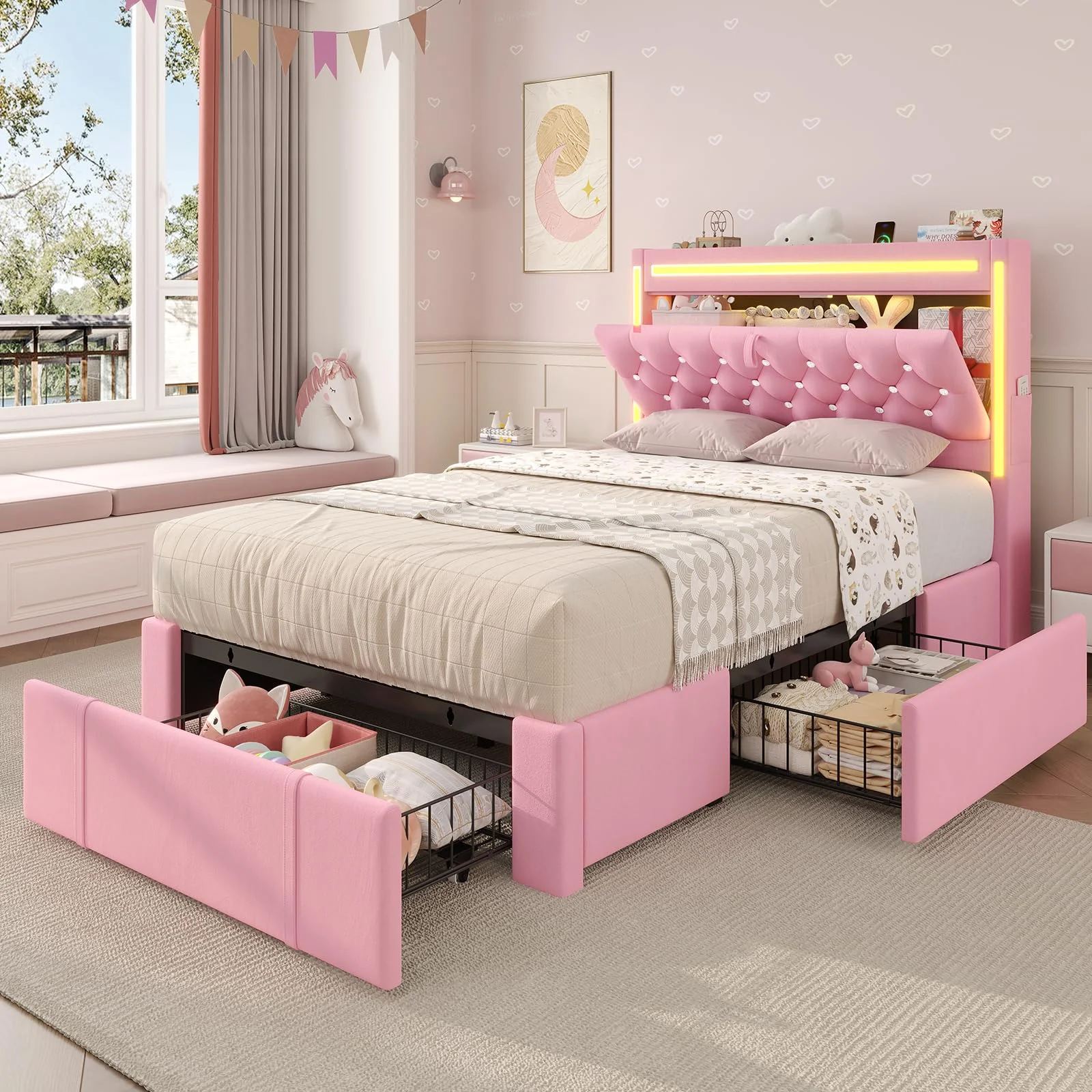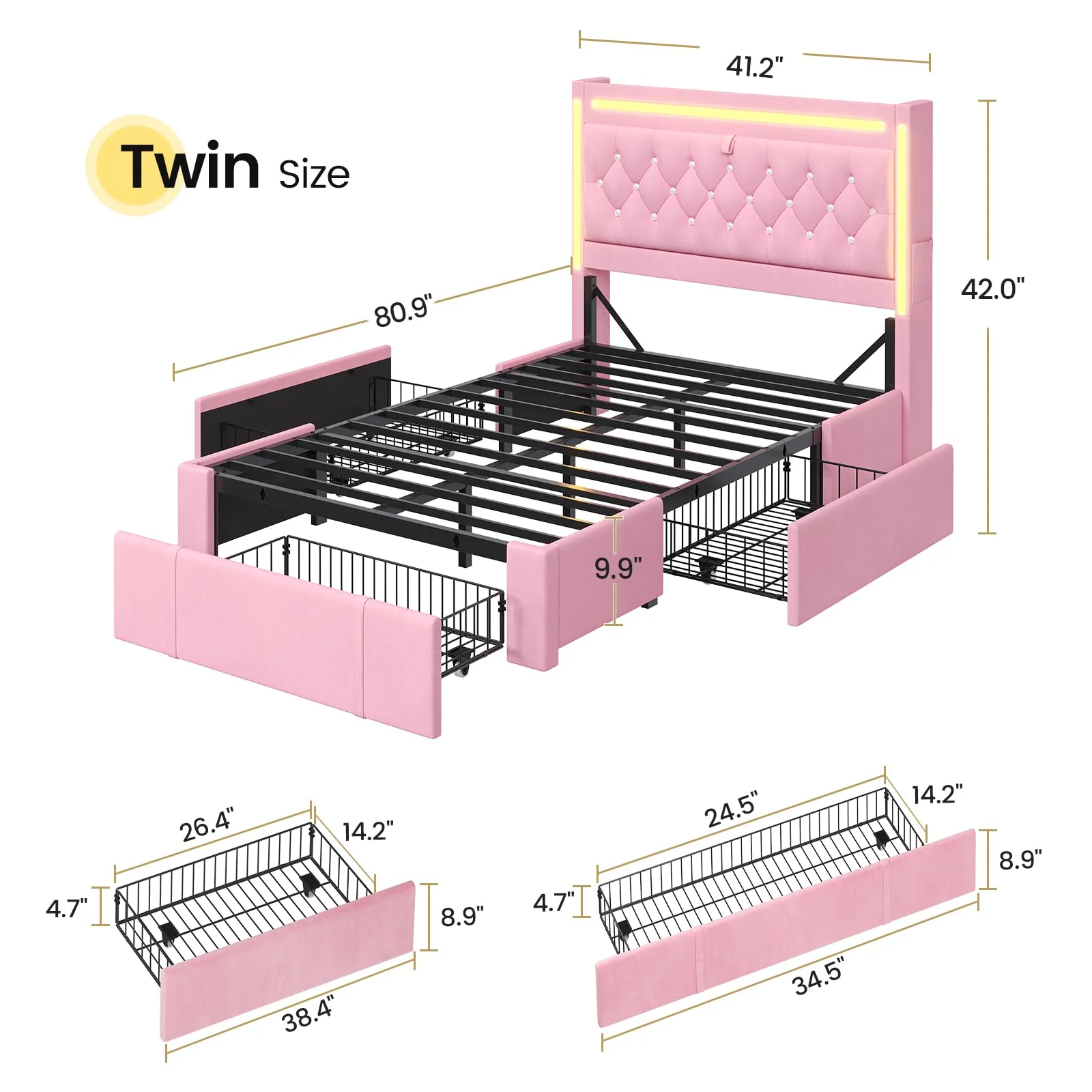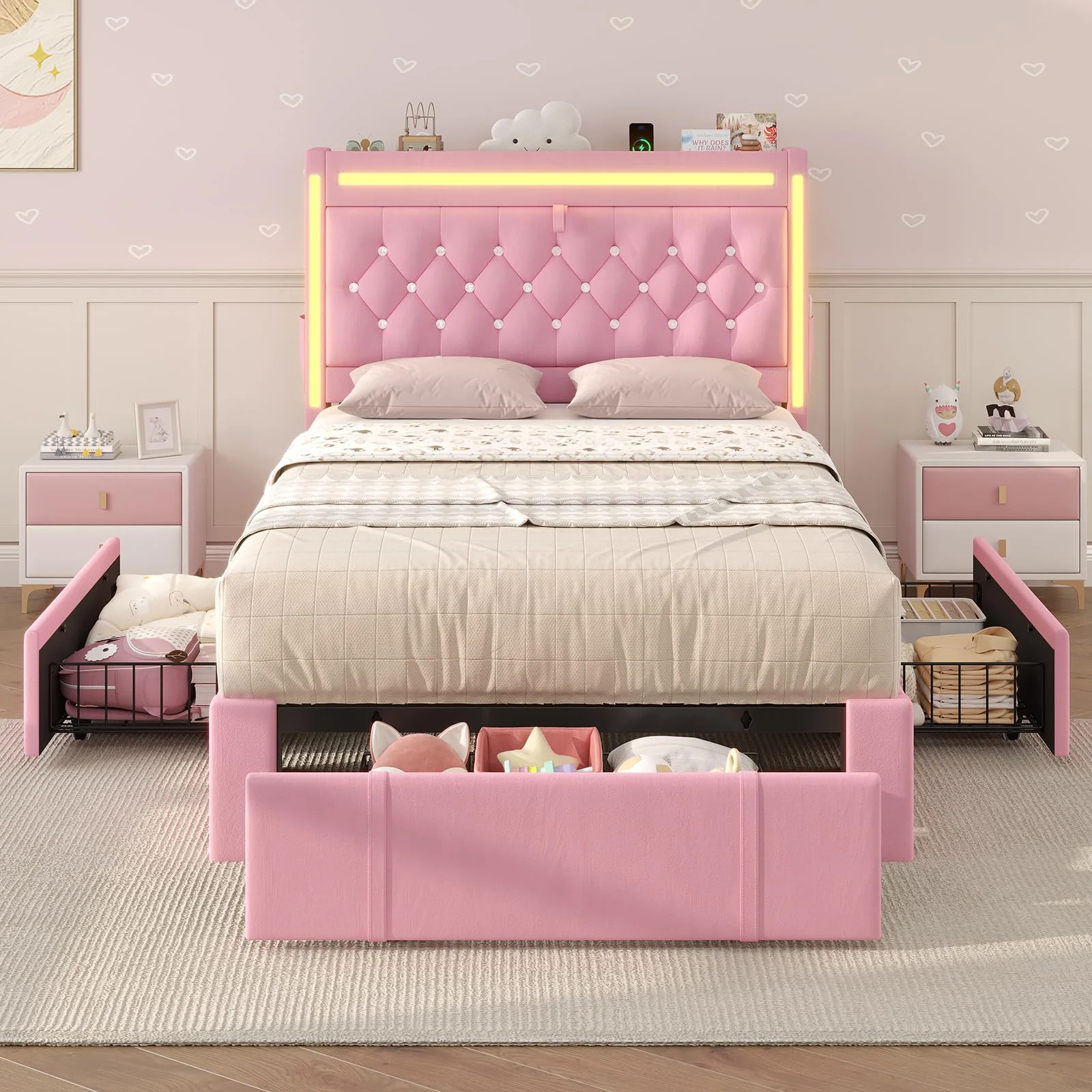 - ???RGB Lighting??? This platform bed frame features three built-in light bars on the storage headboard. Set the mood just how you like it.