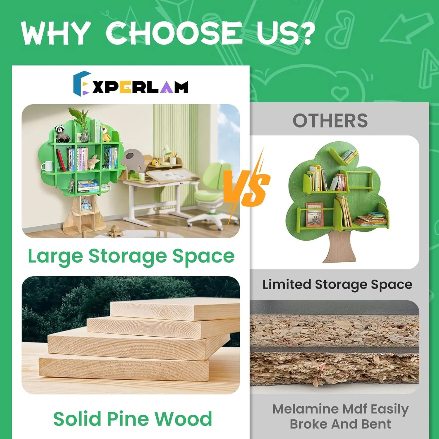 - Quality Material: This kids bookshelf is made of high-quality wood material, which is more durable and sturdy. Sleek edges and rounded corners minimize the risk of bumping or scratching.