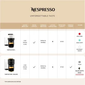 - SIGNATURE COFFEES AND ESPRESSOS: Vertuo Pop Deluxe LIMITED-EDITION offers a variety of coffee formats in 5 sizes, including 5, 8, 12oz coffees, as well as single and double espressos brewed hot or over ice.