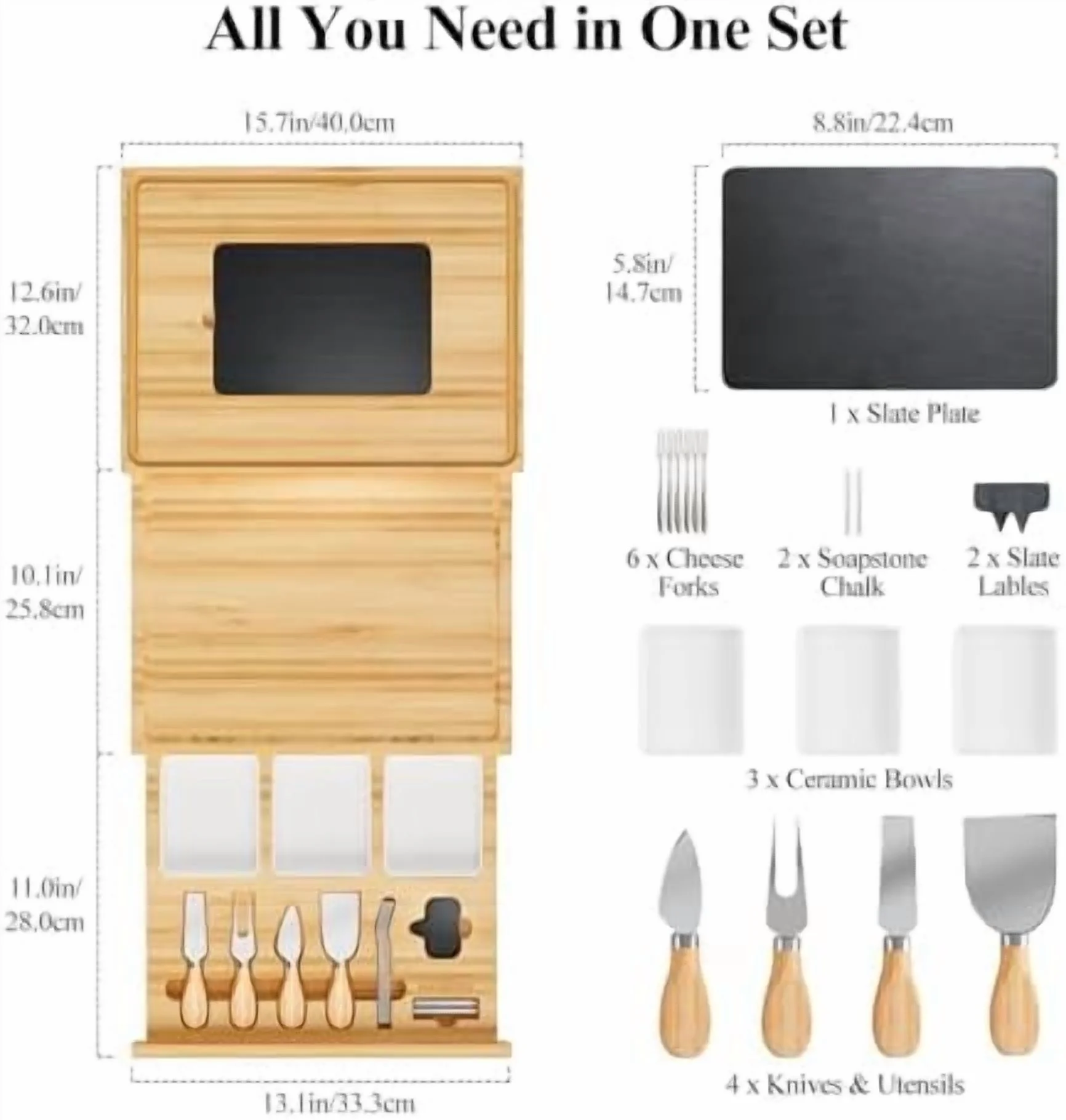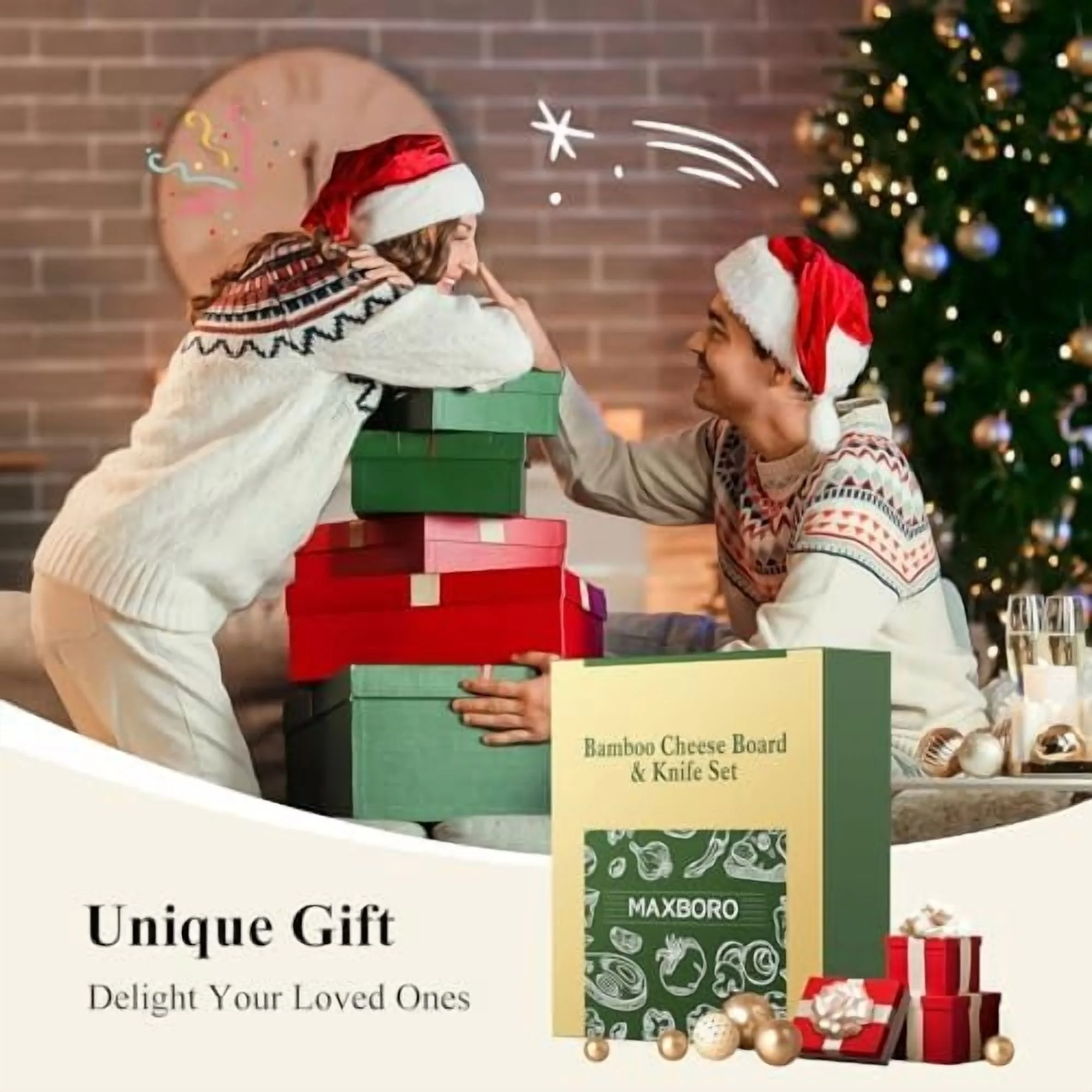 Extra Large 33.7x15.7 in Charcuterie Boards Gift Set, 100% Bamboo Cheese Board and Knife Set, Cool Meat Cheese Platter Tray, House Warming Gifts New Home, Ideas for Women Mom