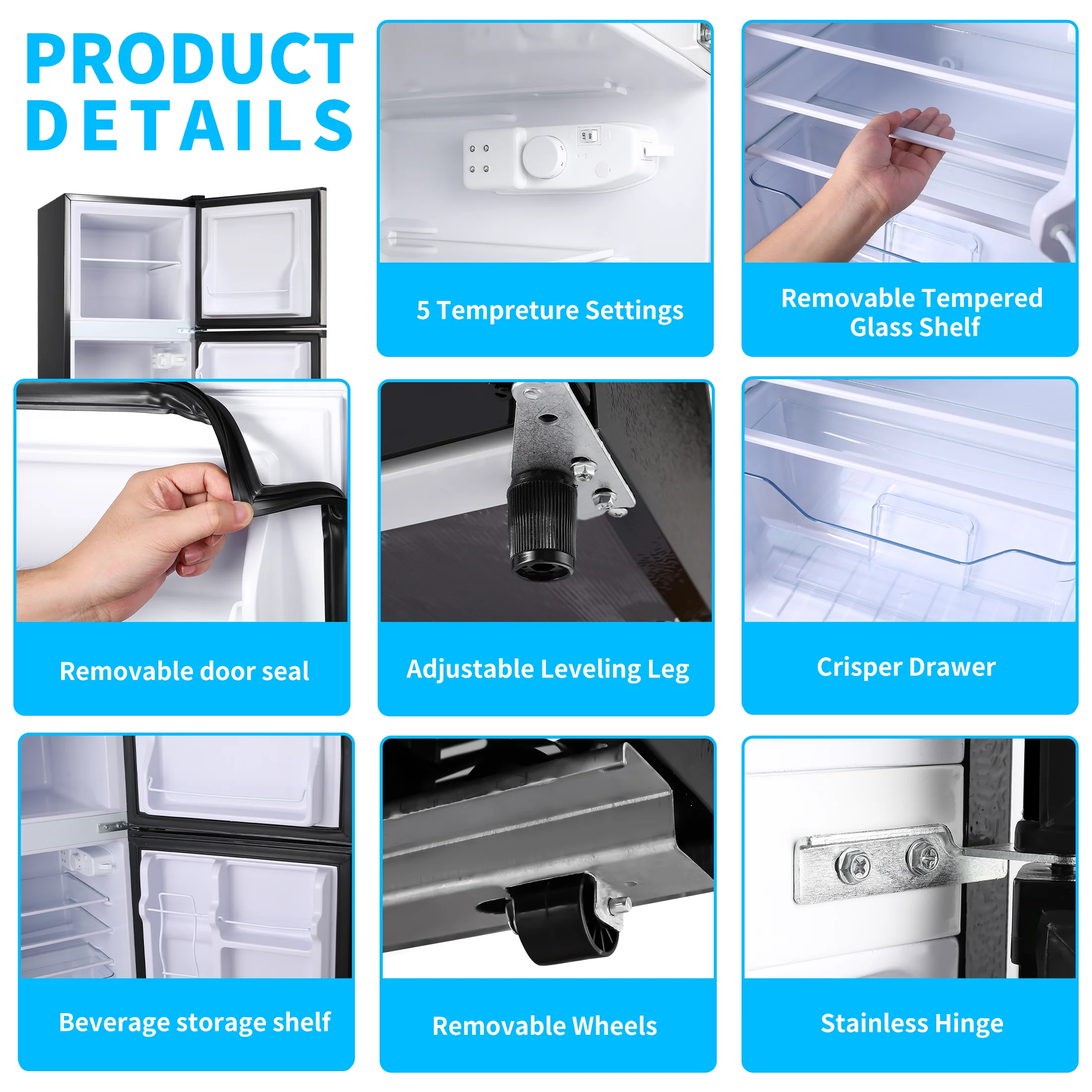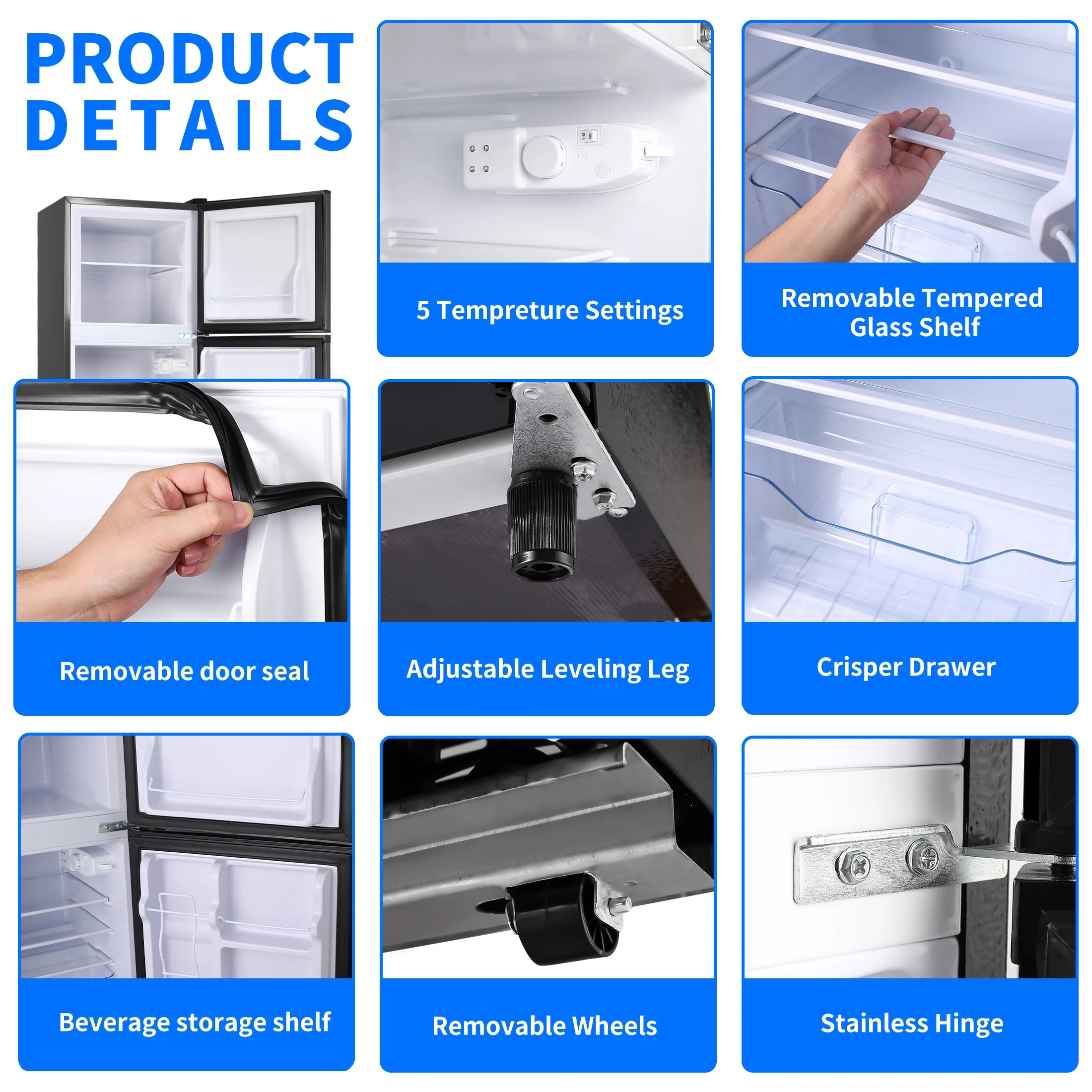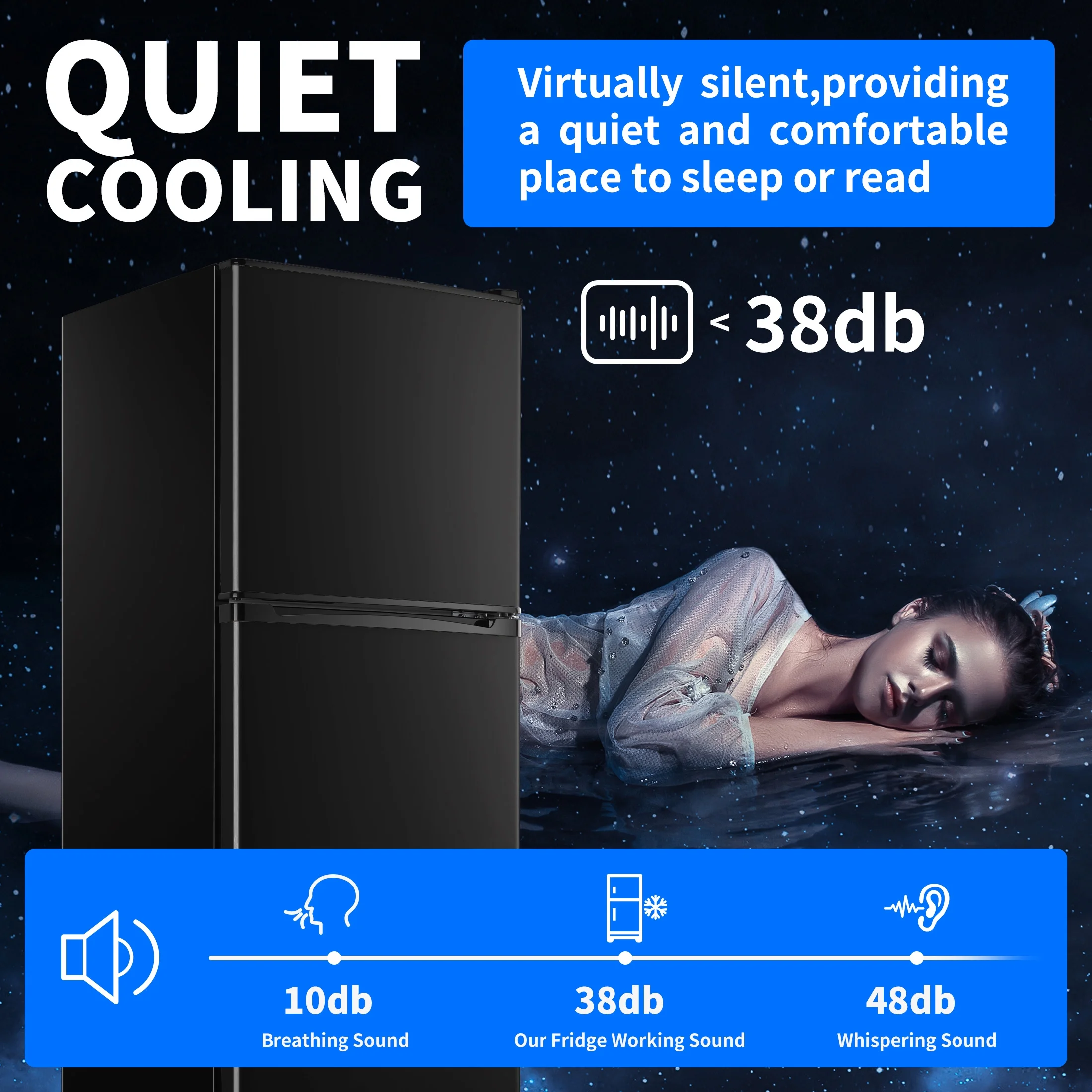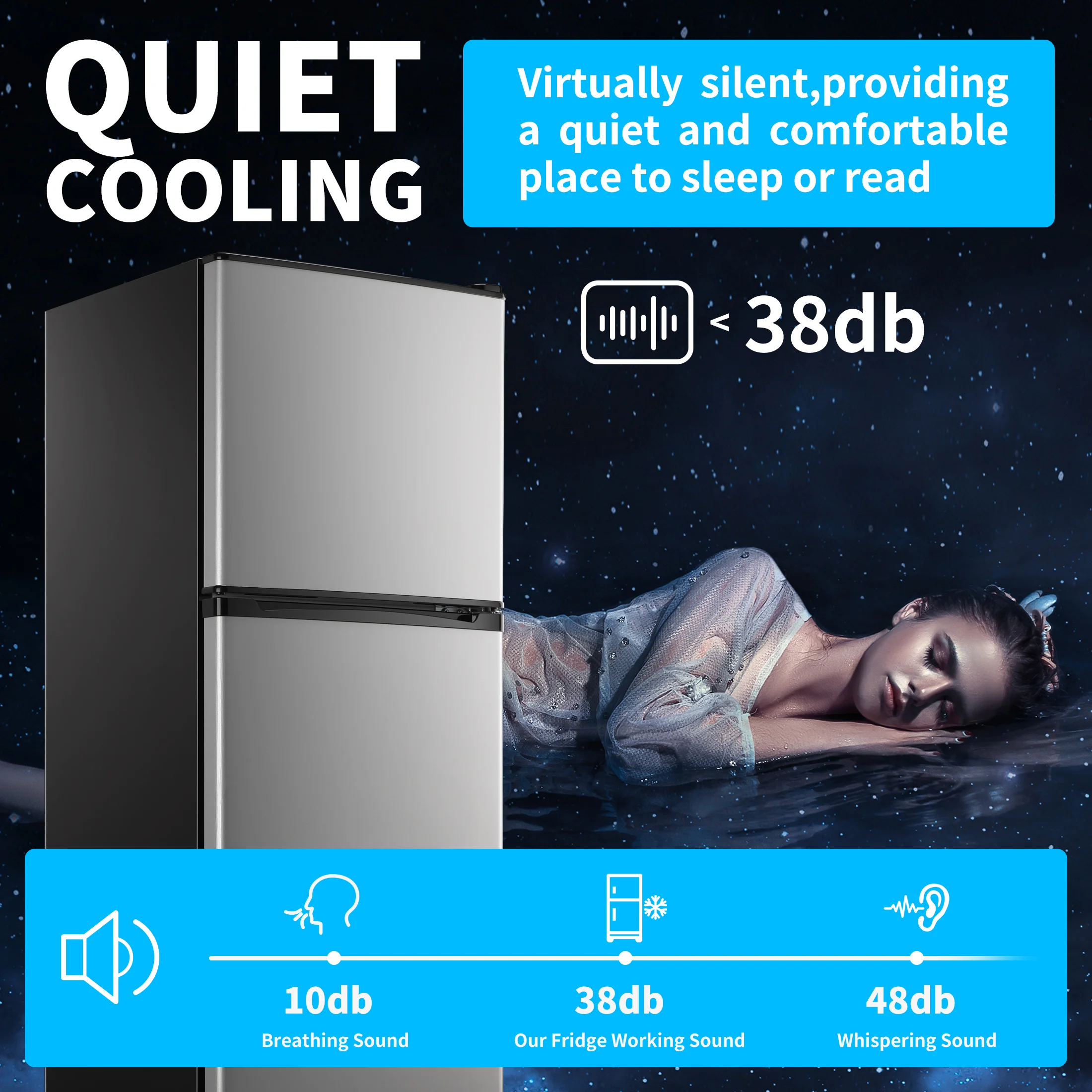 - Mini refrigerator with freezer adopts advanced 3D refrigeration technology and supports 7 temperature settings. From0.4?��F to 50?��F,there are 5 variable temperature settings can be manually switched between as per your needs The detailed temperature setting allows you to adjust the temperature of small fridge for bedroom according to your different needs. Small refrigerators for bedroom is also equipped with a powerful compressor, and it does not cause too much noise while operating efficiently, so you don't have to worry about noise at all.