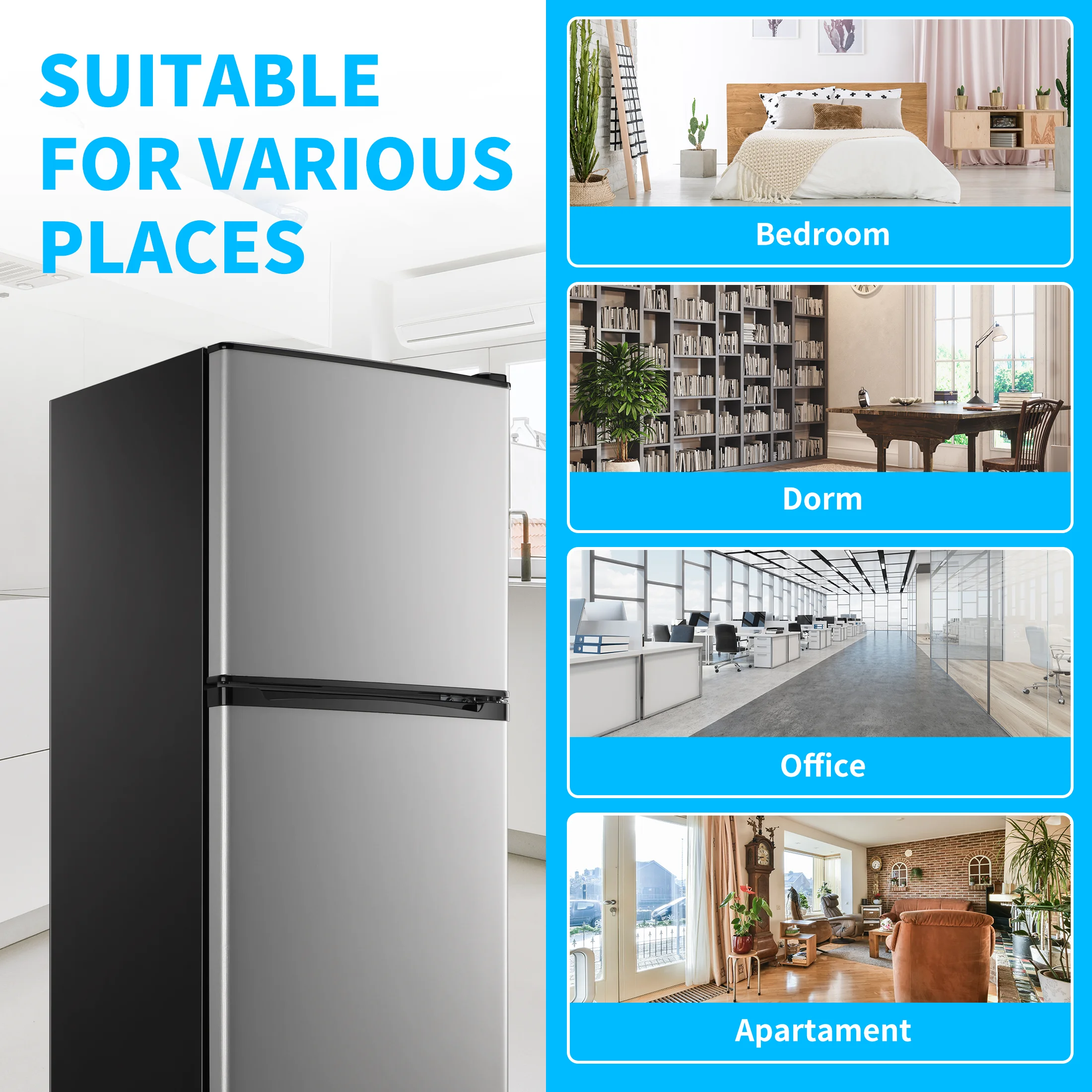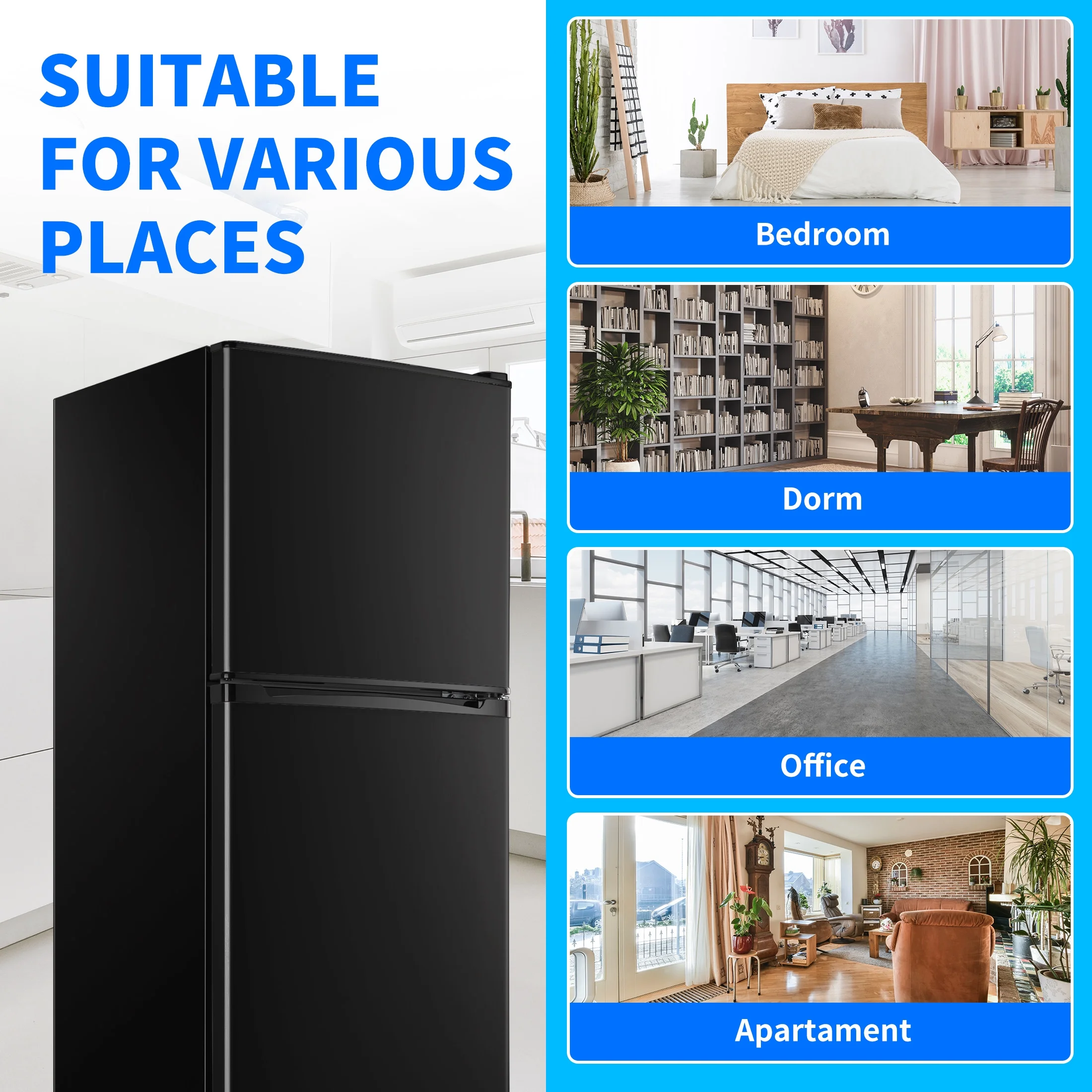 - The design of the reversible door makes your dorm fridge suitable for a variety of positions in the room, giving you more choice in the direction of opening the door. The adjustable feet allow dorm refrigerator to be placed horizontally on the ground and prevent the ground from being wet. Small refrigerator for office is very suitable for family/dormitory/bedroom/office/apartment/apartment/dormitory ect.