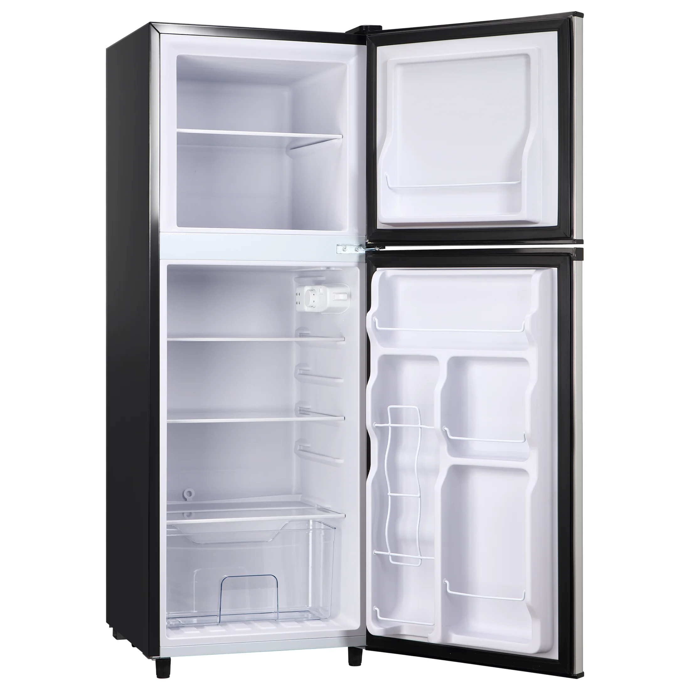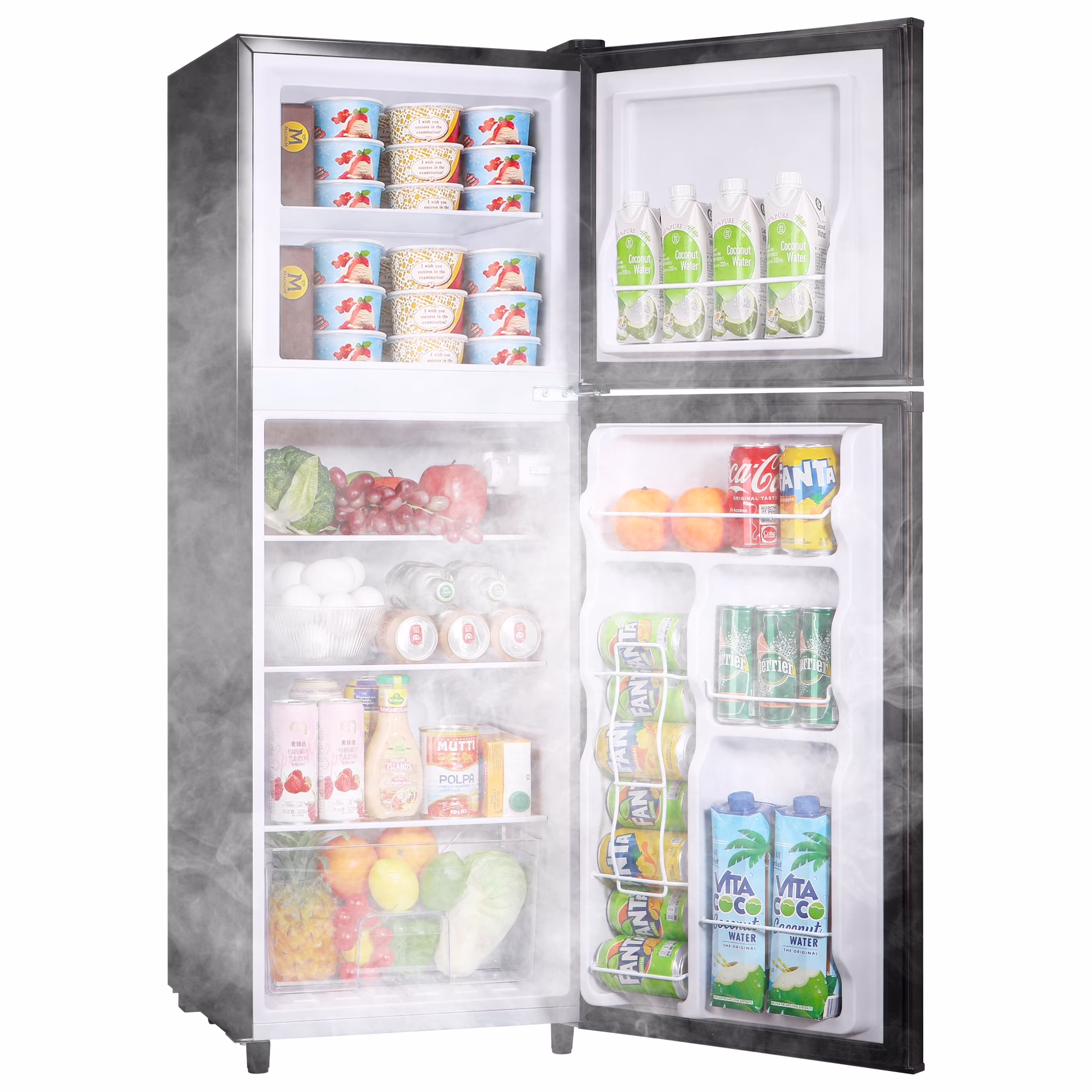 - Euhomy designed LED lights inside dorm fridge with freezer Even if you turn on small refrigerator at night, you can still see the inside of the refrigerator very clean. The multi-layer shelves and crisper drawer of the compact refrigerator with freezer completely help you solve the problem of food odor. You can put them in shelves or crisper drawer according to the type or size of the food. The shelves are adjustable. Everything is to help you have more choices.