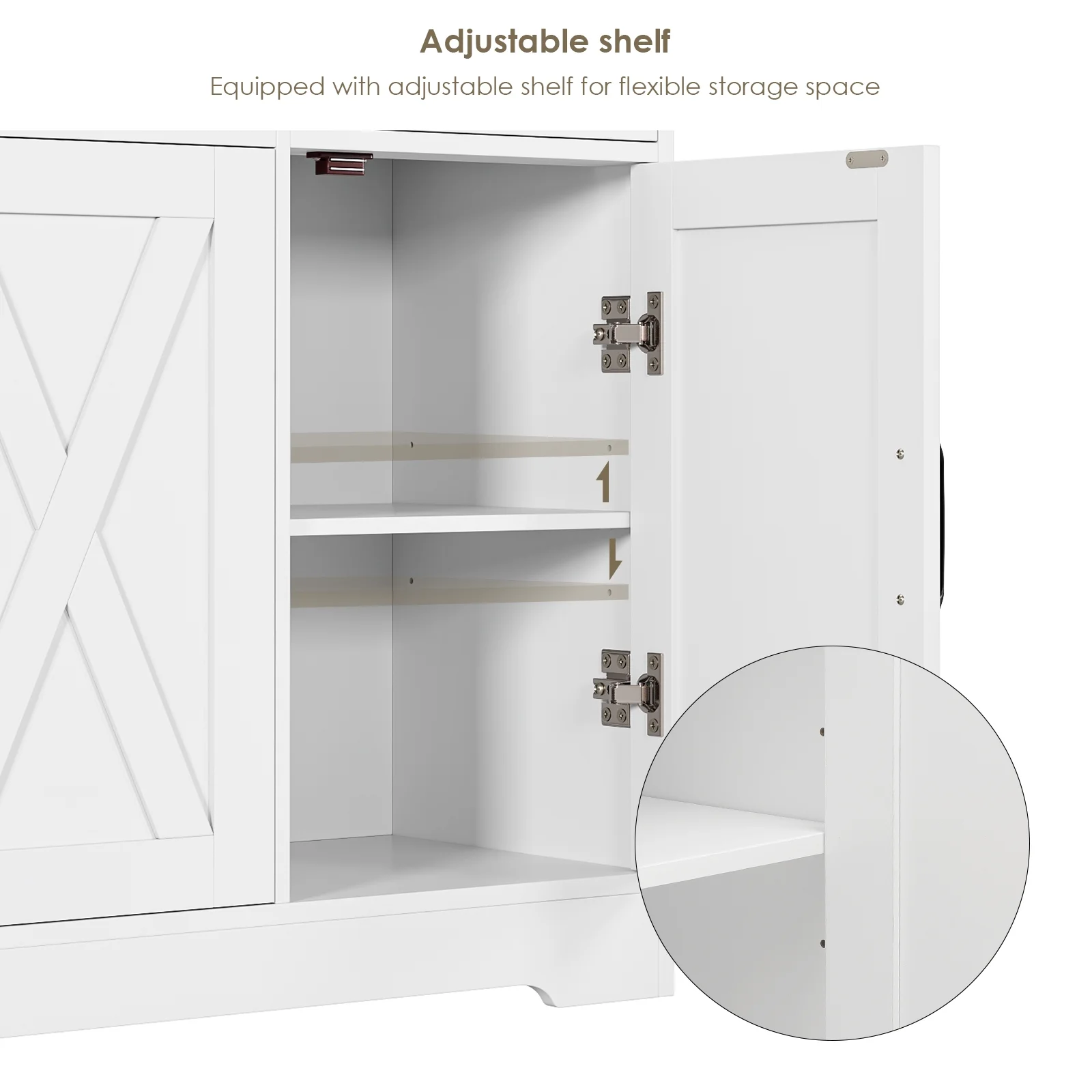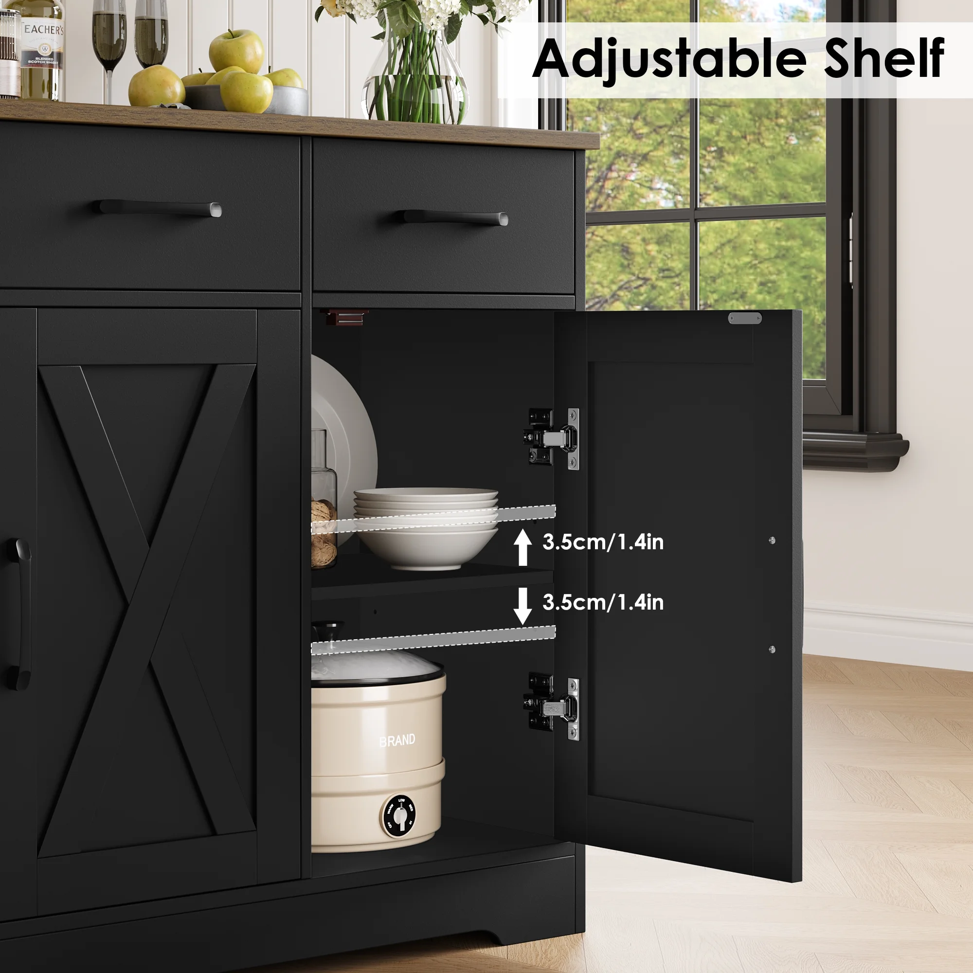 - ???With Adjustable Shelf???One inner shelf of the sideboard buffet can be locked in 3 fixed levels, which greatly allows you to freely change the space layout according to the size of the items. Or you can remove the shelves to create more storage space. Provides clever space for cups, extra cutlery and other essentials.