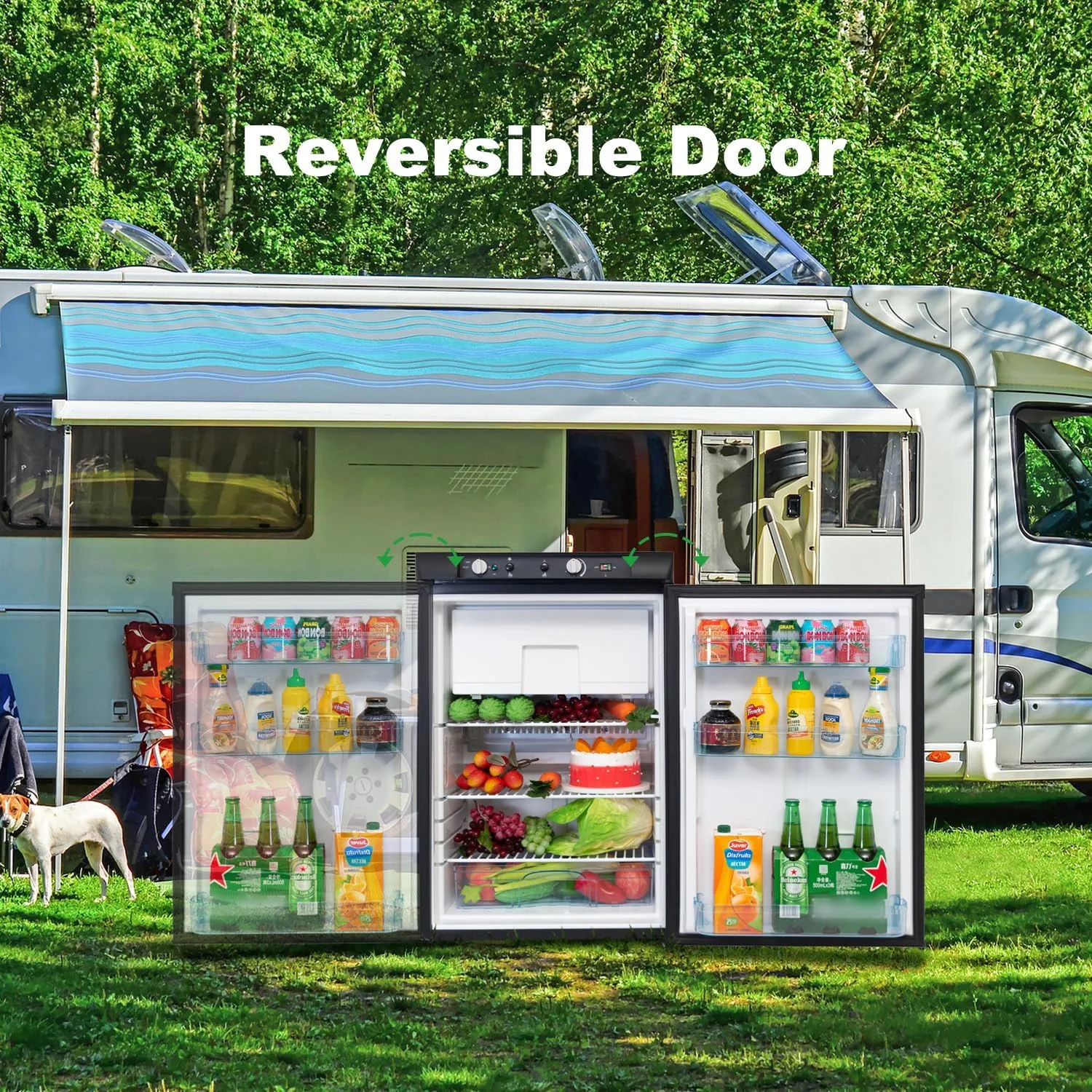 ???Large Capacity RV Refrigerator???3.5 cu. ft. capacity with 3 cu. ft refrigerator and 0.5 cu ft freezer. Product dimensions (W*D*H): 20.5*22.2*32.8 inches. This refrigerator can provide food for family living or traveling.