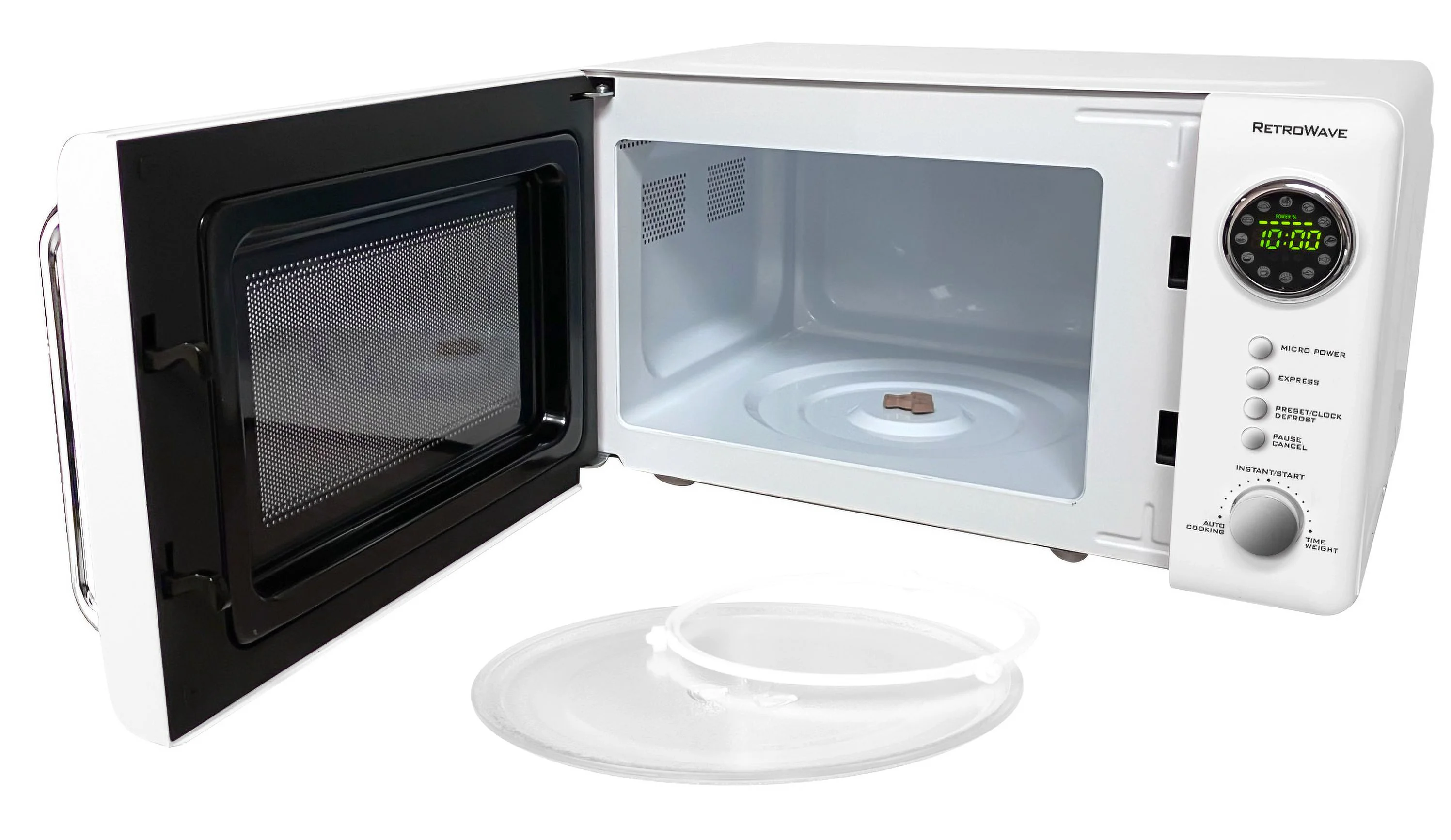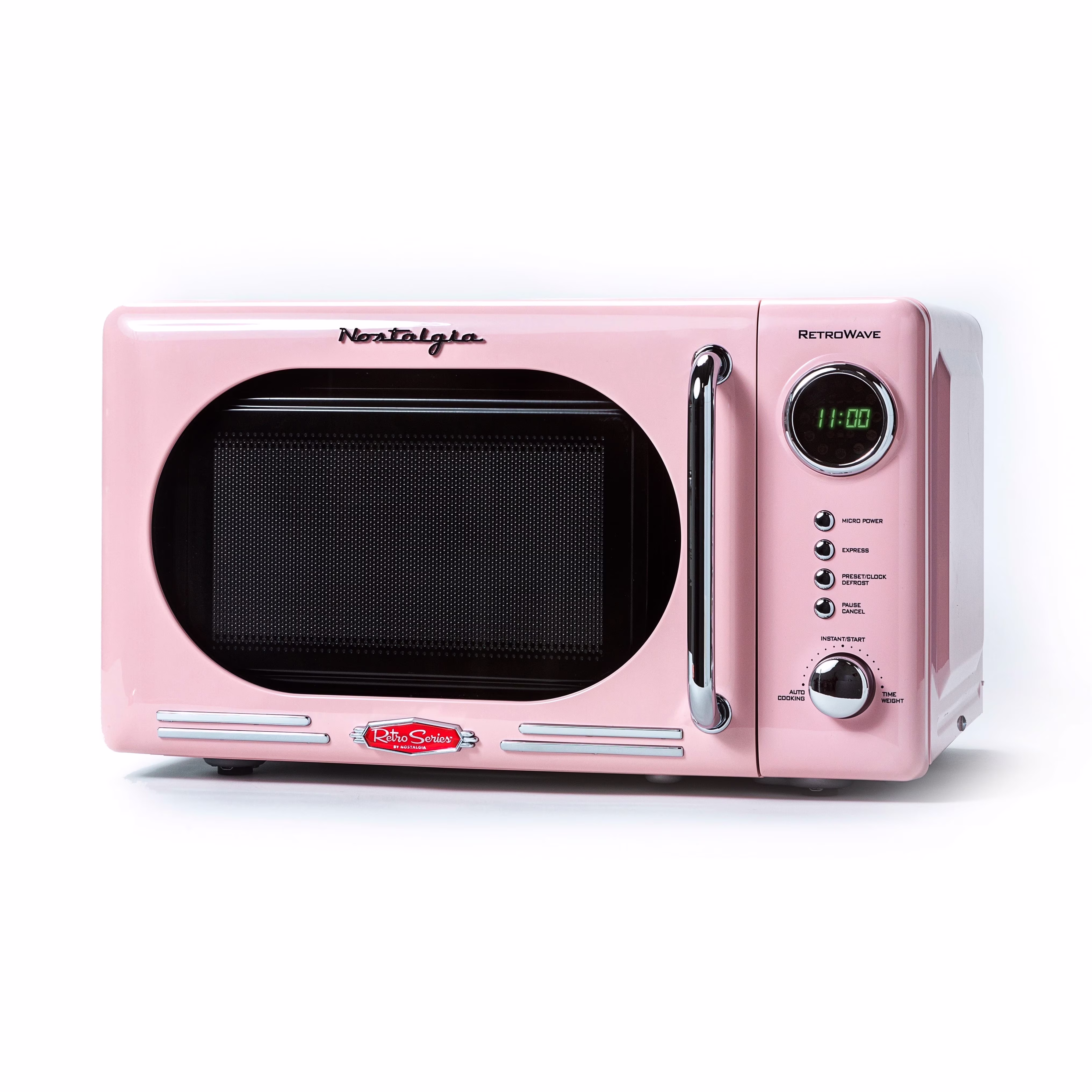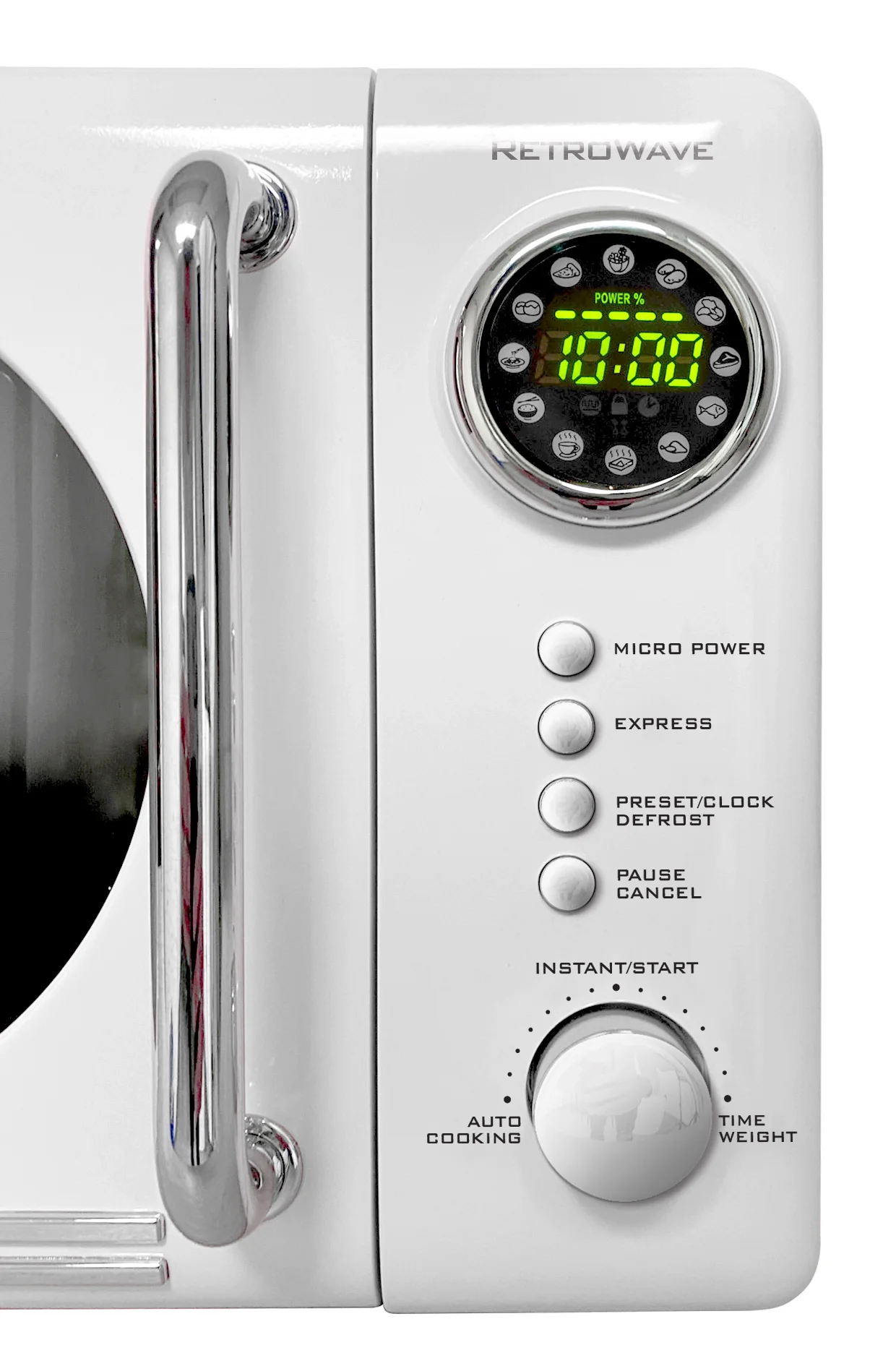 - Retro Accents: A sleek chrome door handle, control panel and accents add fun and flair to this unique retro-styled appliance