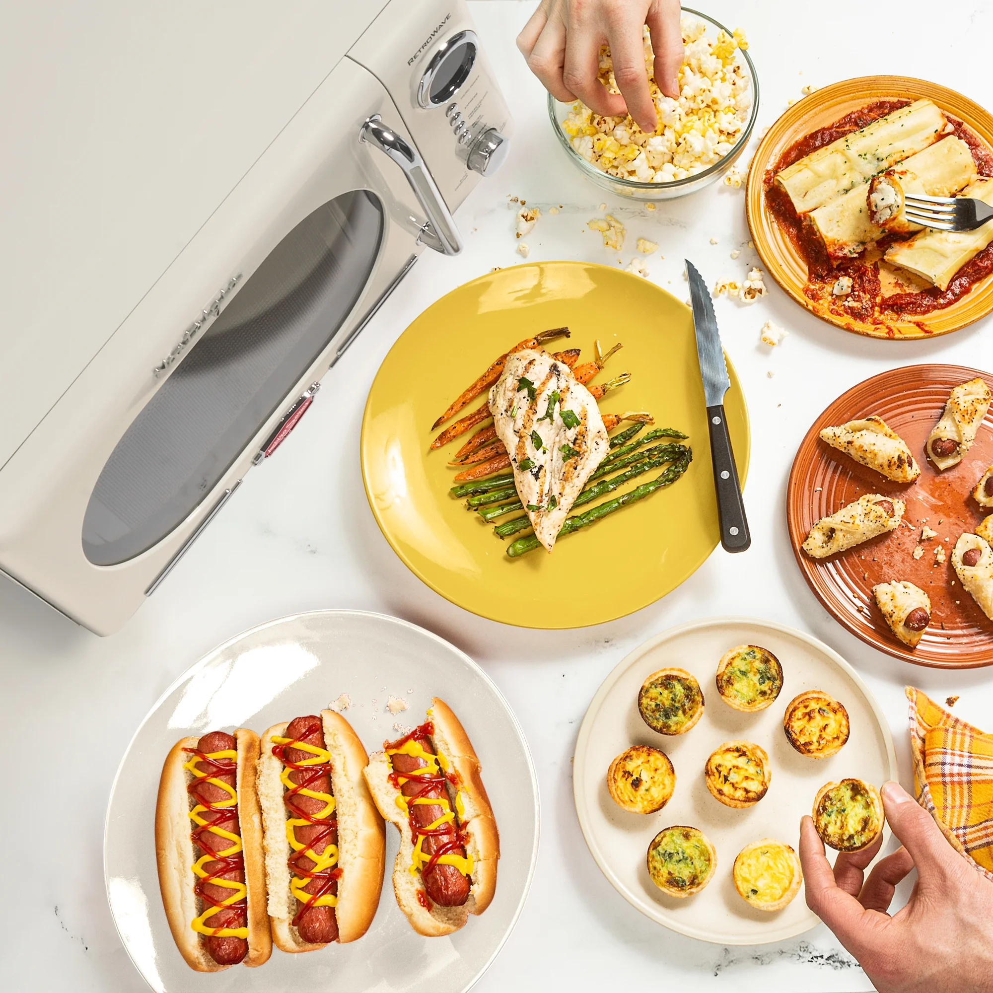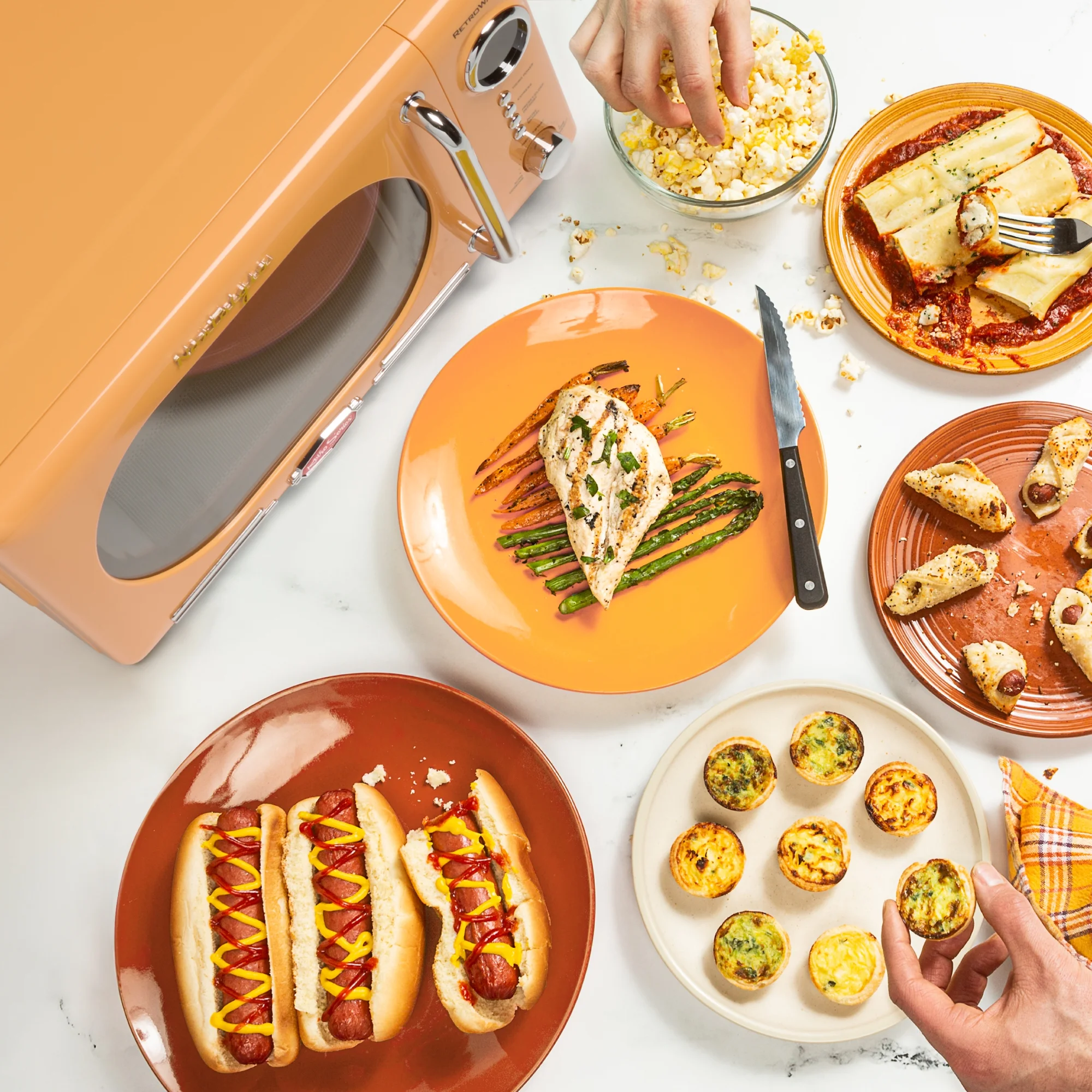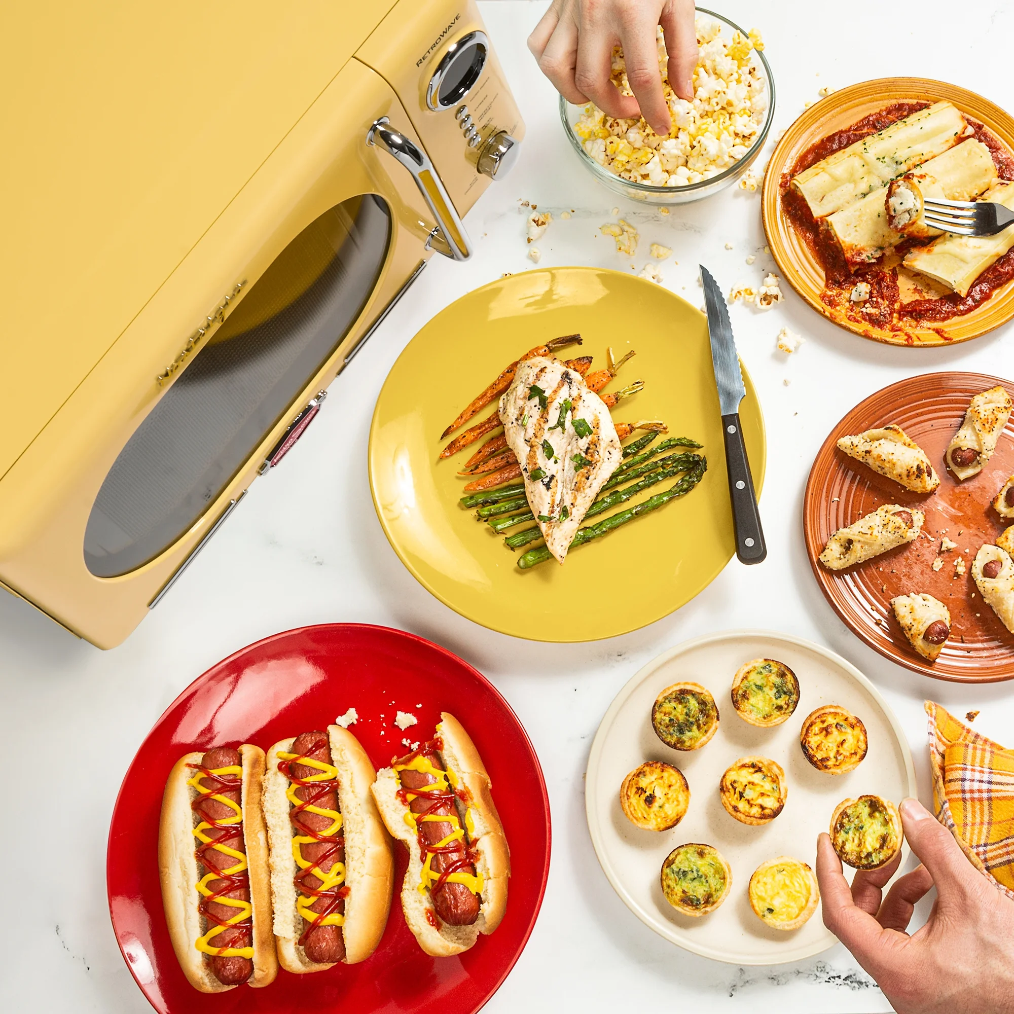 - Convenient Cooking Controls: 12 pre-programmed cooking settings, delay timer and express cooking provide options for the optimal heating of popular foods like popcorn, pizza, potatoes, veggies and more